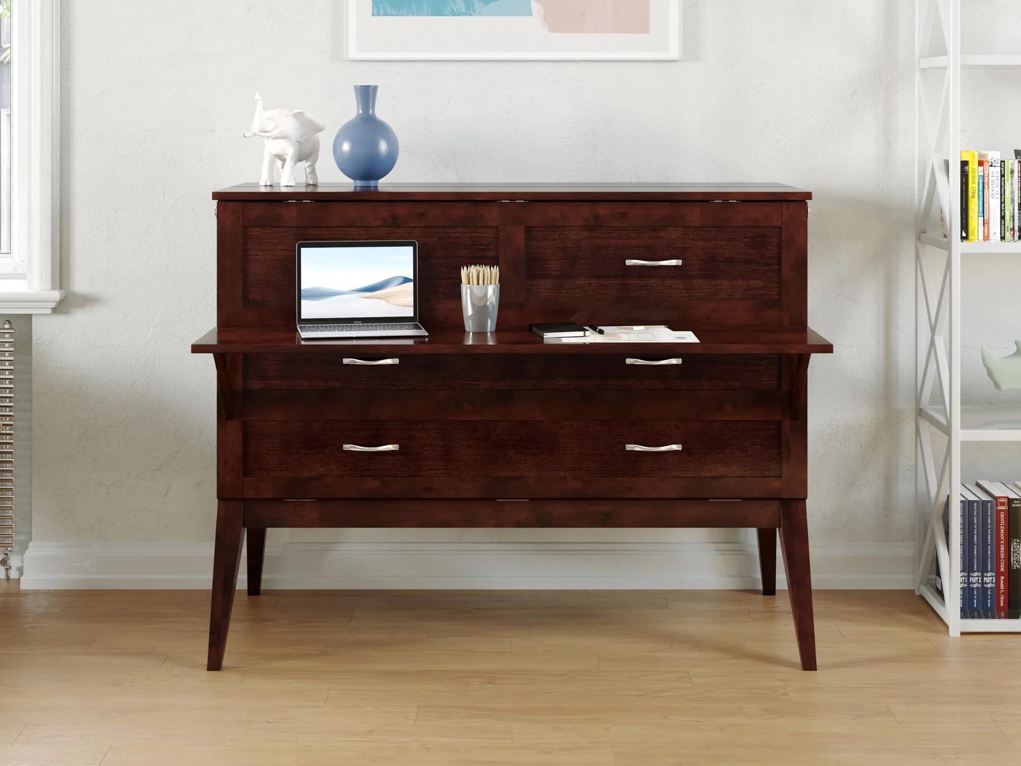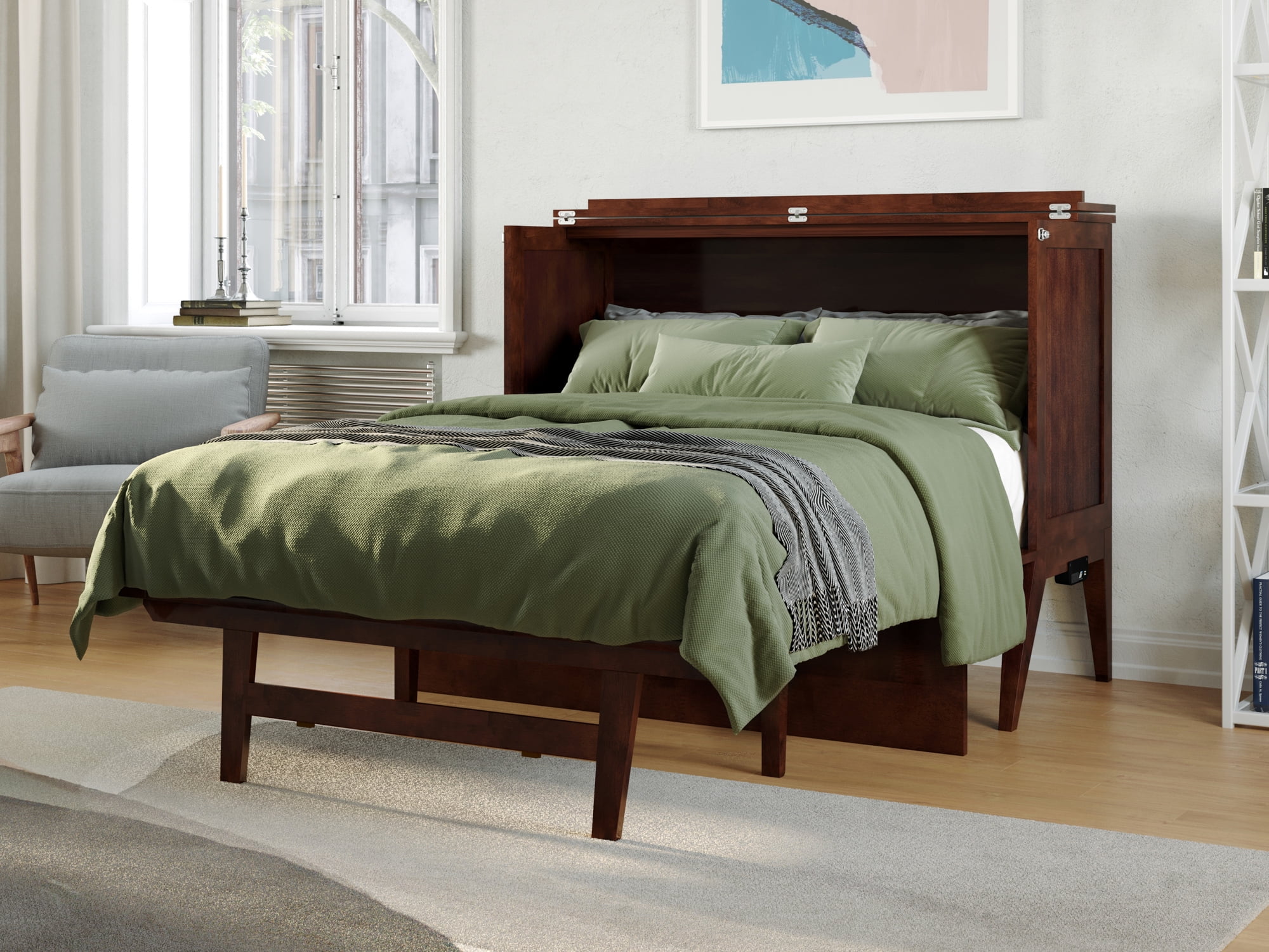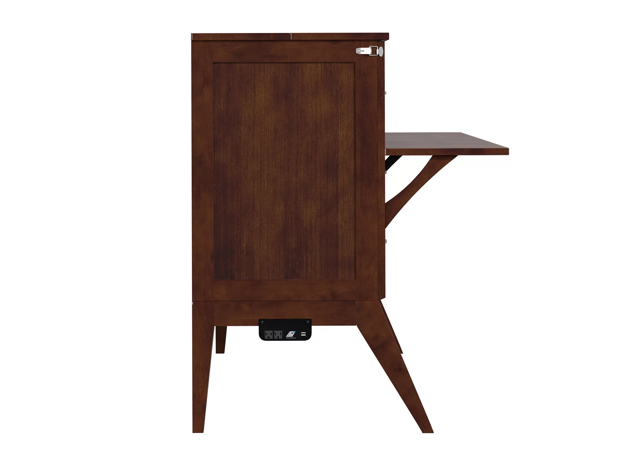 AFI Northampton Full Size Wood Murphy Bed Chest with Desk, Mattress, Charger, Walnut Adult