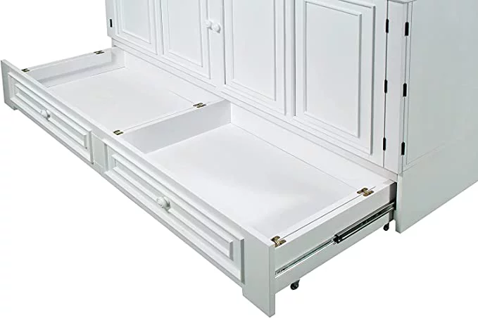 RoomAndLoft Imperial Queen Solid Wood Mobile Murphy Cabinet Bed in White
