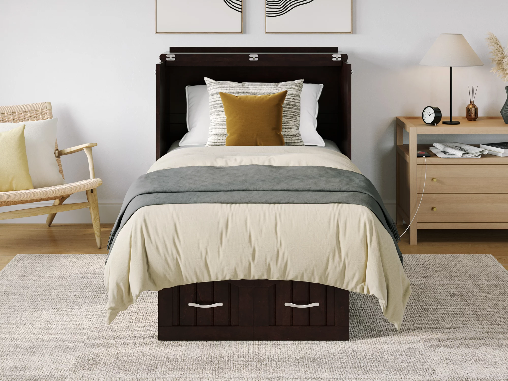 AFI Sydney Twin Murphy Bed Chest with Mattress, Storage & Built-in Charging, Espresso