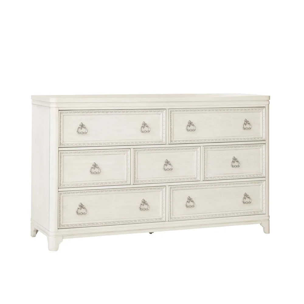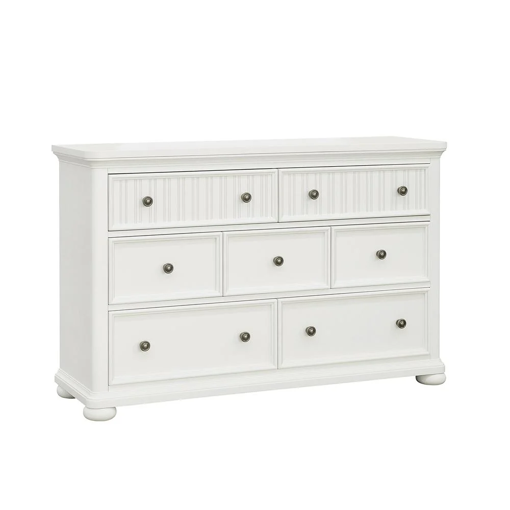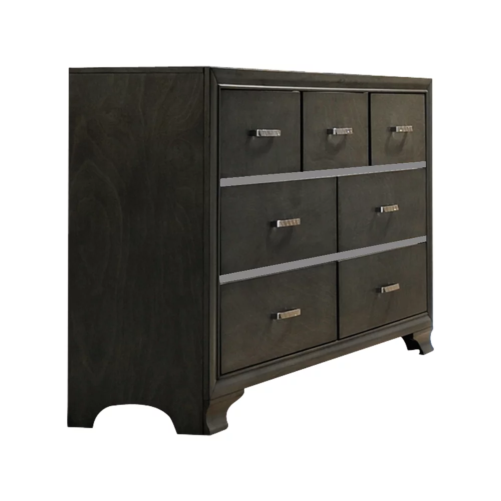 Benjara Muzan 61 Inch Dresser, 7 Drawers, Felt Lined Top Drawers, Molded Trim, Gray