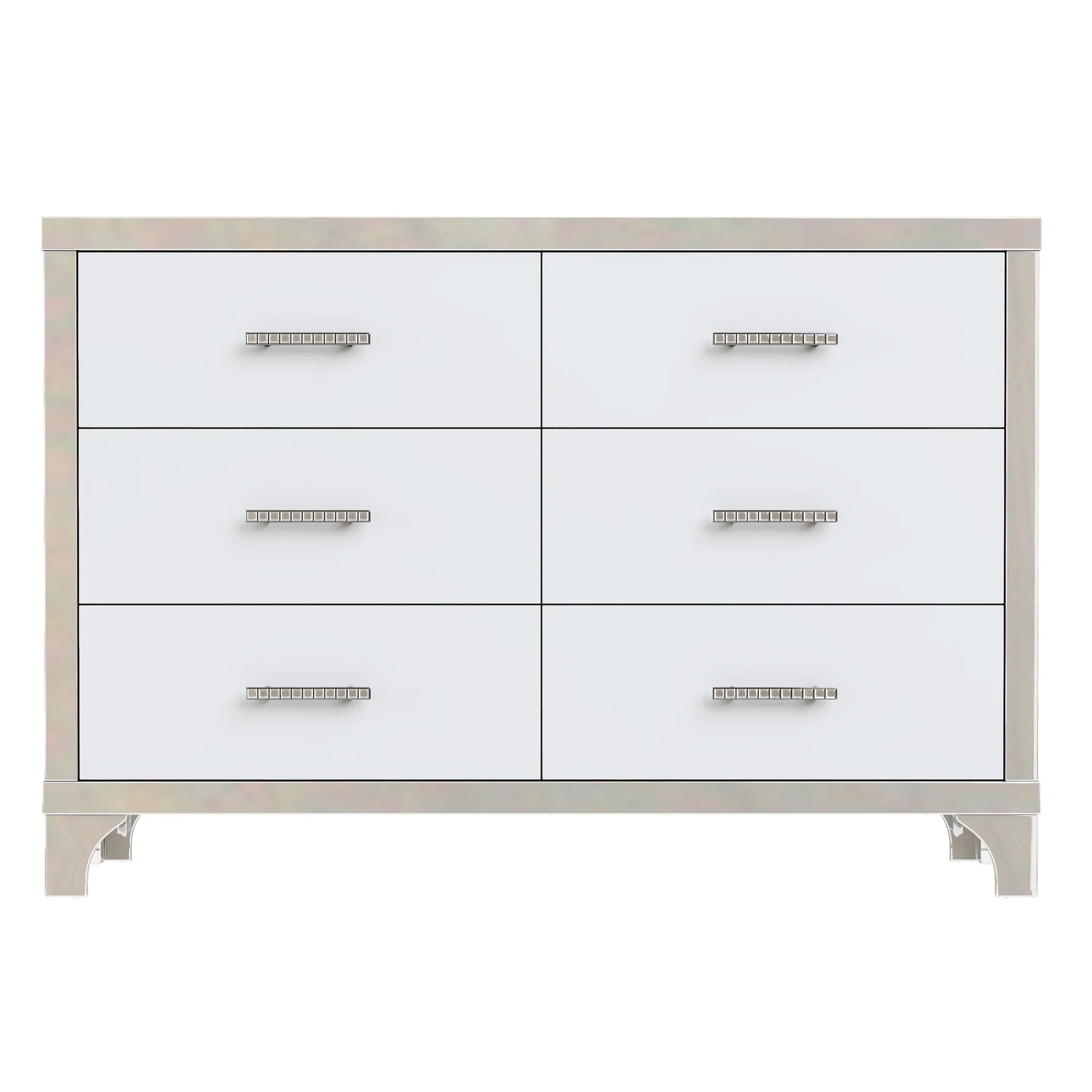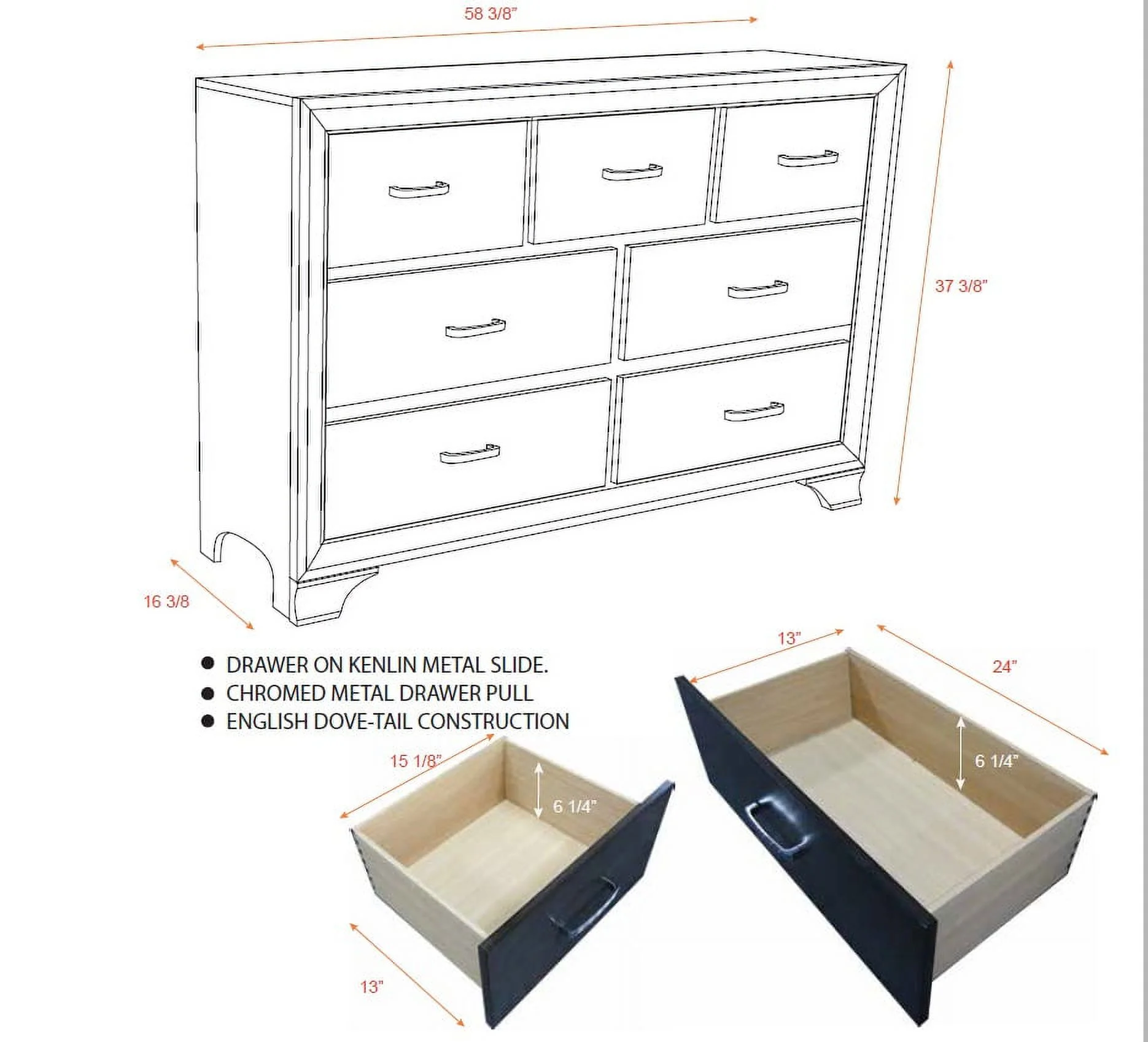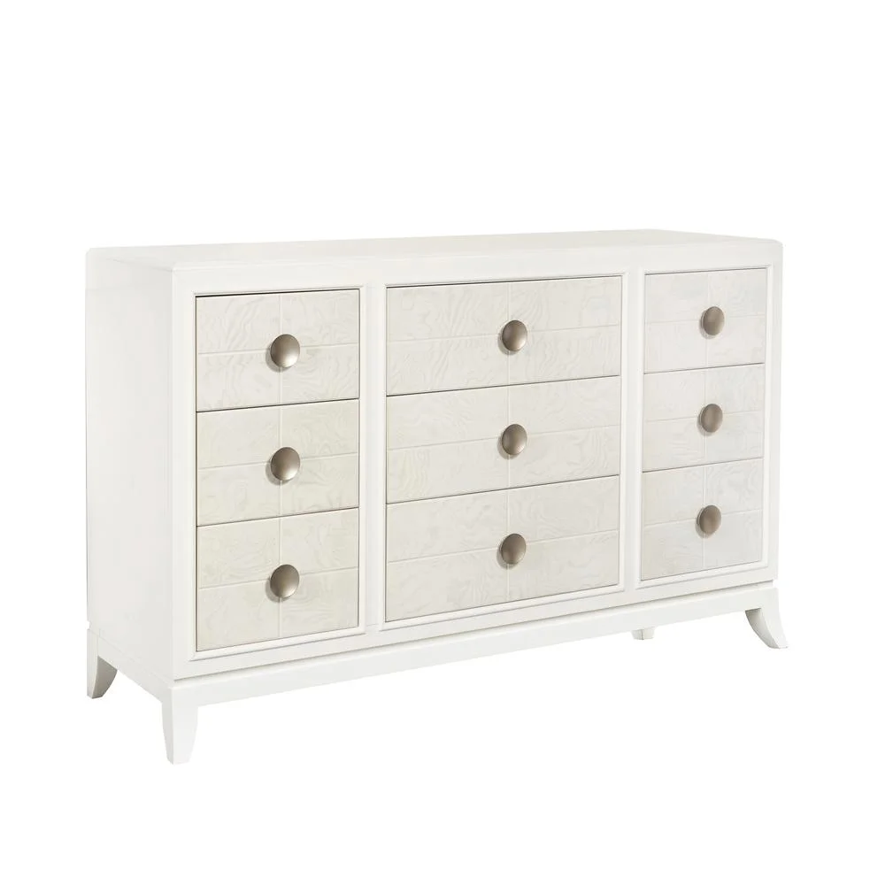 Benjara Muzan 61 Inch Dresser, 7 Drawers, Felt Lined Top Drawers, Molded Trim, Gray