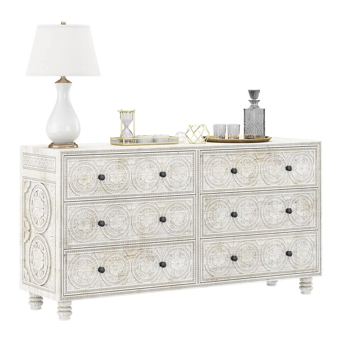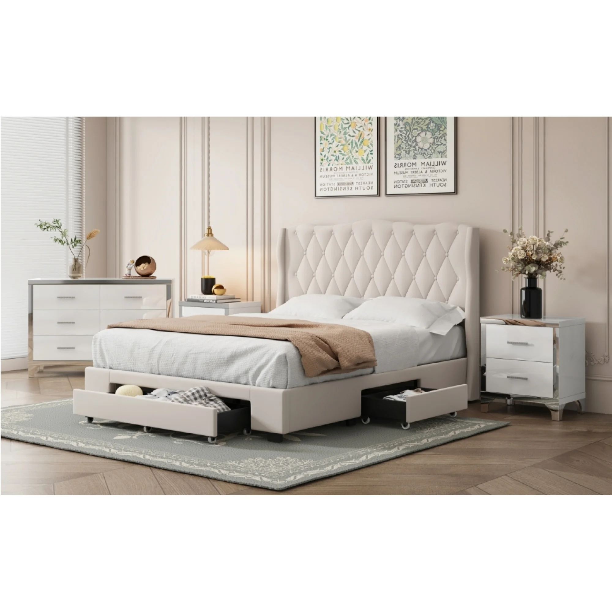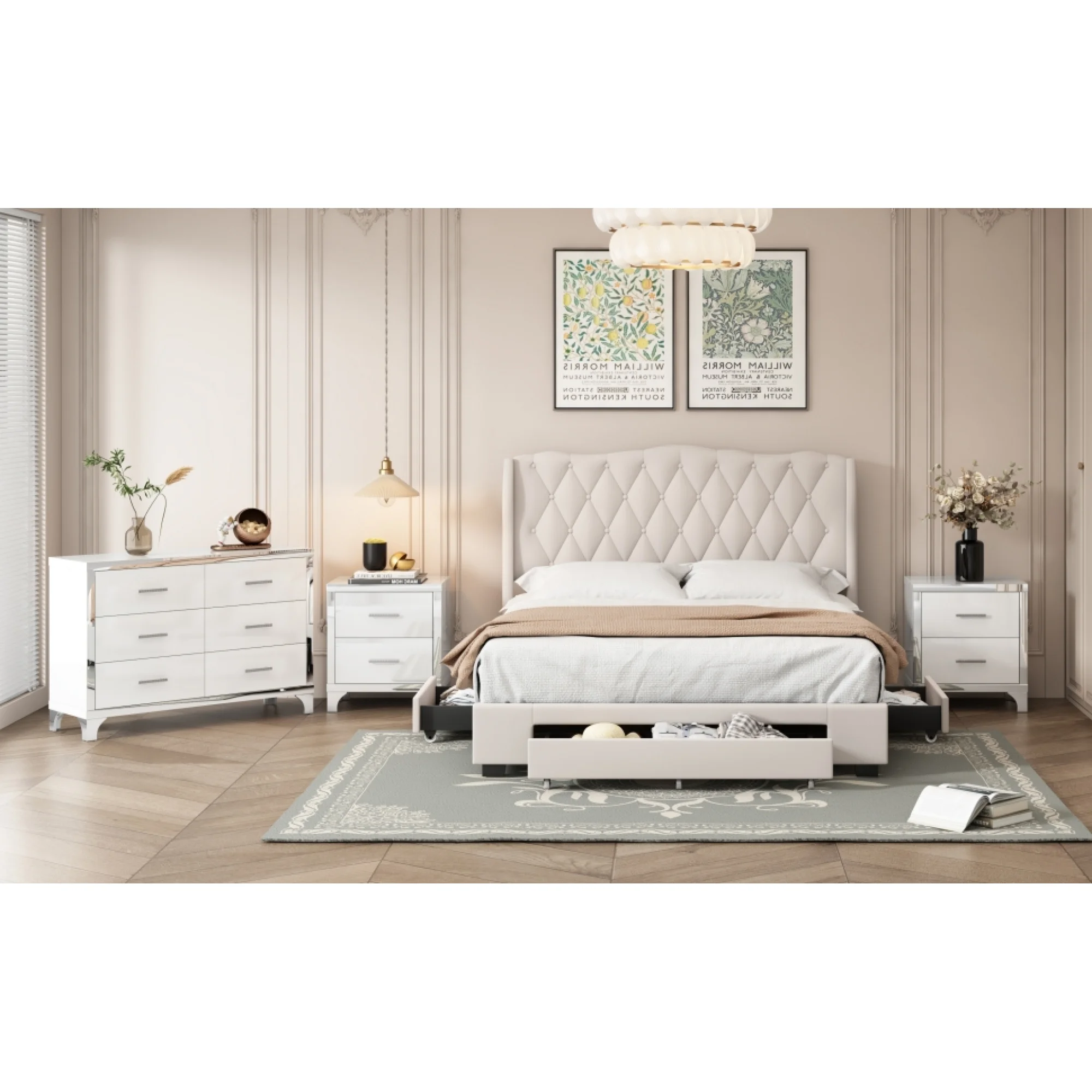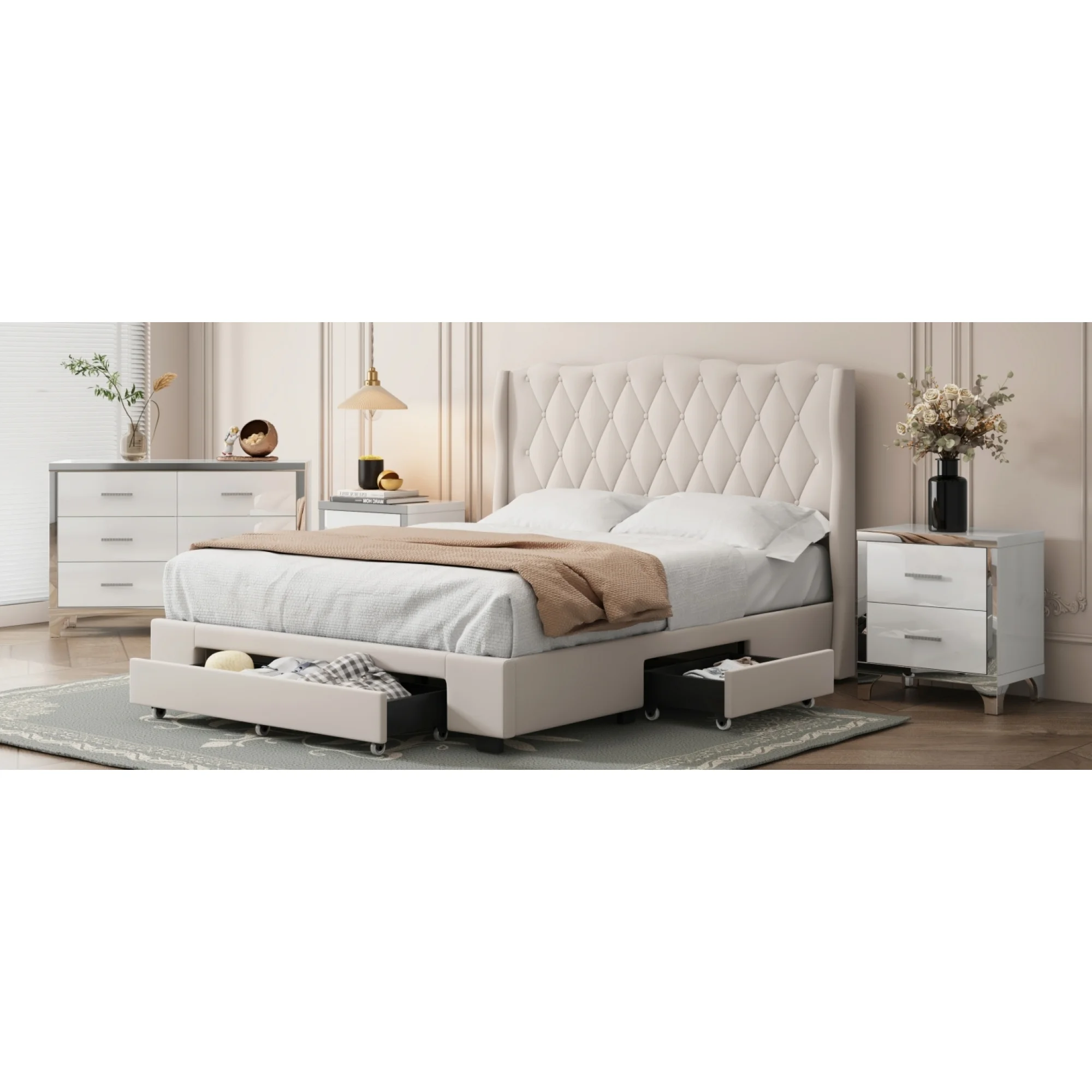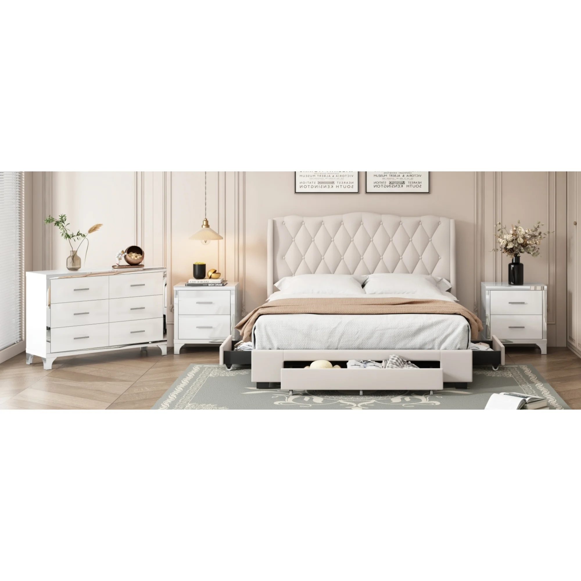 Classic Vintage Charm 6pc Queen Size Arched Panel Bed Storage Master Bedroom Set