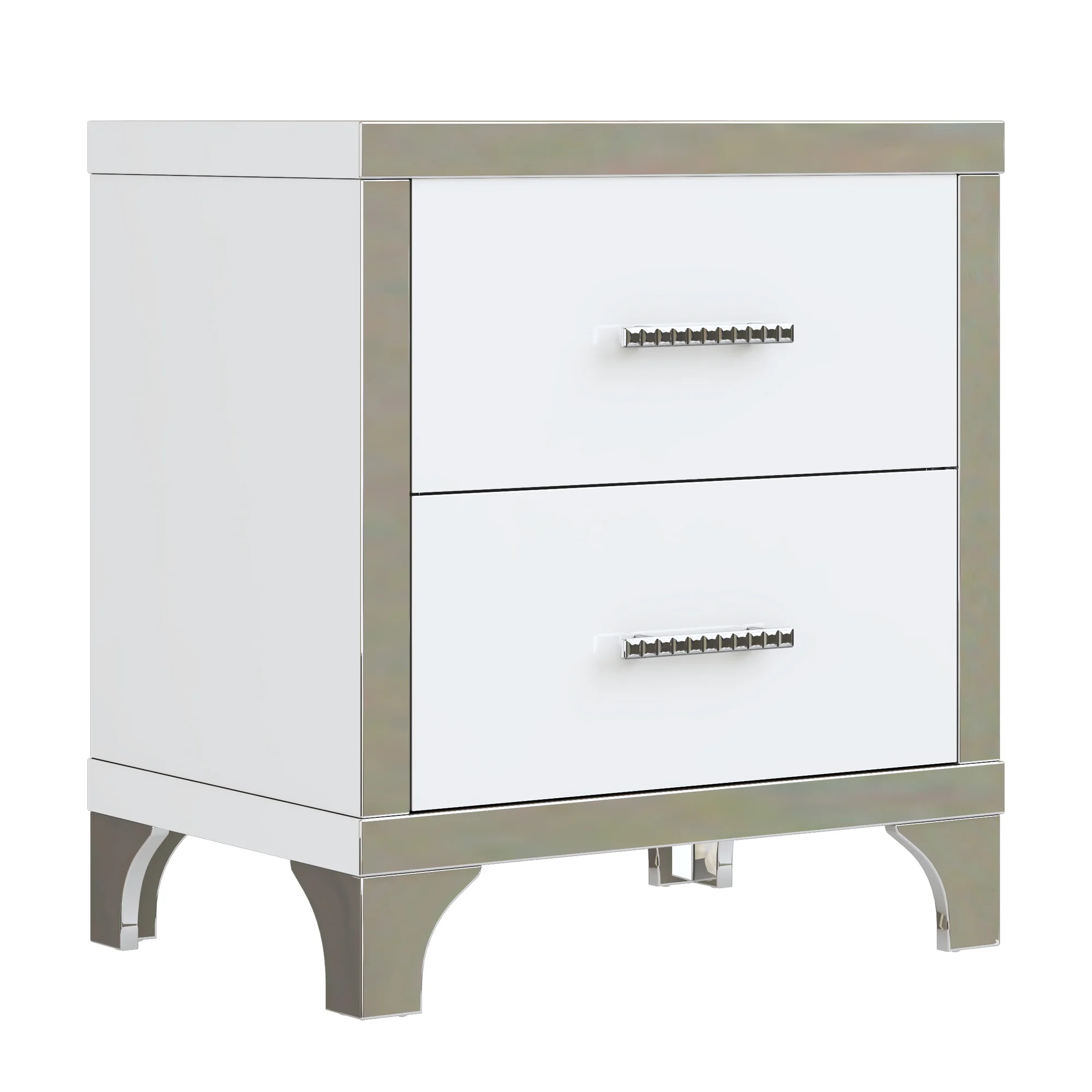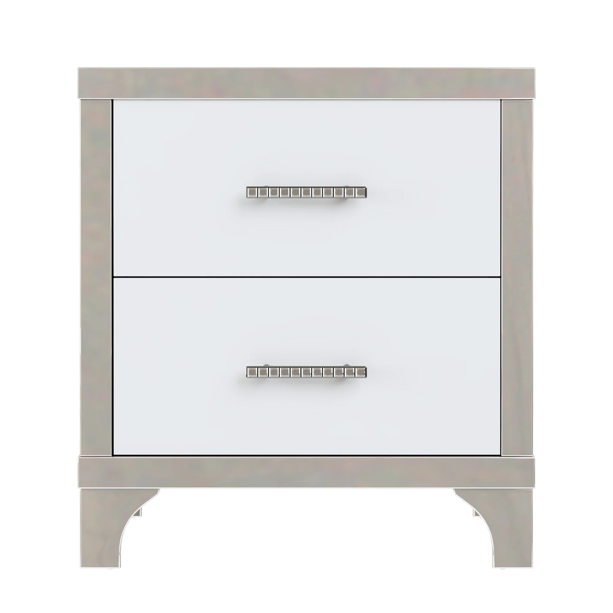 Transitional Style Frost Finish 4pc Queen Size Bedroom Set Bed Dresser Mirror Nightstand White LED Light Upholstery Headboard