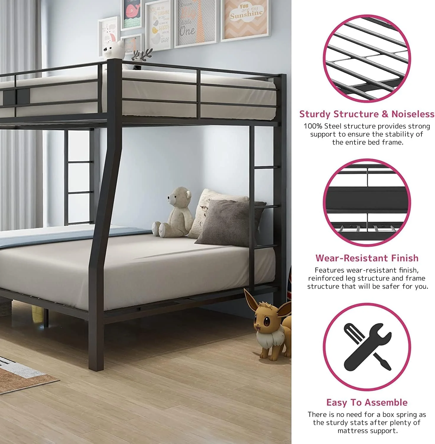 83" X 65" X 68" Sandy Black & Dark Bronze Hand-Brushed Full Xl Over Queen Bunk Bed