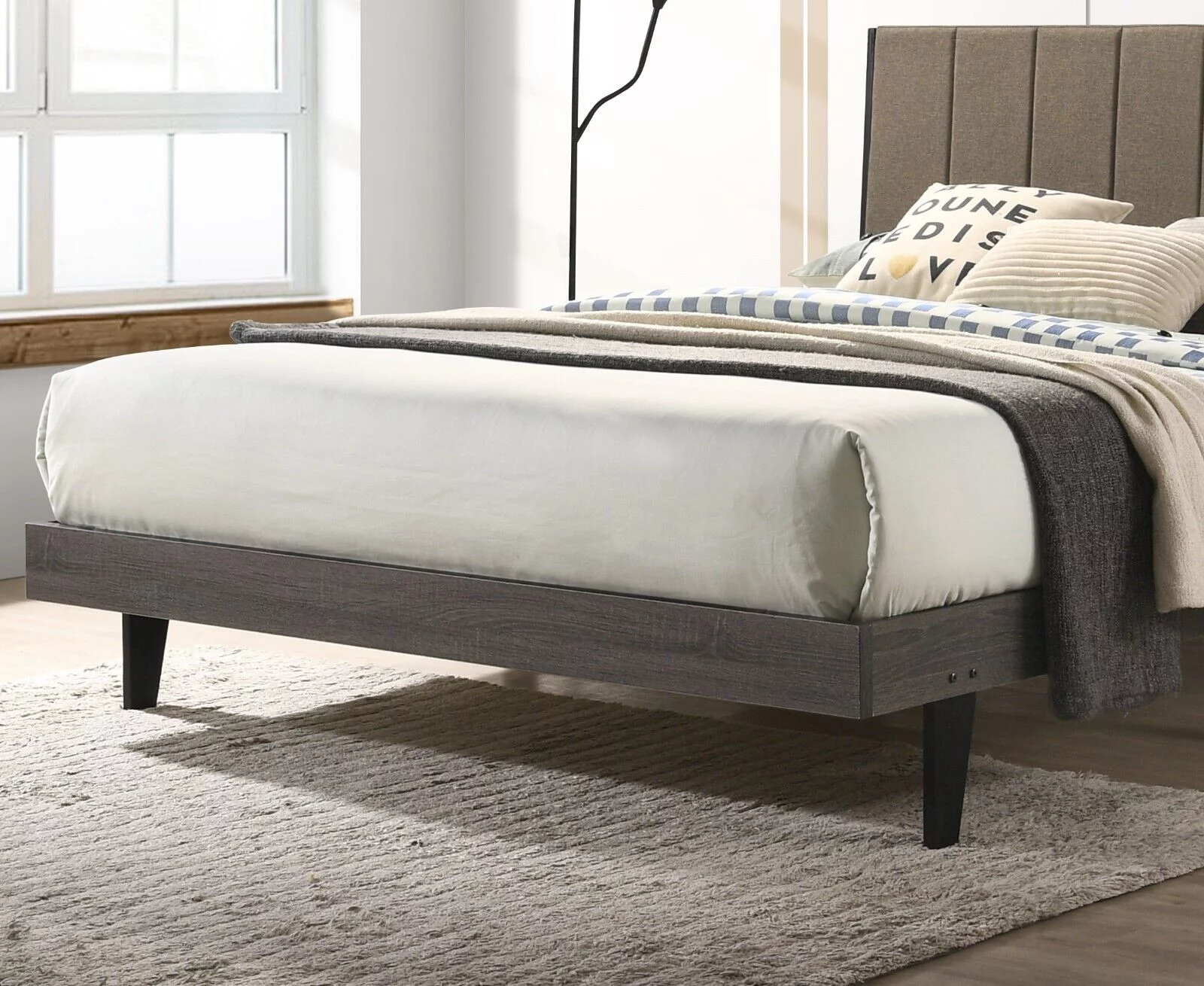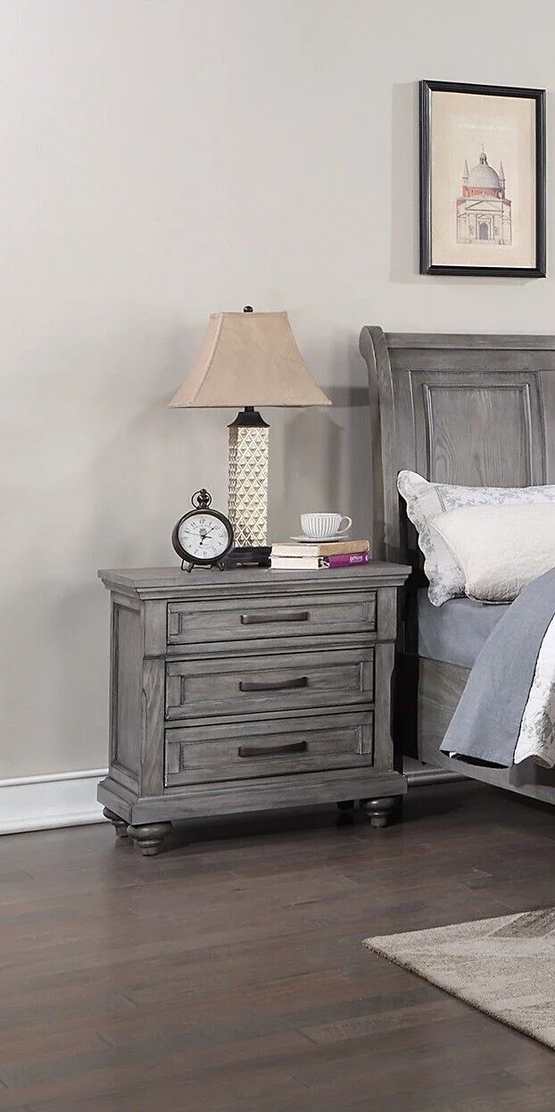 Grey Finish Wooden Queen Size Bed 2x Nightstands 3pc Set Bedroom Furniture Sleigh 3-Panel Design Headboard Storage Footboard
