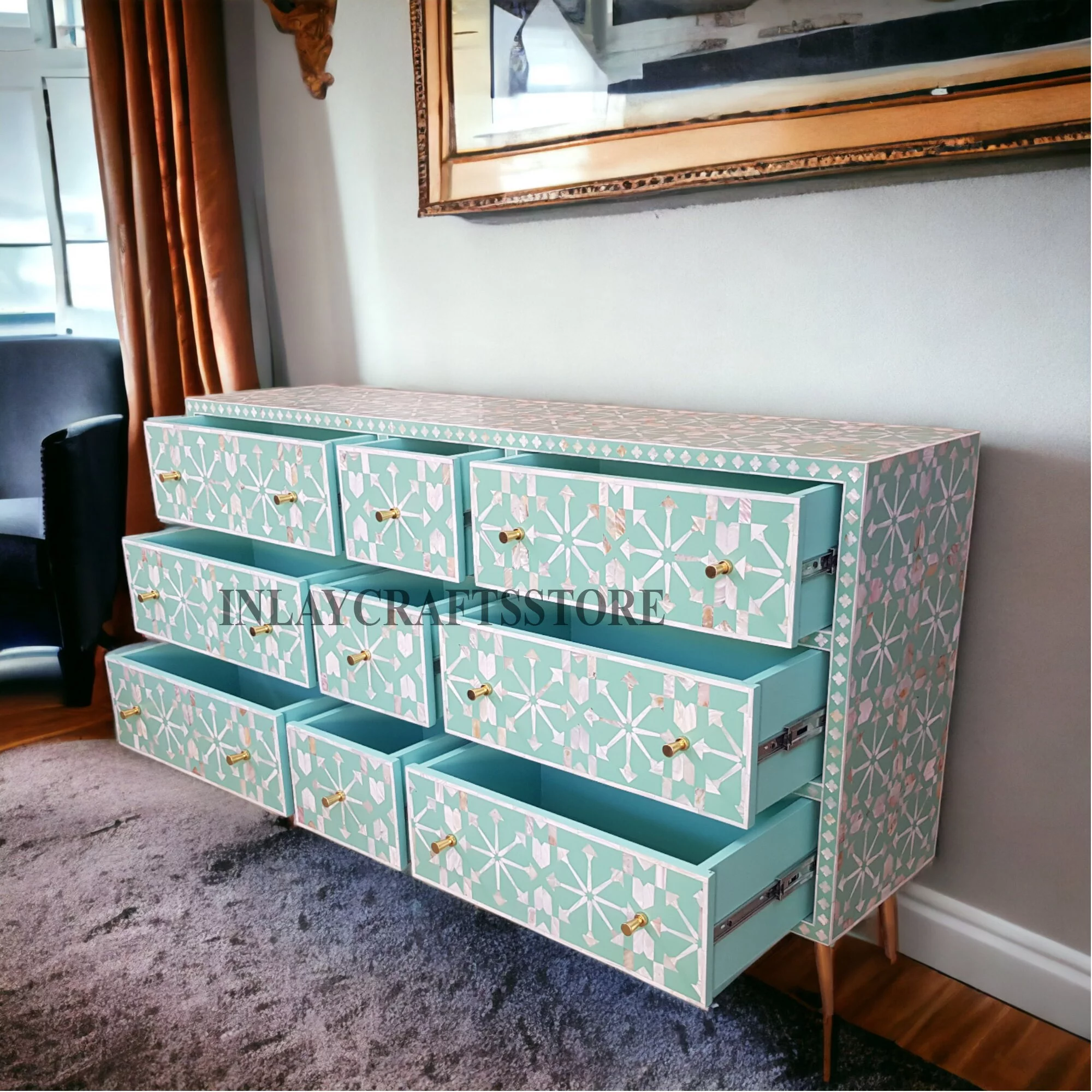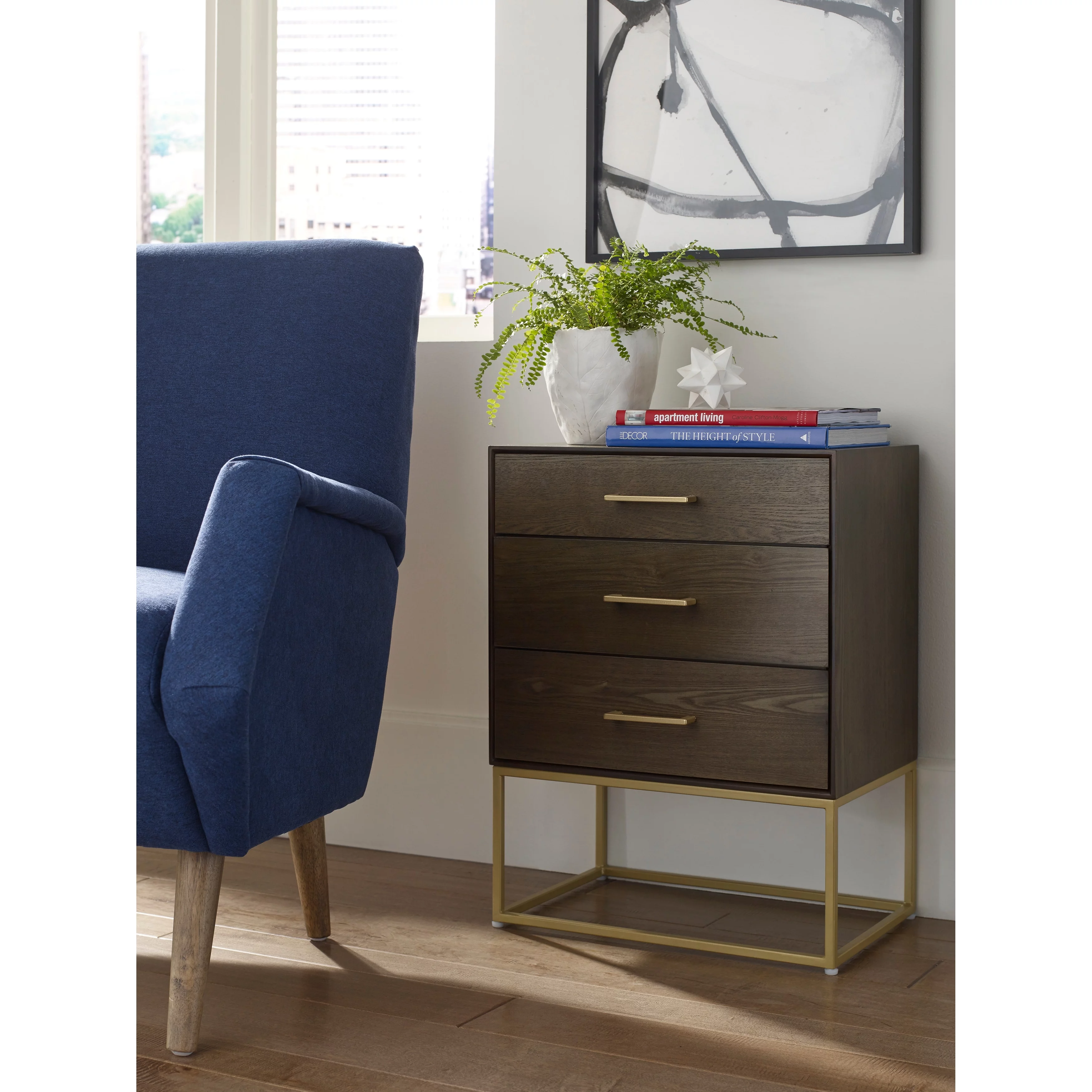 Modern Glam 3pc Bedroom Set Queen Size Panel Bed Chest Nightstand Furniture Gold Black Finish