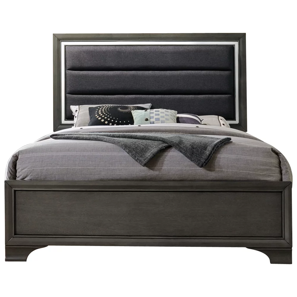 Sonata 5 Piece Queen Size Bedroom Set, Gray Wood & Faux Leather, Modern