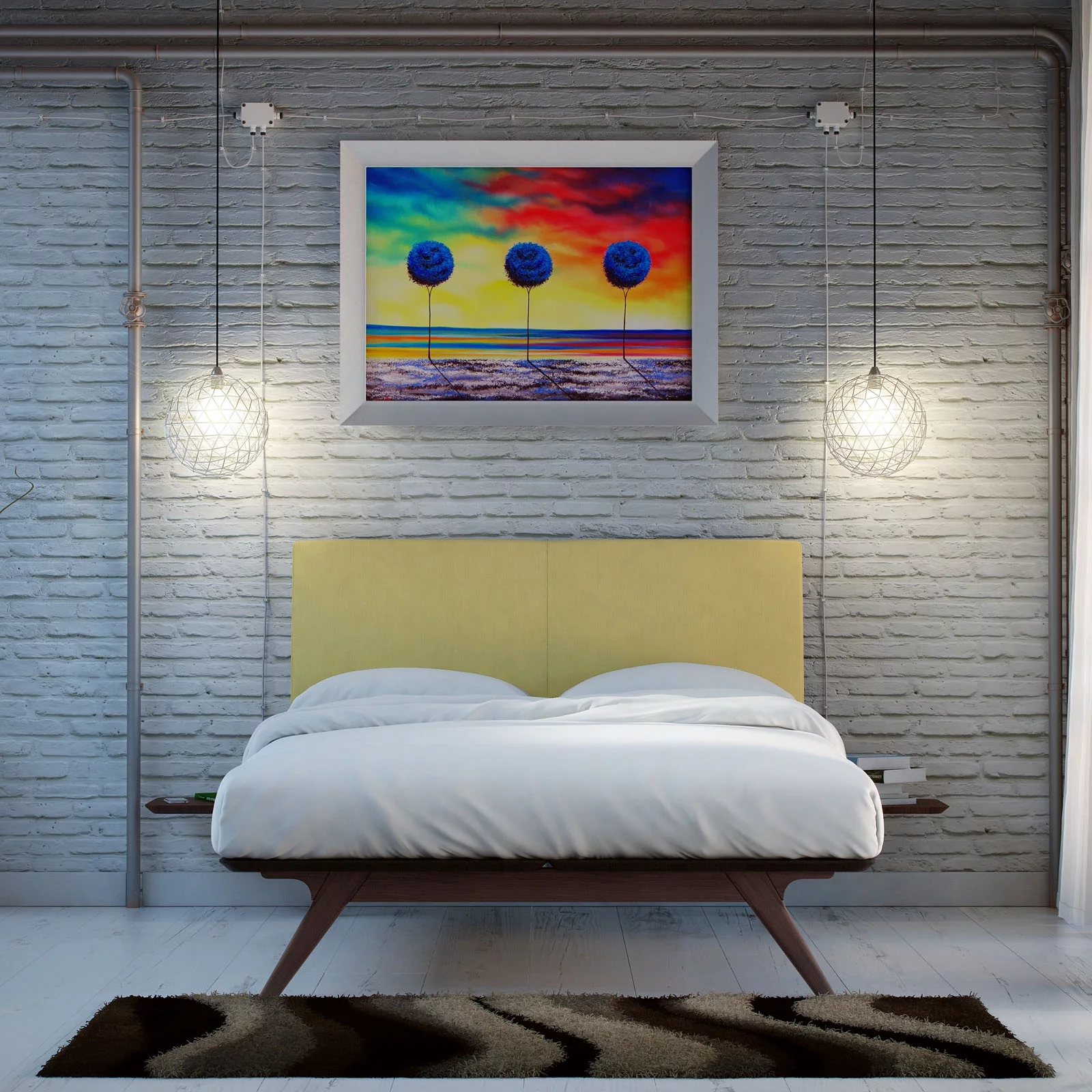 Modern Urban Contemporary 3 pcs Queen Size Bedroom Set, Green Fabric Wood