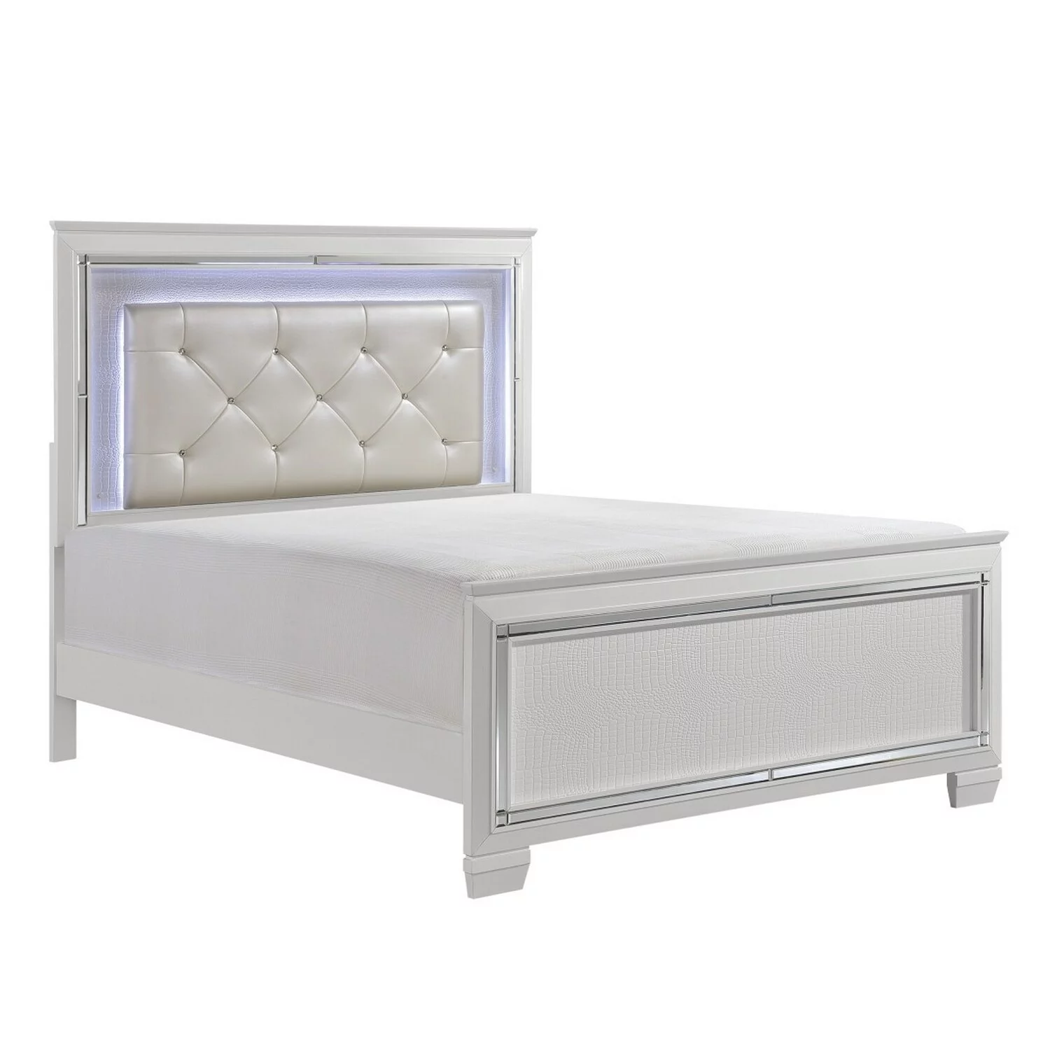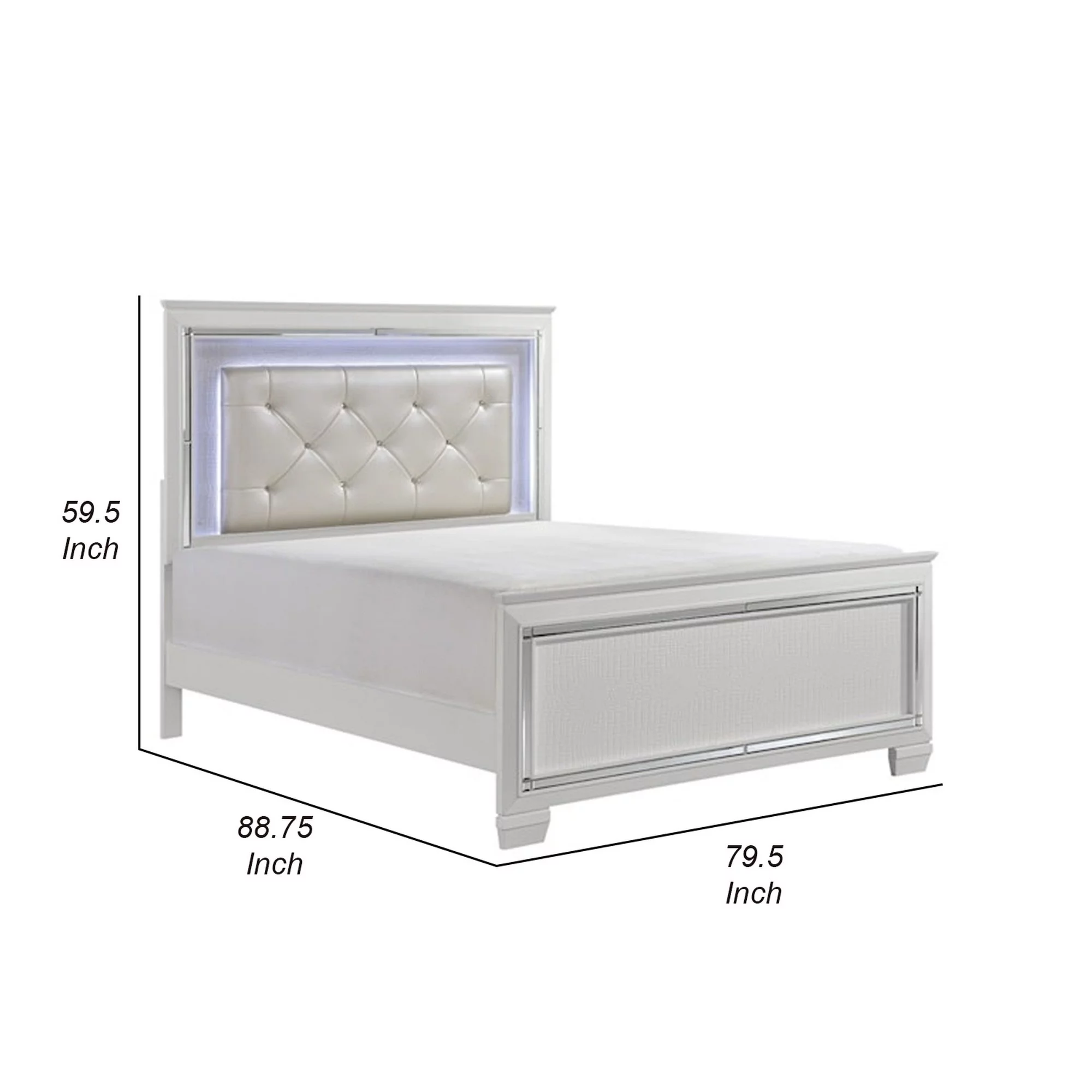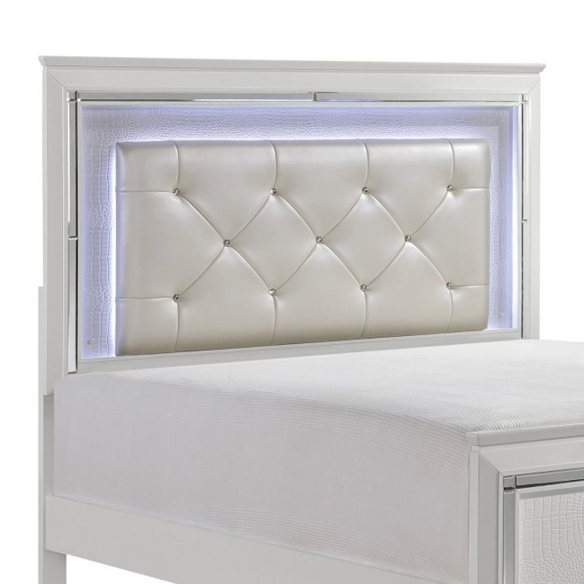 Benjara Noah California King Bed, LED Backlit Crystal Tufted Headboard, White