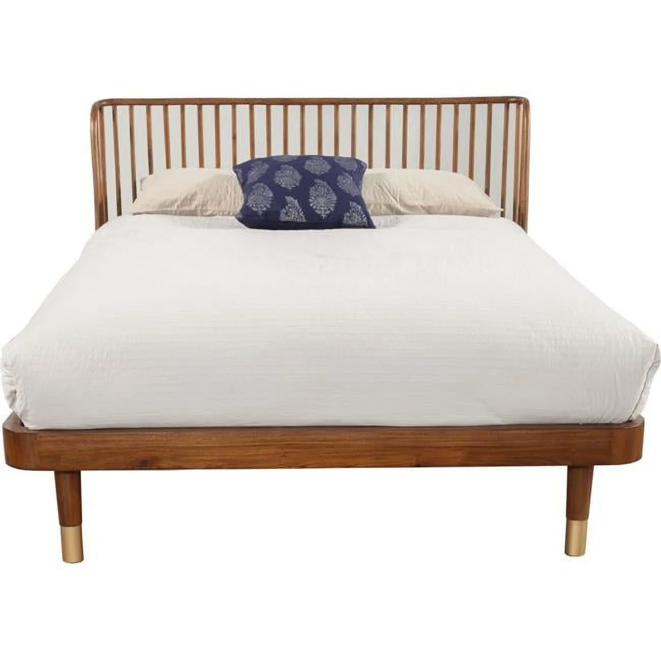 Homestead Collection California King Size Platform Bed with Laser Engraved Elk Design, Clear Lacquer Finish
