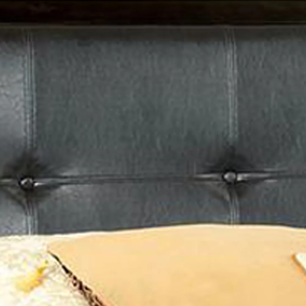 Wooden California King Bed with Button Tufted Leatherette Headboard Brown- Saltoro Sherpi