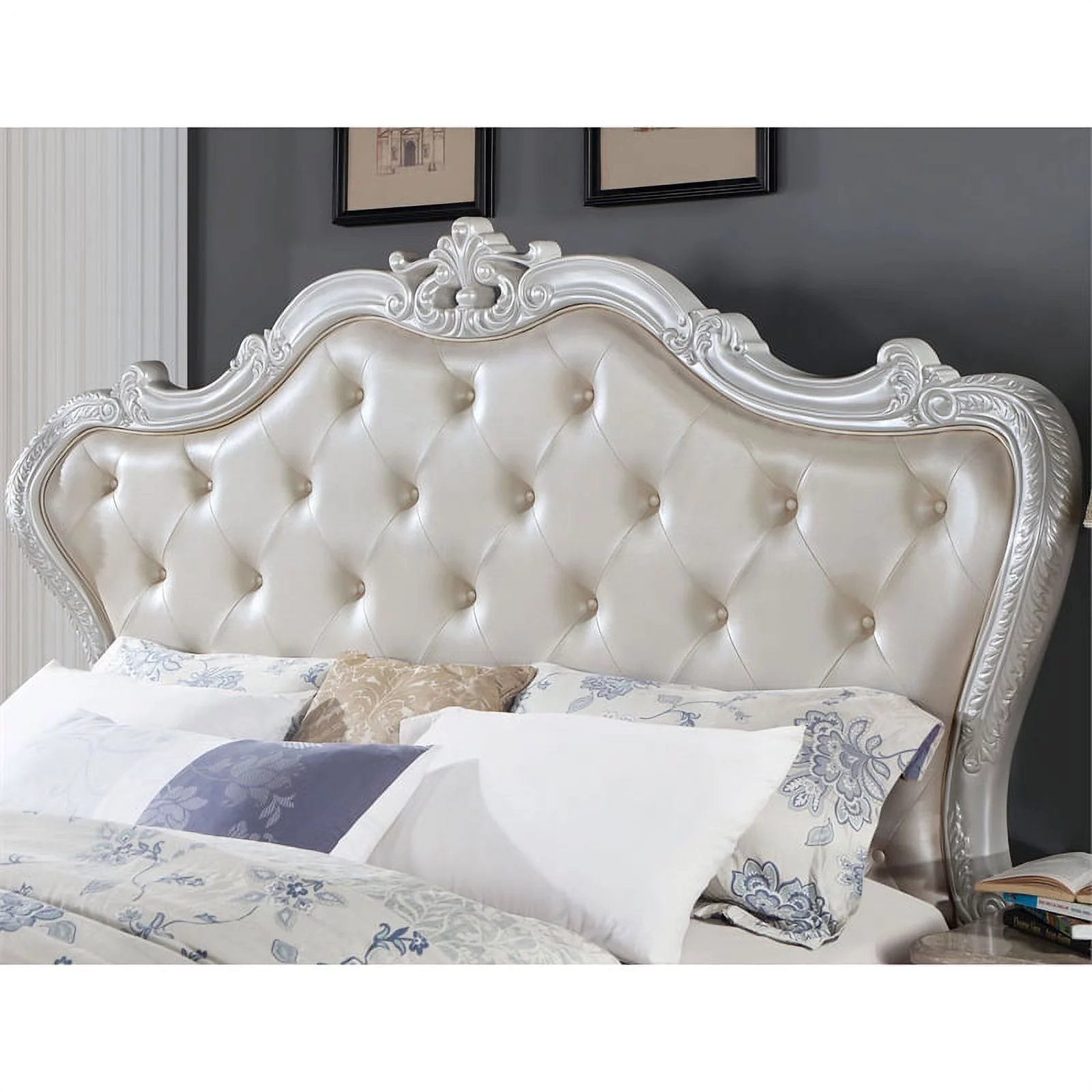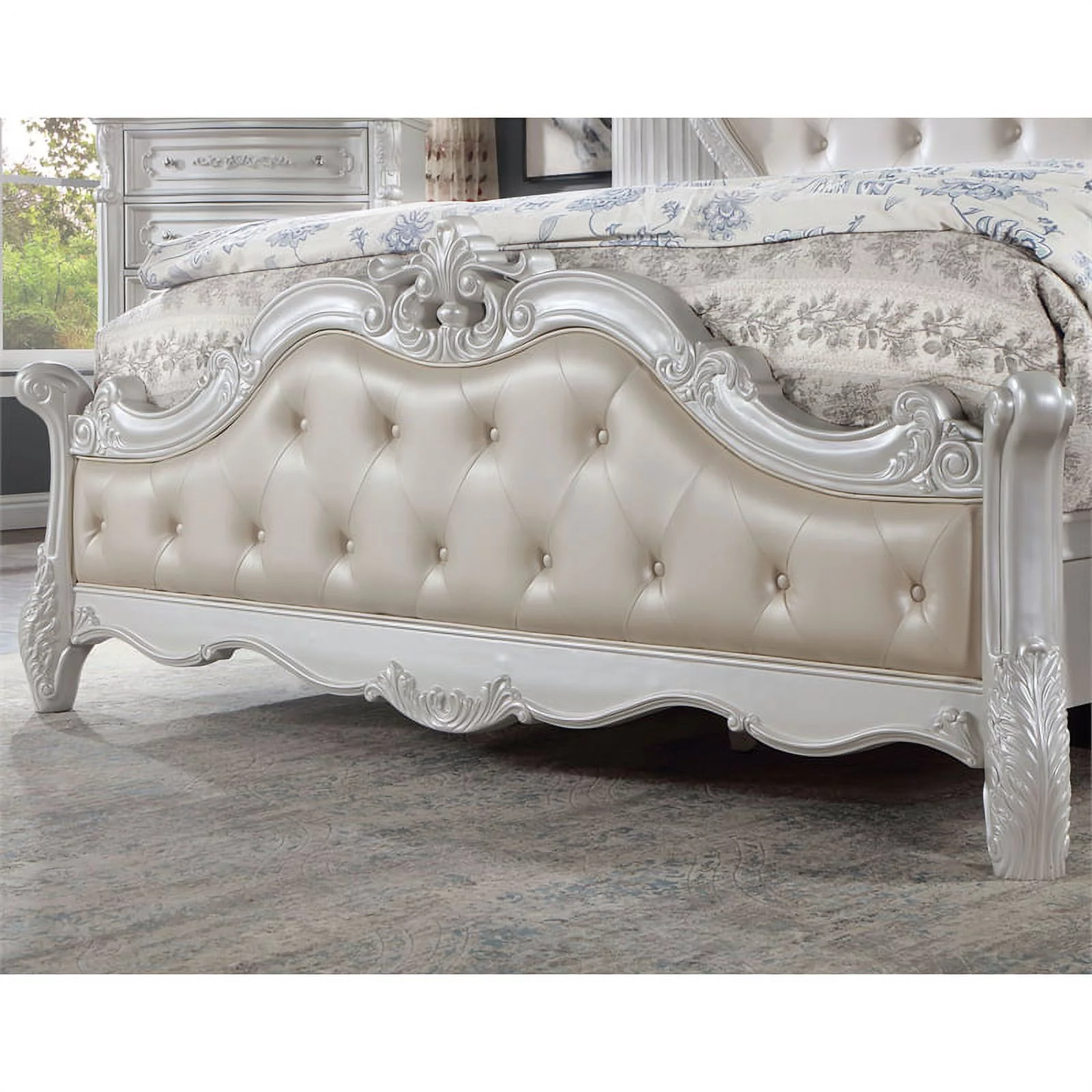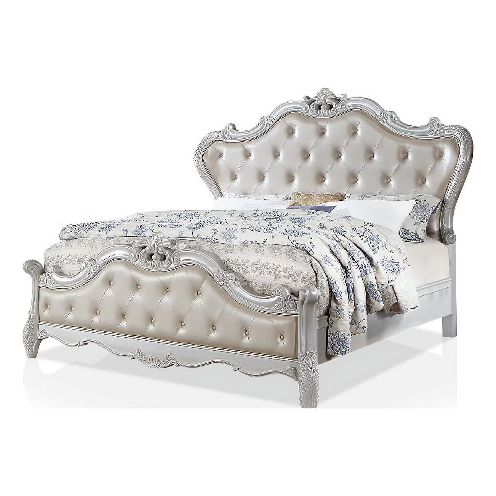 Furniture of America Rosa Wood Tufted Headboard California King Bed in White