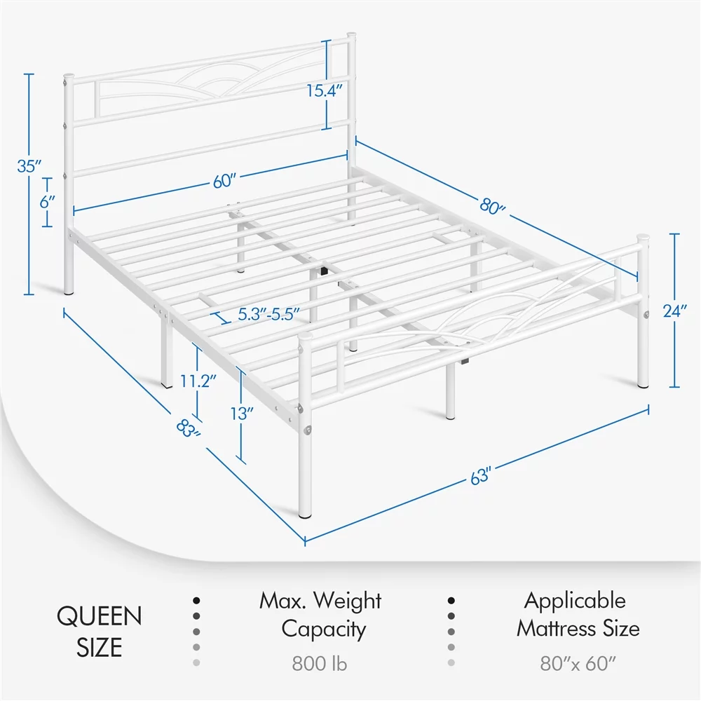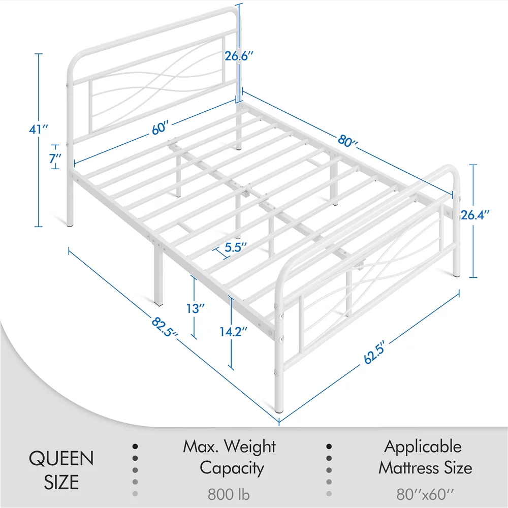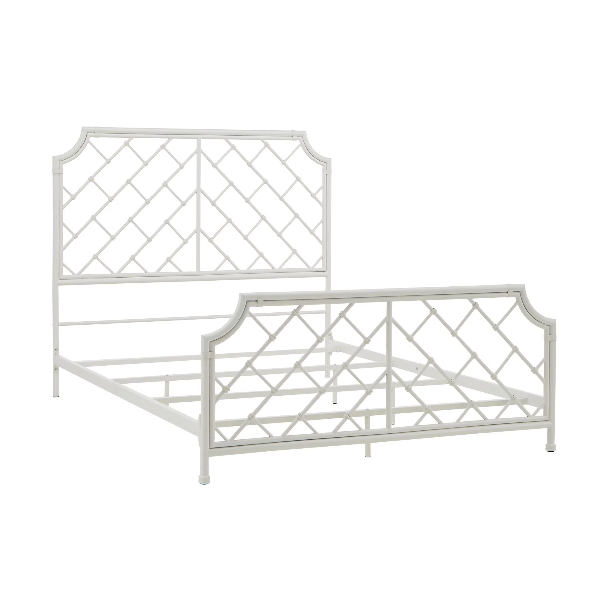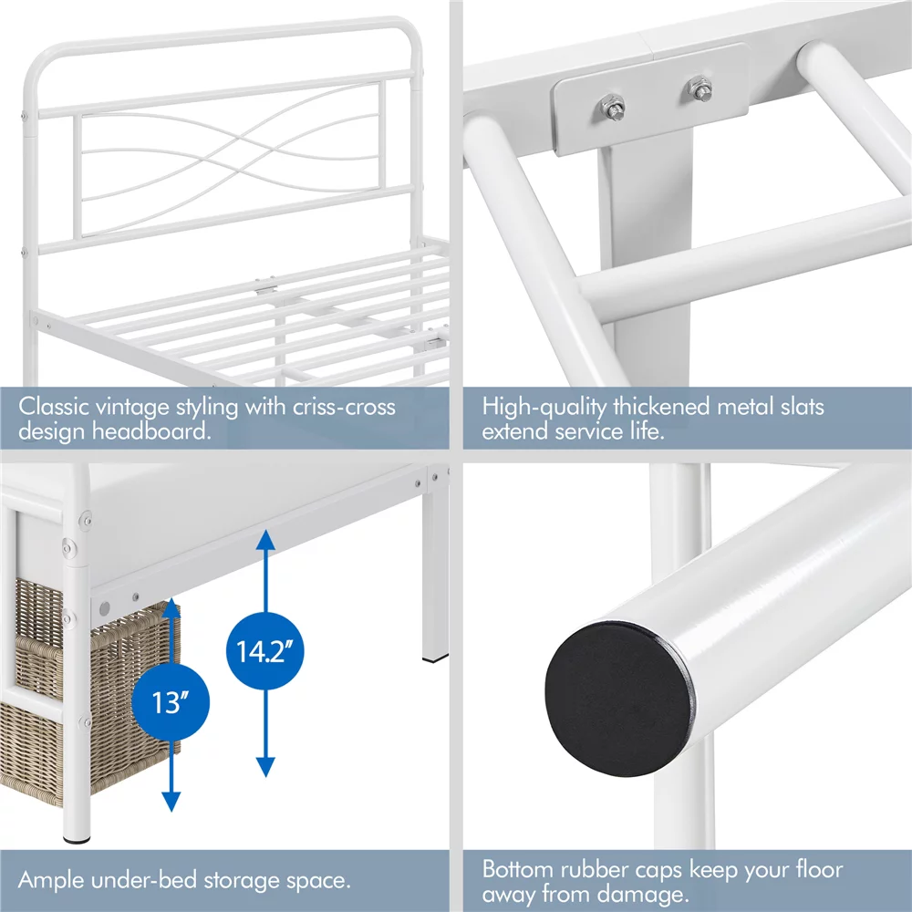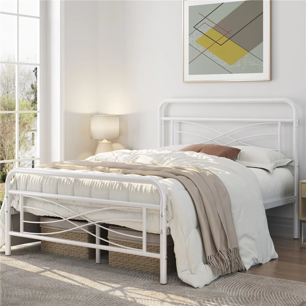 Topeakmart Vintage Metal Queen Size Bed with Criss-Cross Design Headboard, White