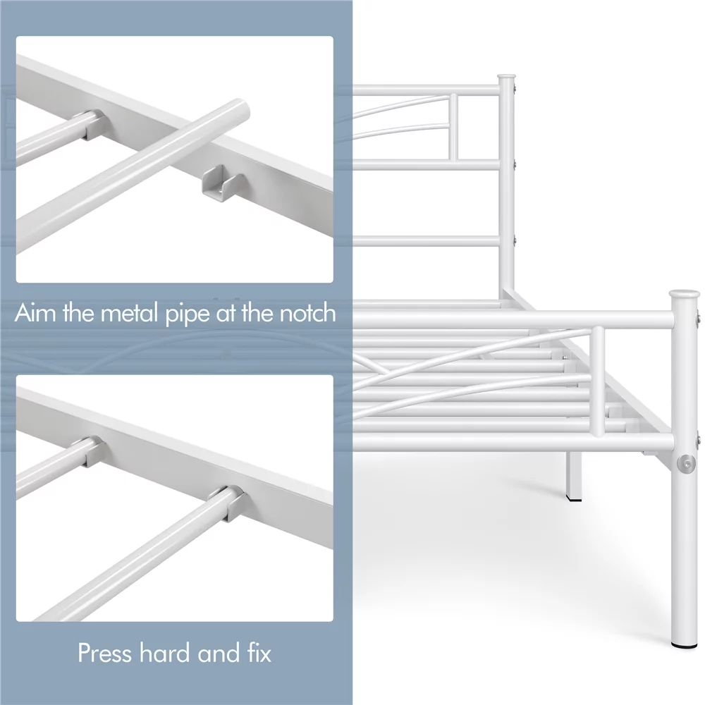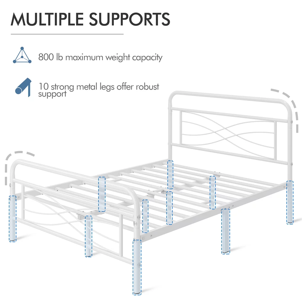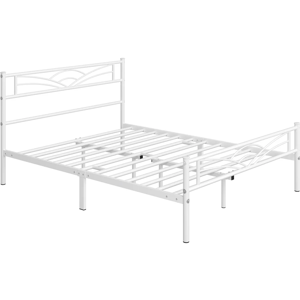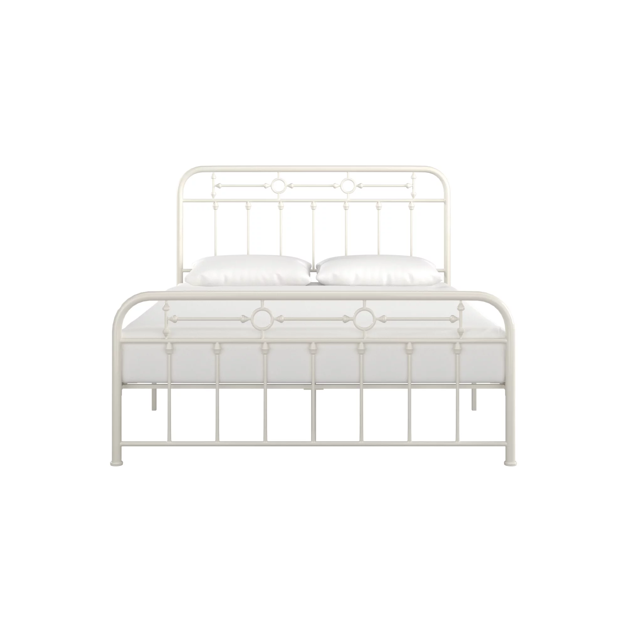 Topeakmart Vintage Metal Queen Size Bed with Criss-Cross Design Headboard, White
