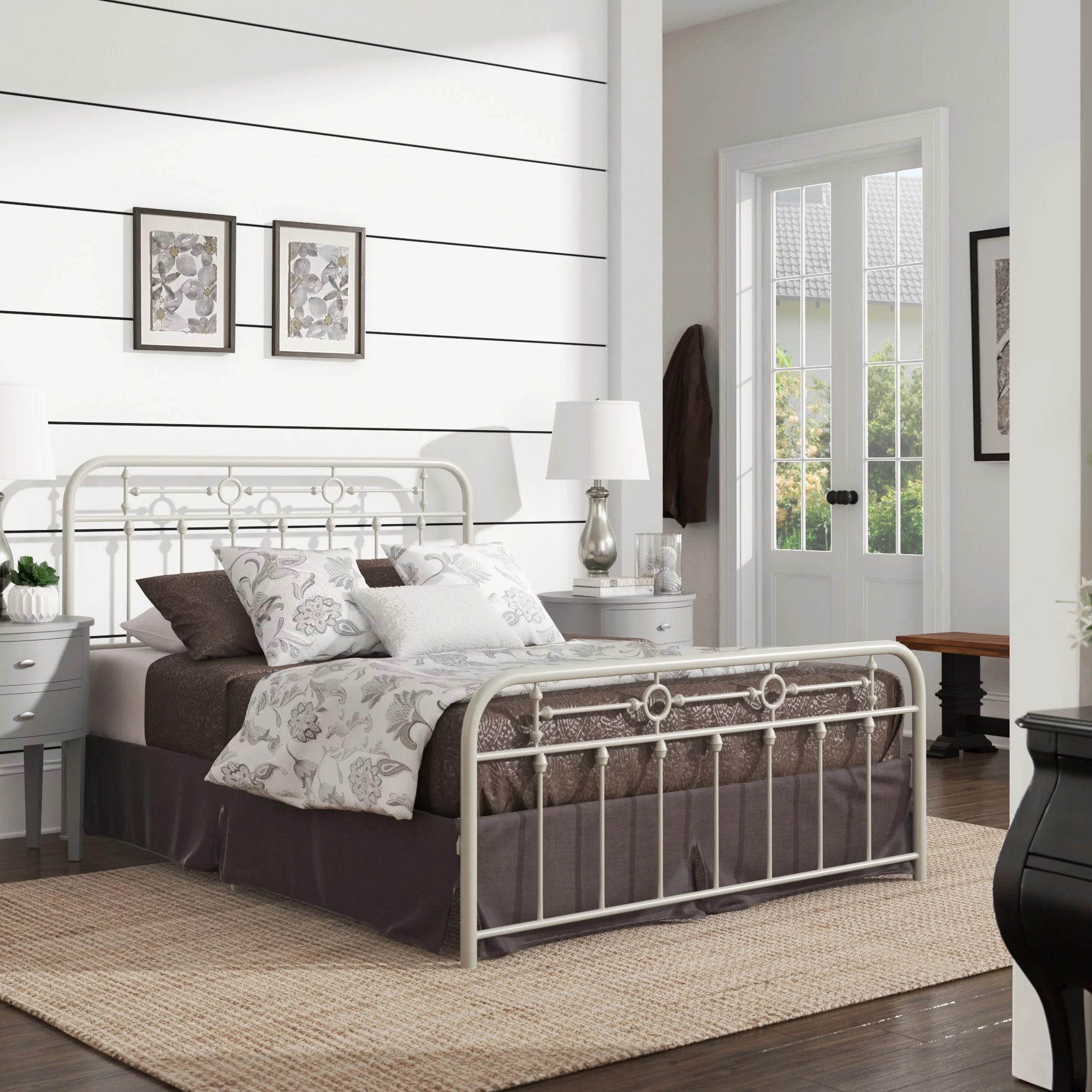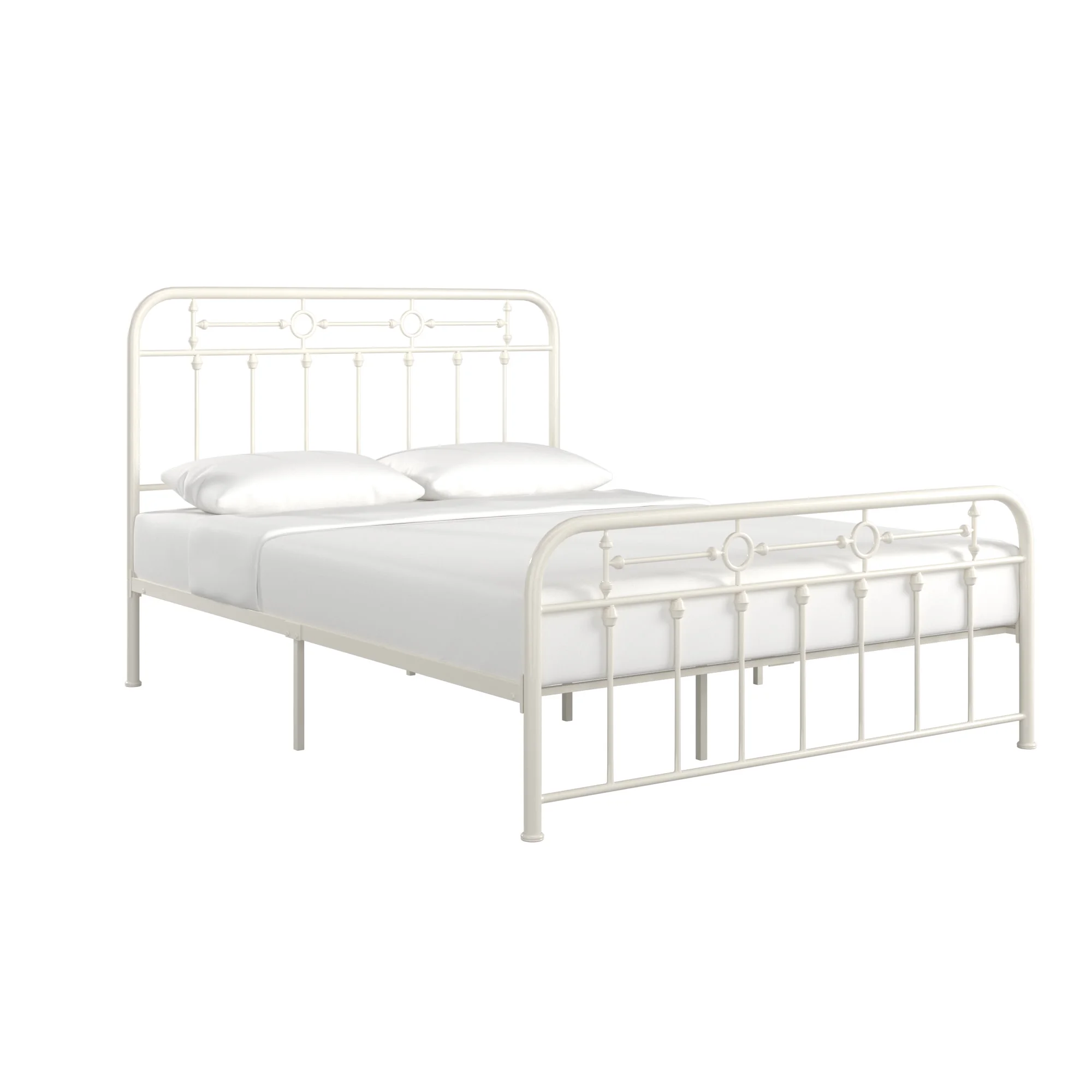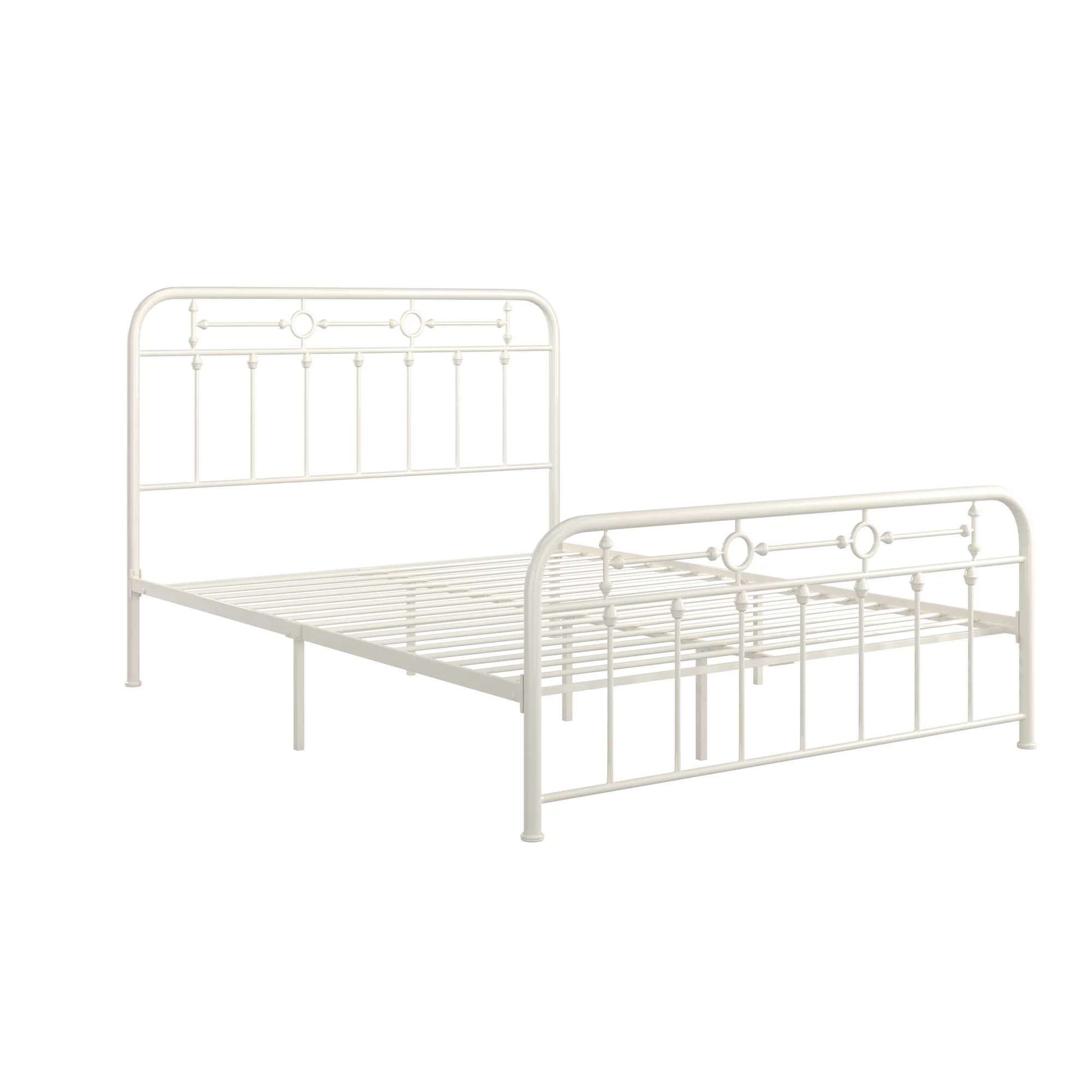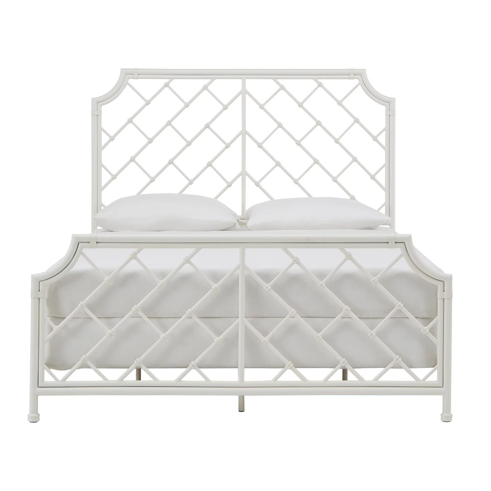 Topeakmart Vintage Metal Queen Size Bed with Criss-Cross Design Headboard, White