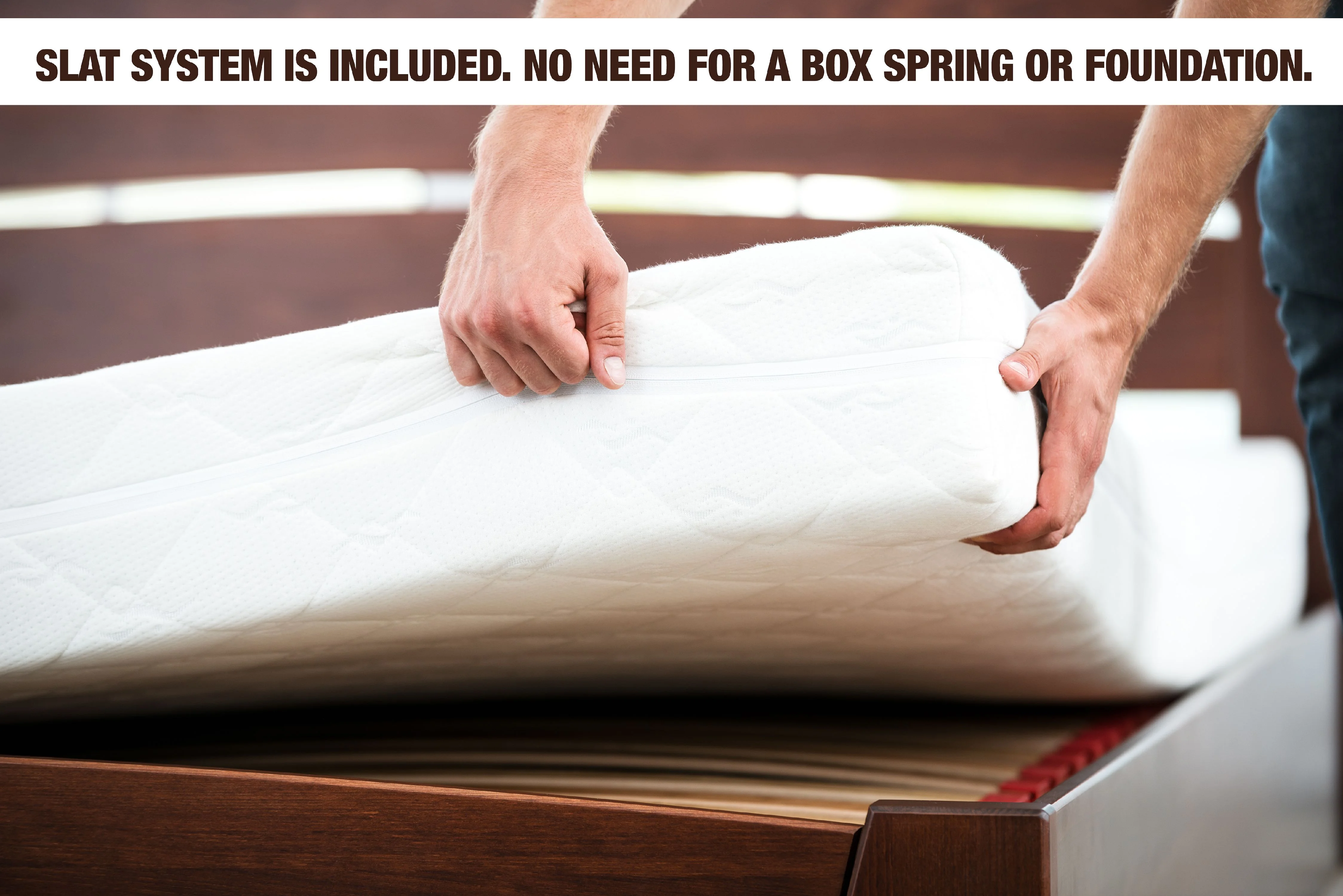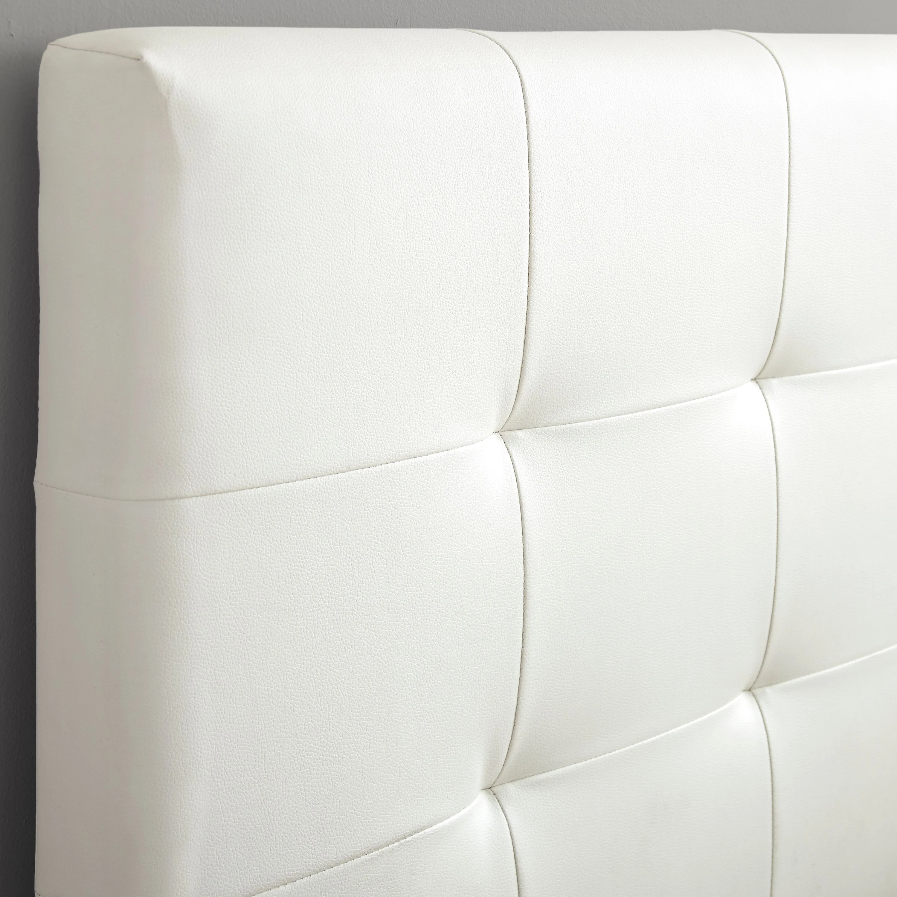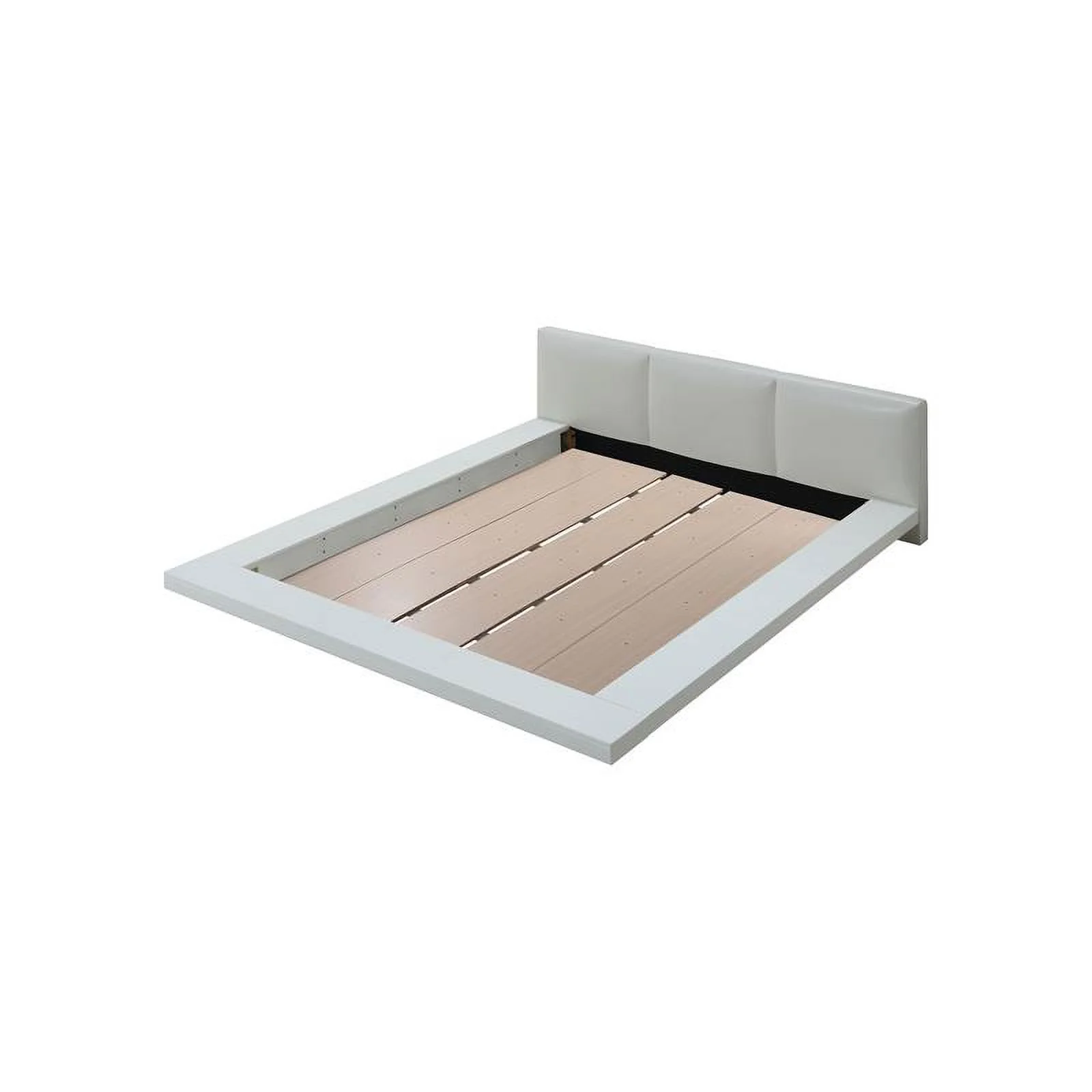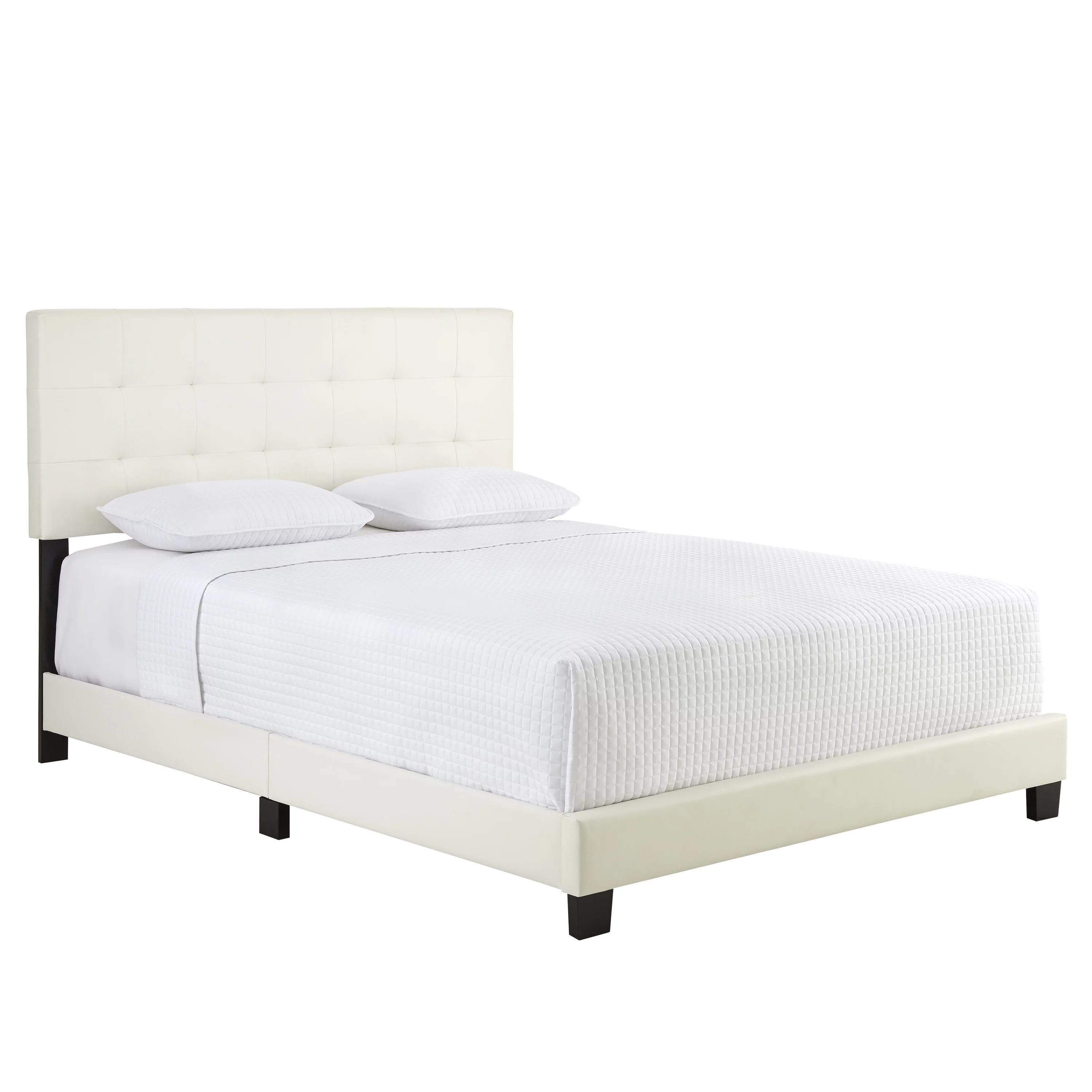 Boyd Sleep Roma Upholstered Tufted Faux Leather Platform Bed with Bonus Base Wooden Slat System, Queen, White