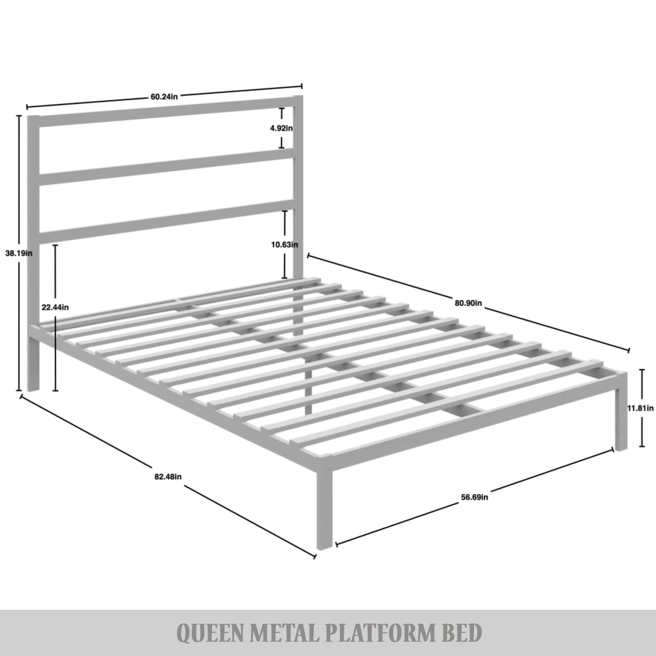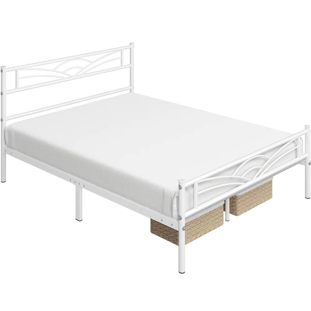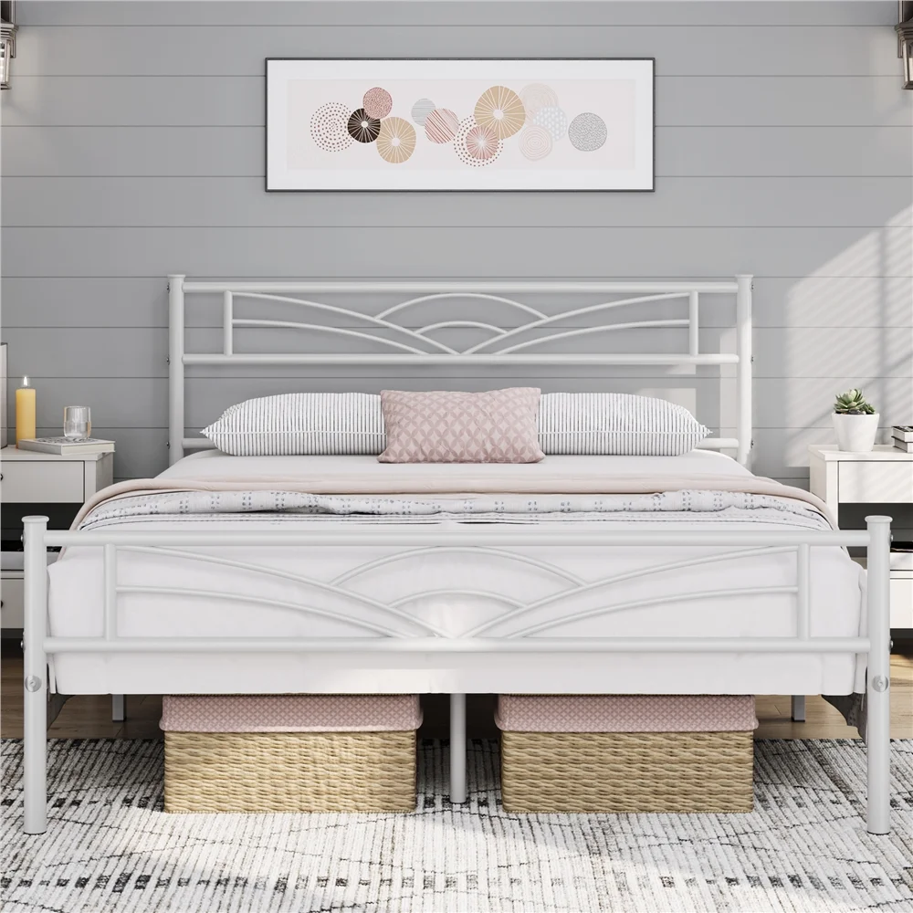 Topeakmart Metal Queen Size Platform Bed with Cloud-inspired Design Headboard, White