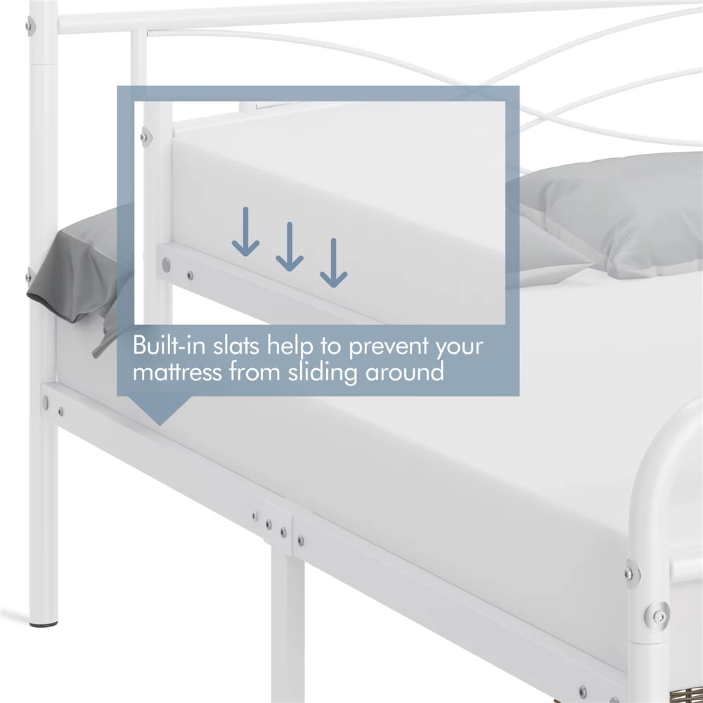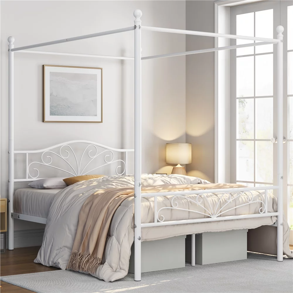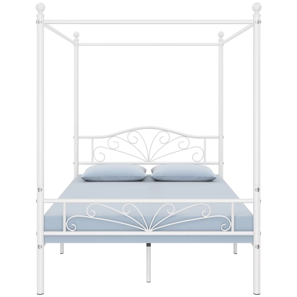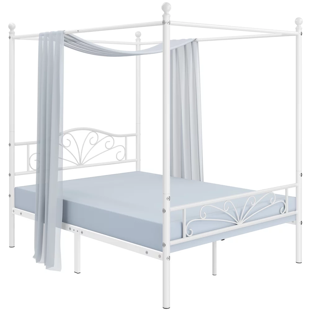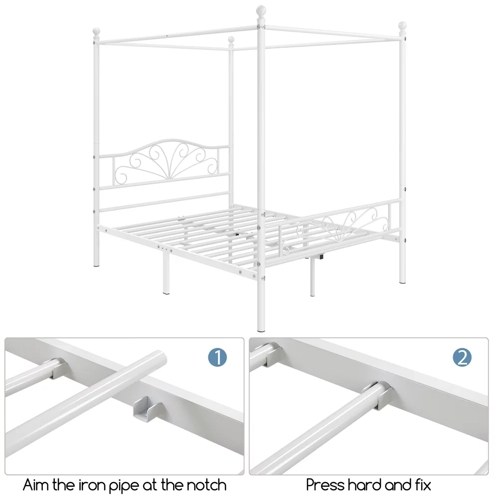 Topeakmart Four-poster Metal Canopy Platform Bed with Arched Headboard and Footboard, Queen Size, White