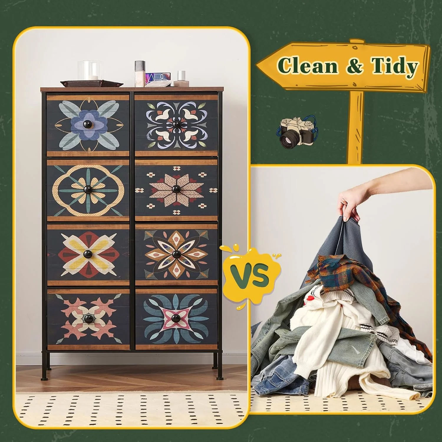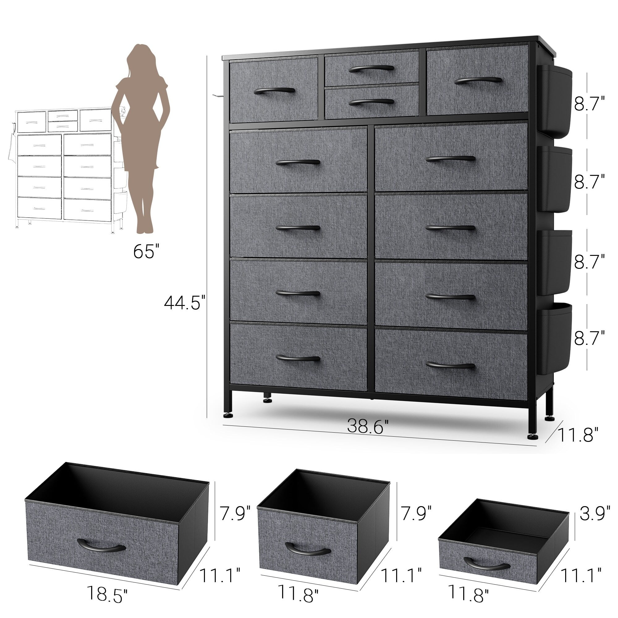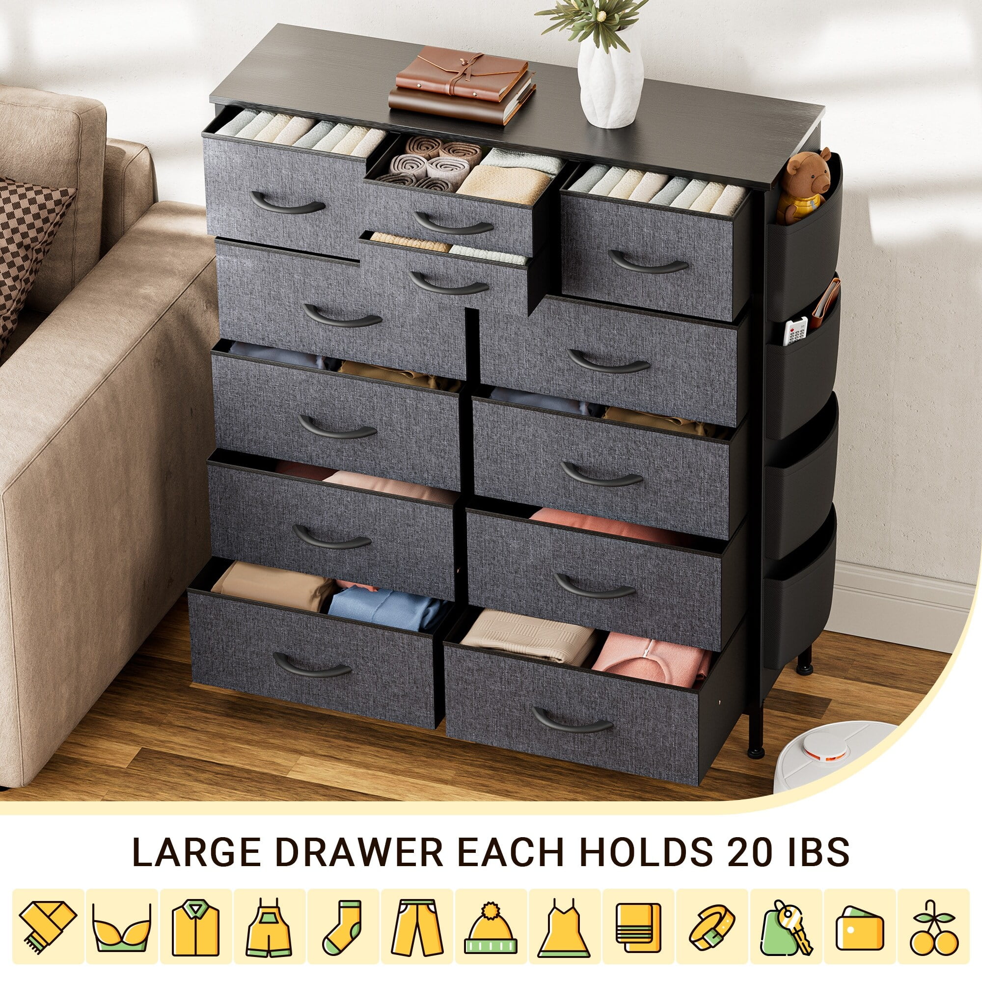 JINYUZHOU INC 12 Drawer Dresser Tall Dressers for Bedroom Fabric Chest of Drawers White