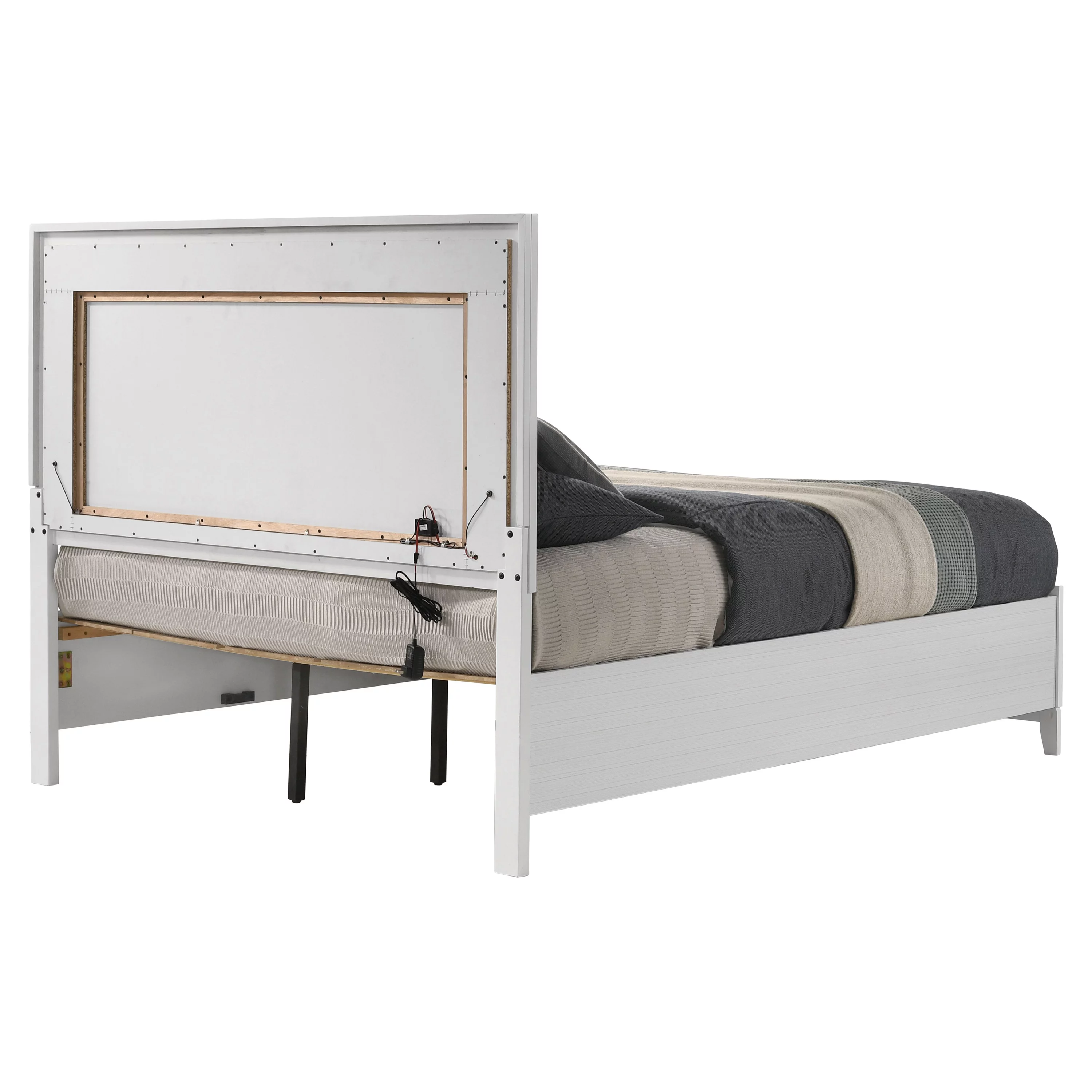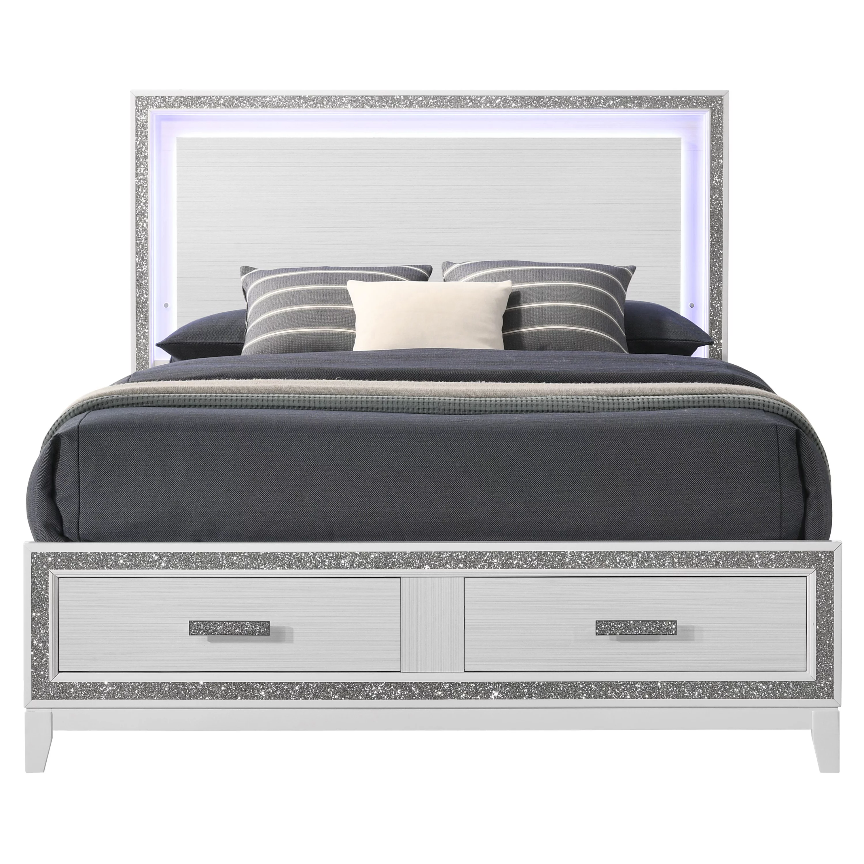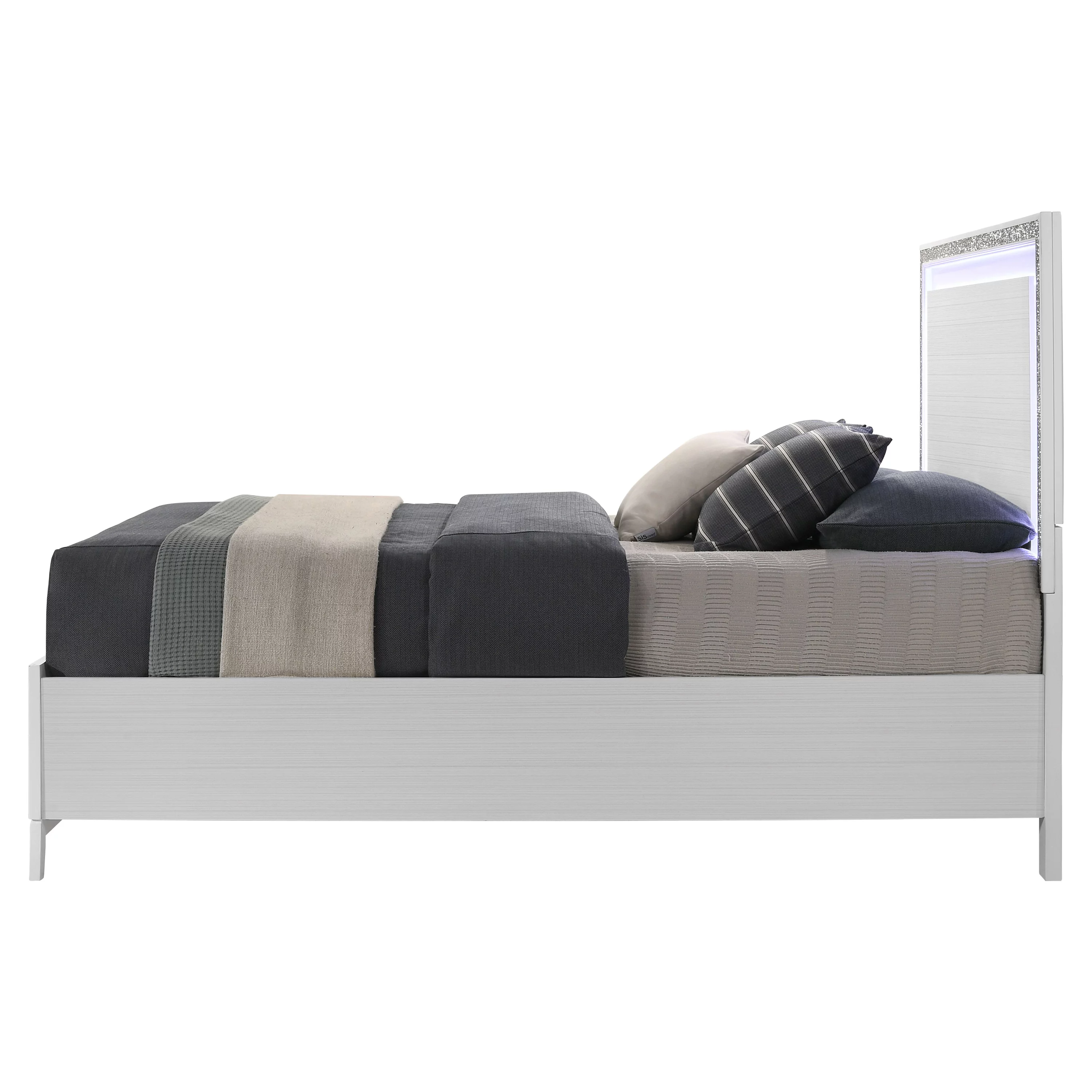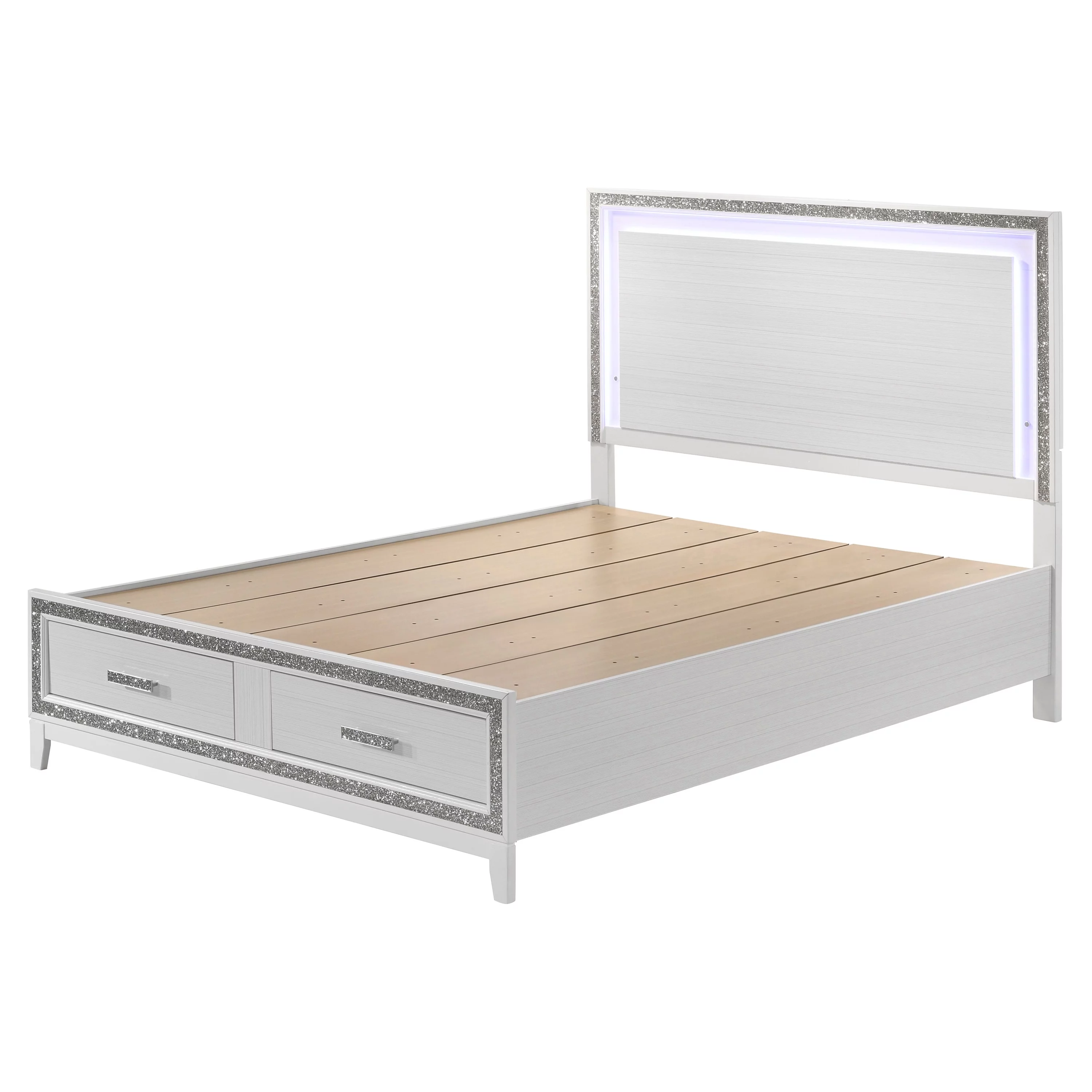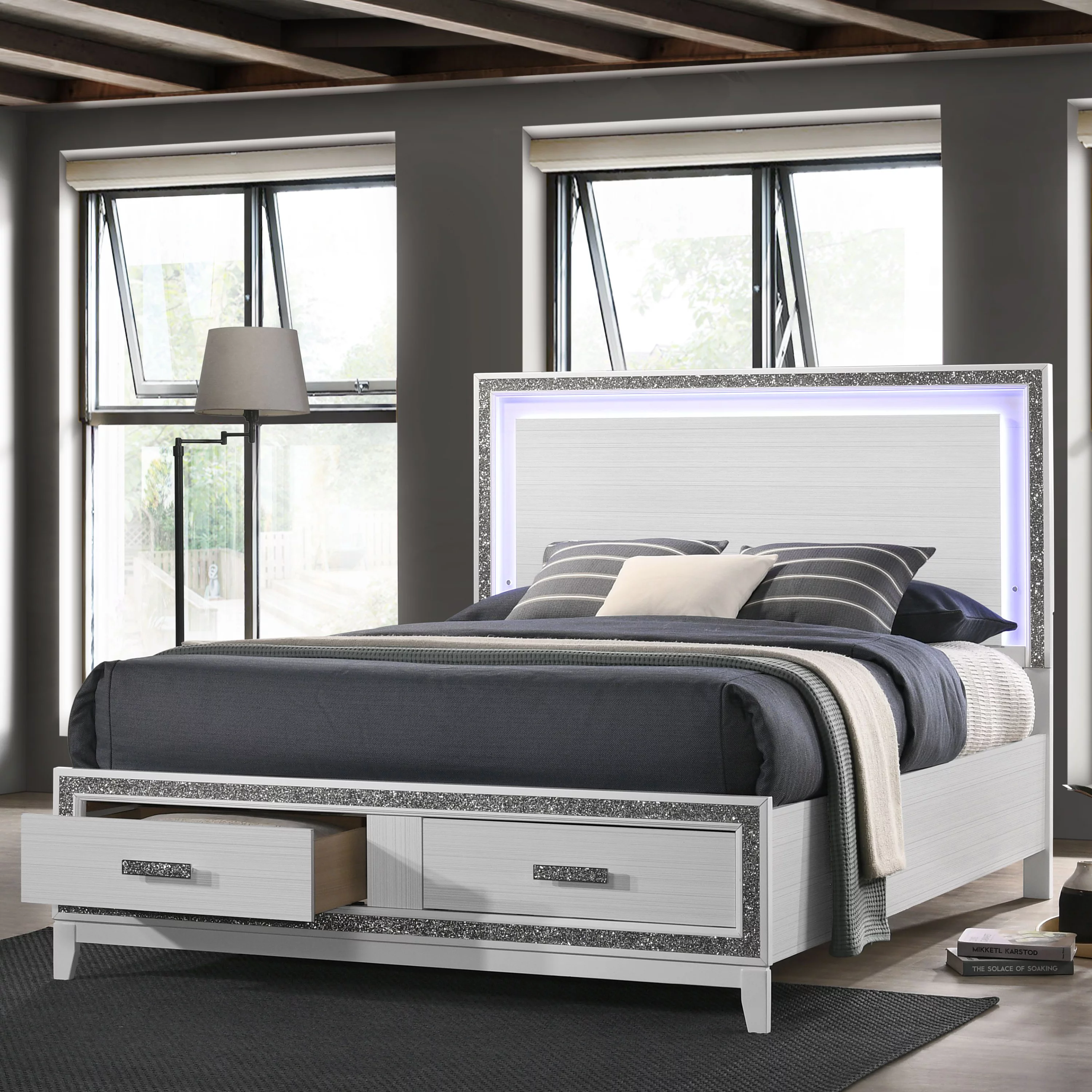 ACME Haiden 2 Drawers Wooden Queen Bed with LED Lighting Headboard in White