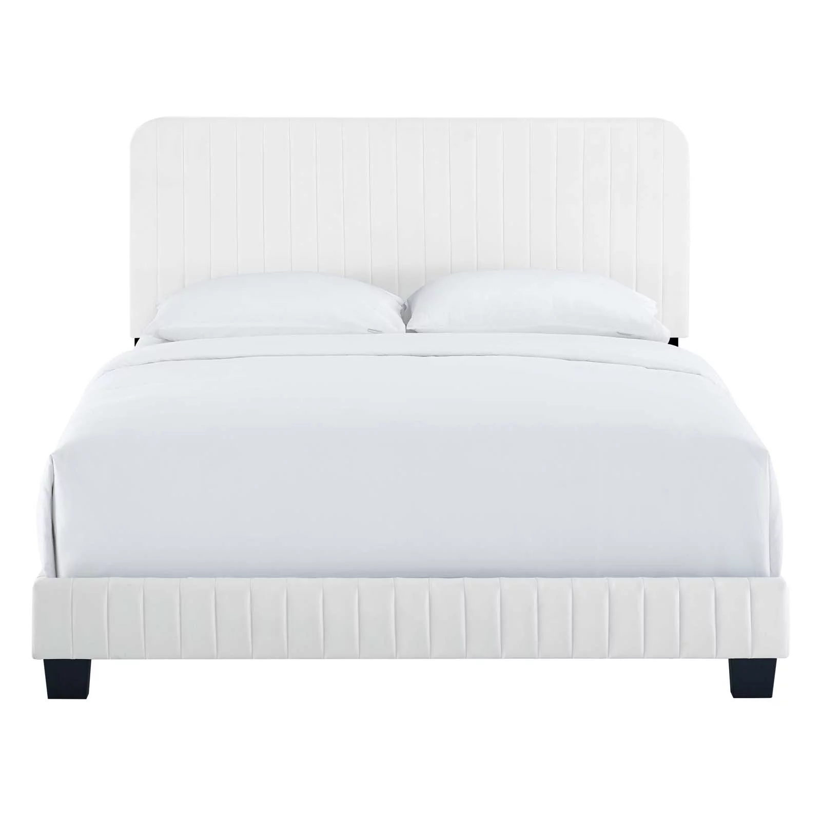 Modway Leah Chevron Tufted Performance Velvet Queen Platform Bed in White