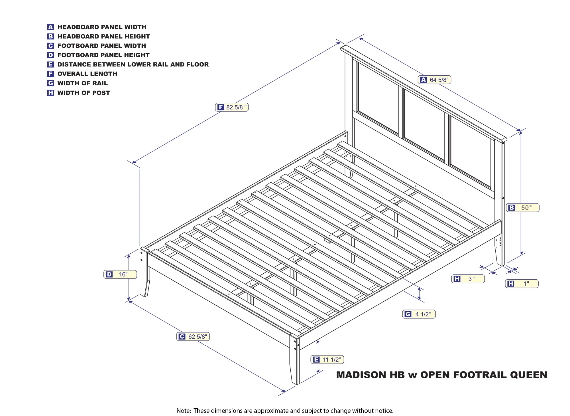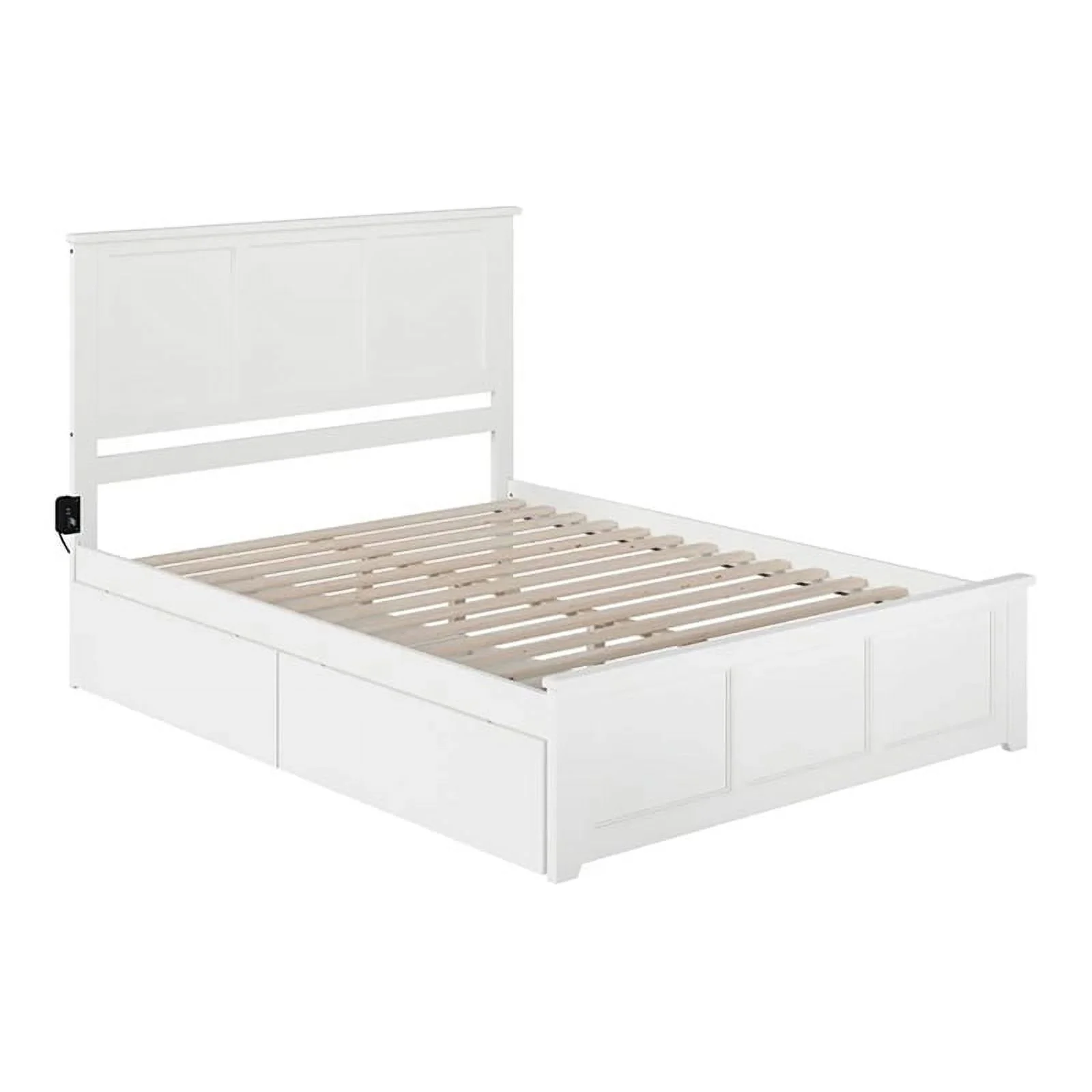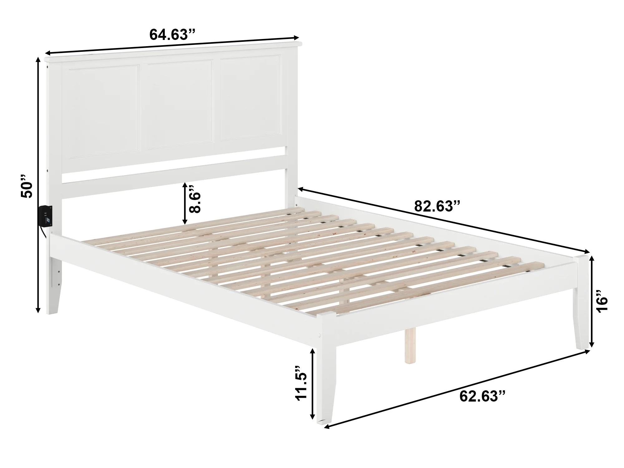 AFI Madison Queen Solid Wood Platform Bed with Panel Headboard in White