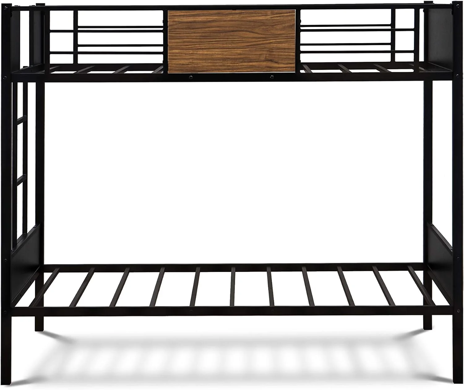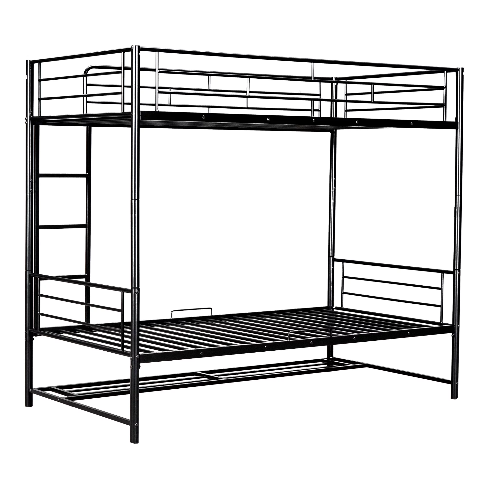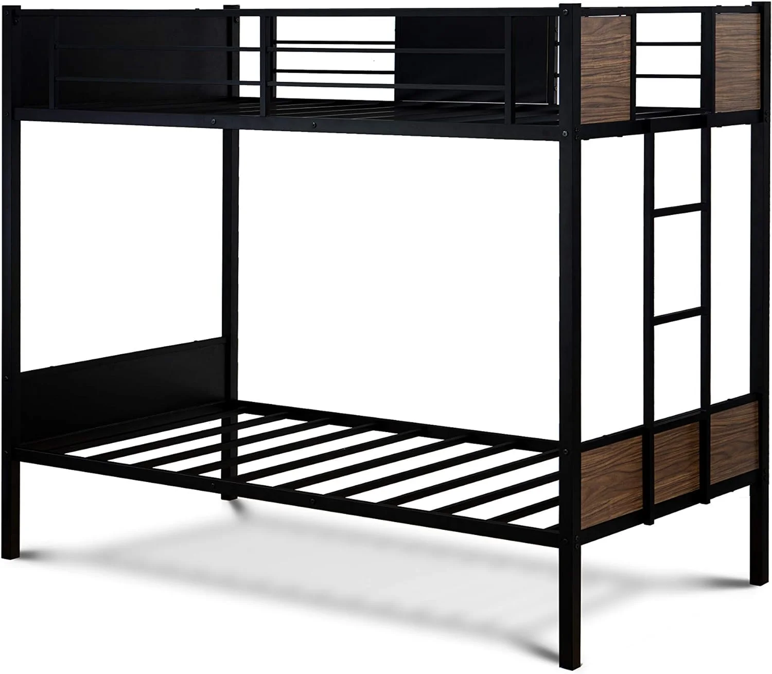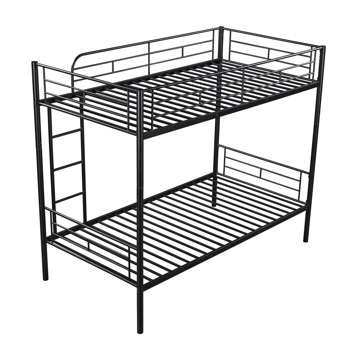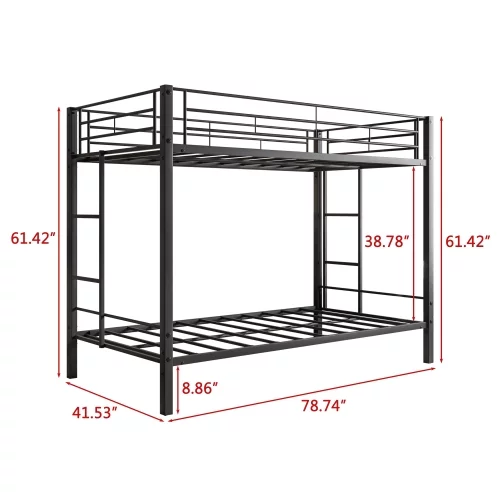 Twin Size Bunk Bed with Ladder & Full-Length Guardrail, No Box Spring Needed, Black