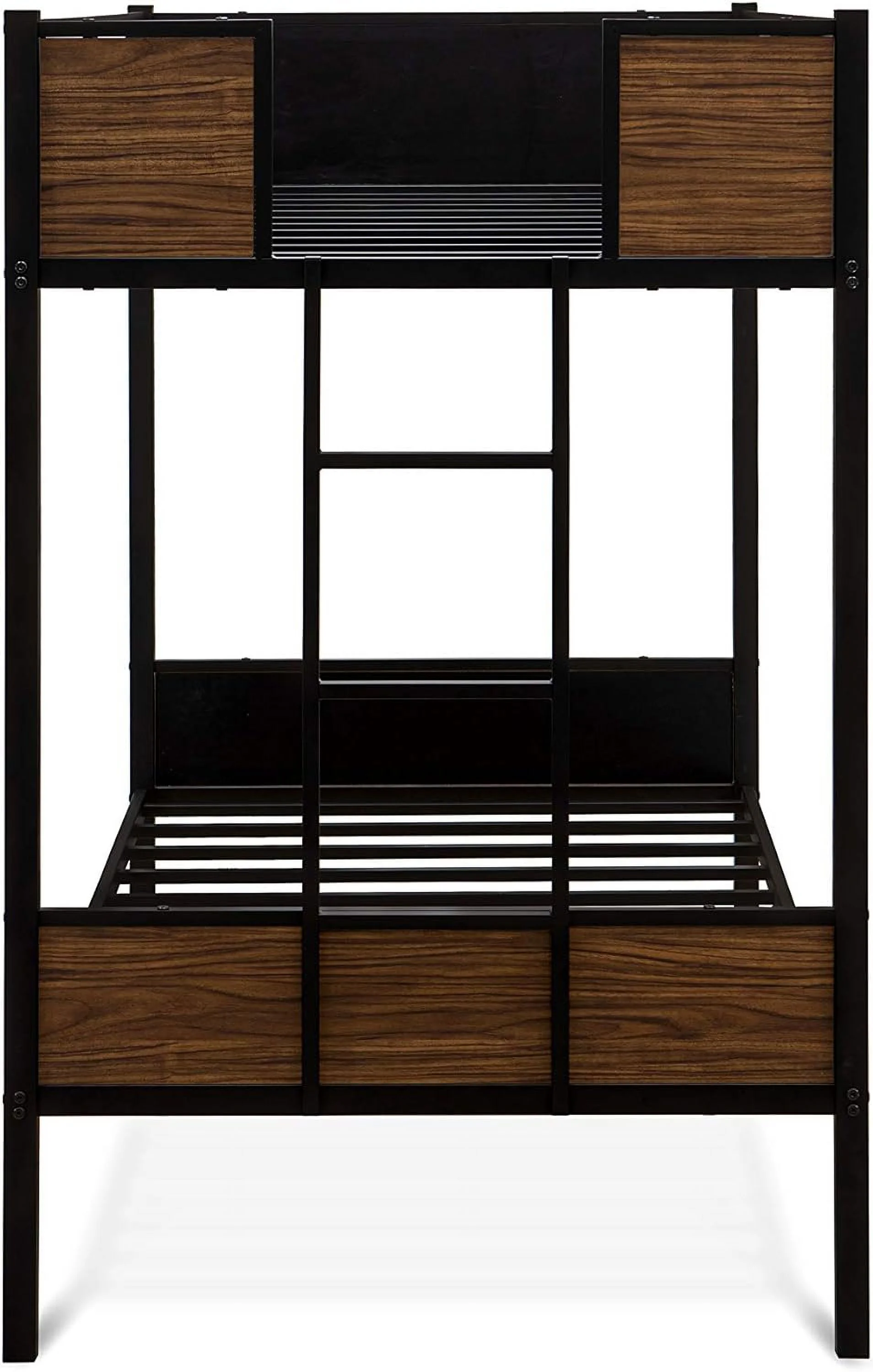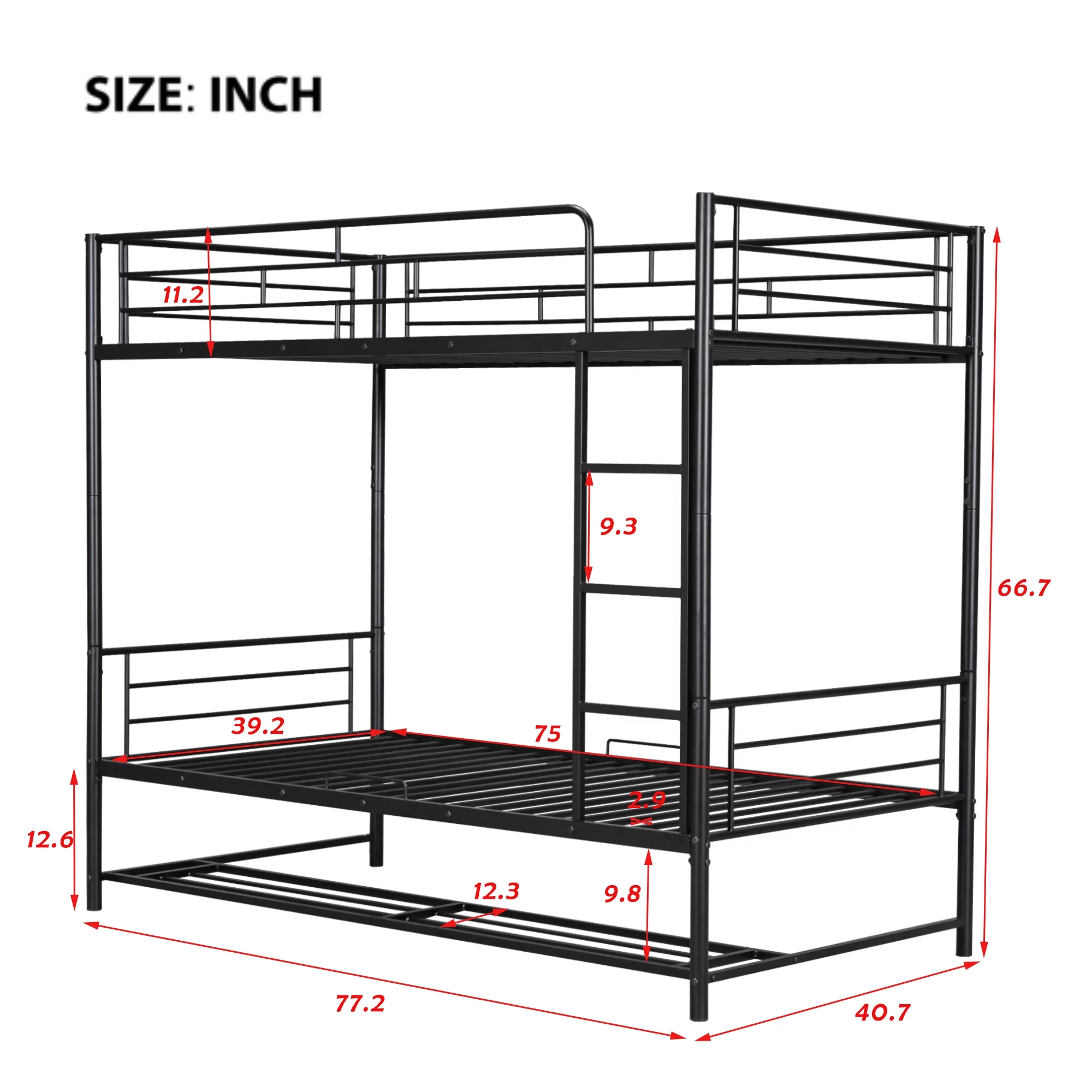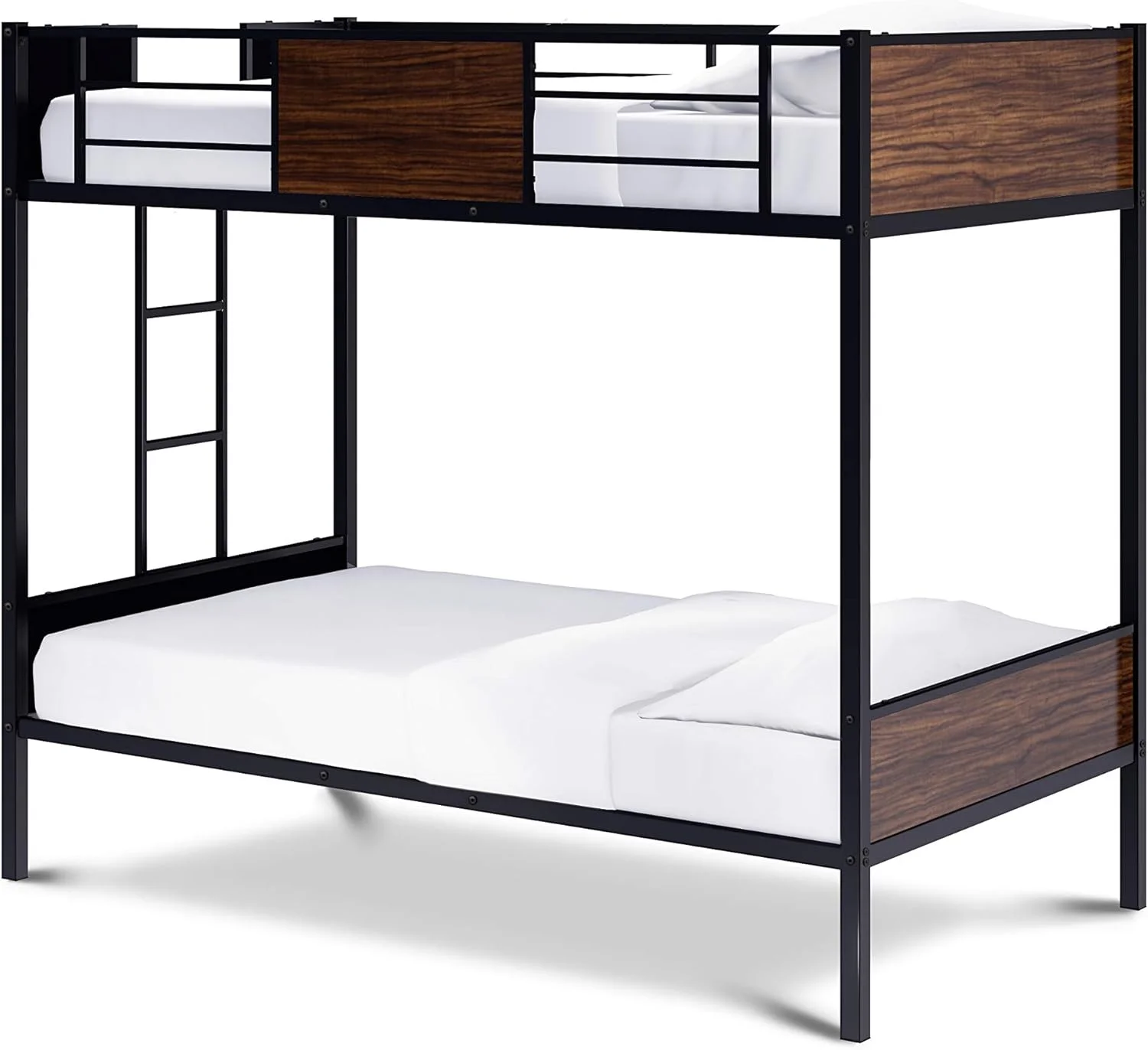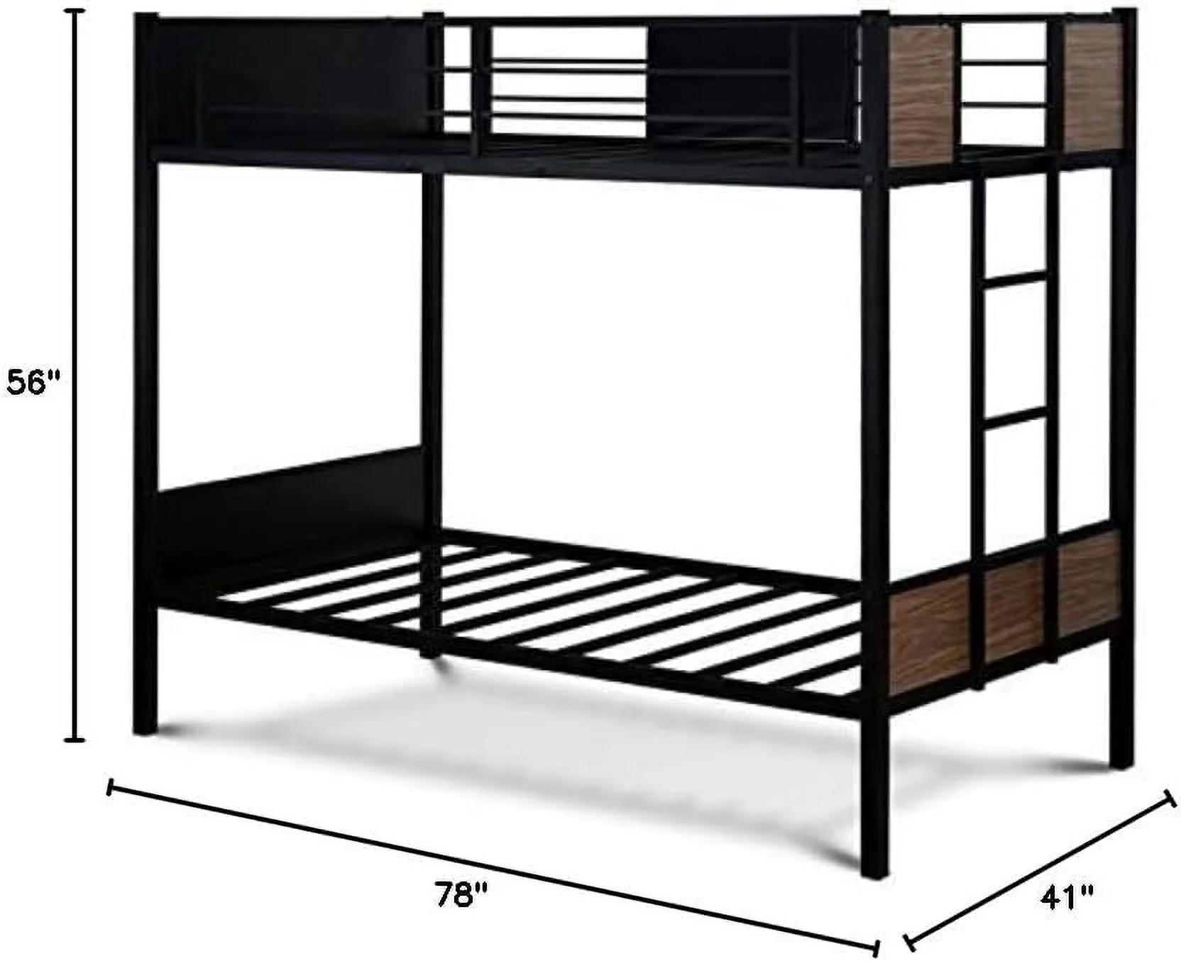 Twin Size Bunk Bed with Ladder & Full-Length Guardrail, No Box Spring Needed, Black