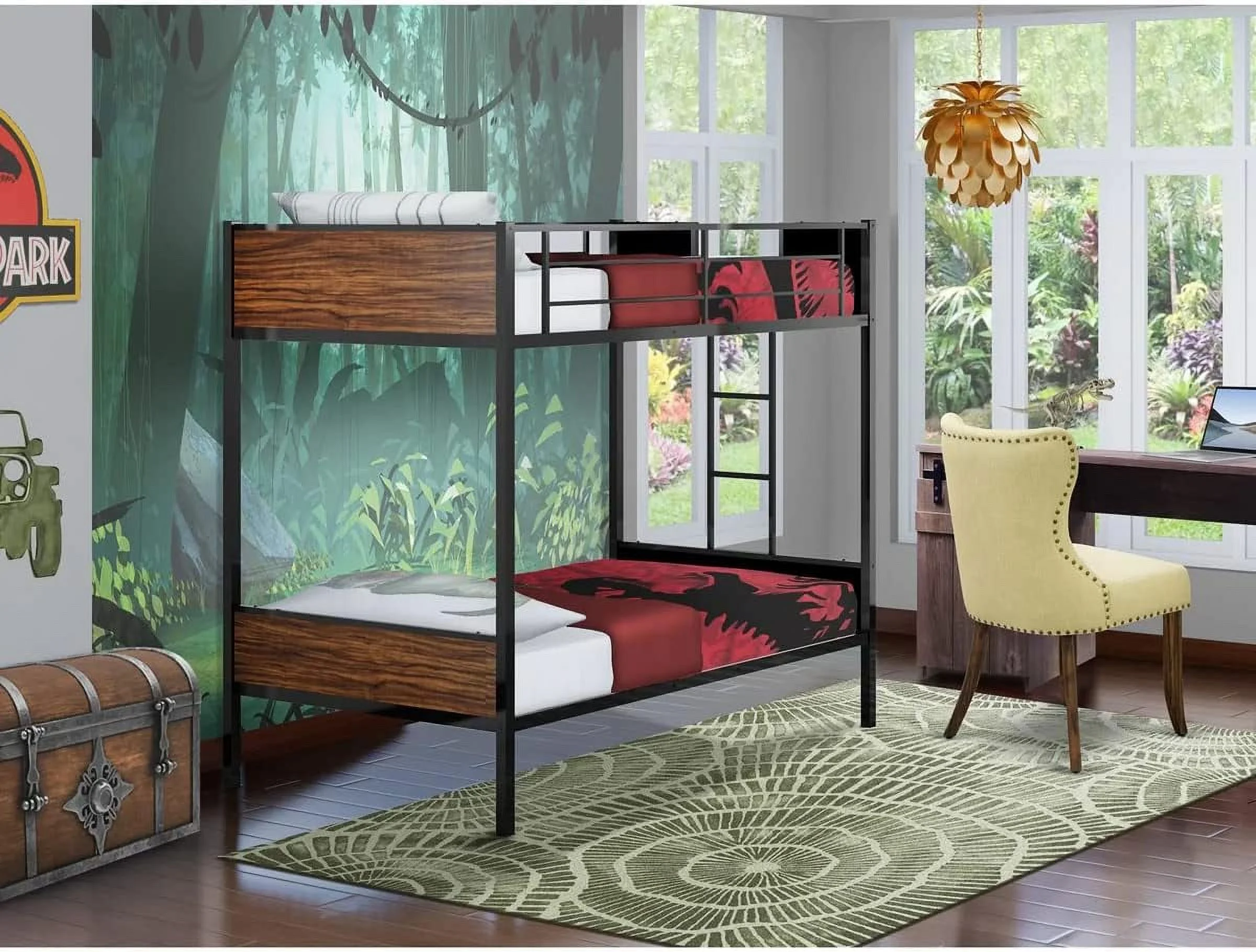 Cairo Twin over Full Metal Bunk Bed with Guardrails and Ladder in Black
