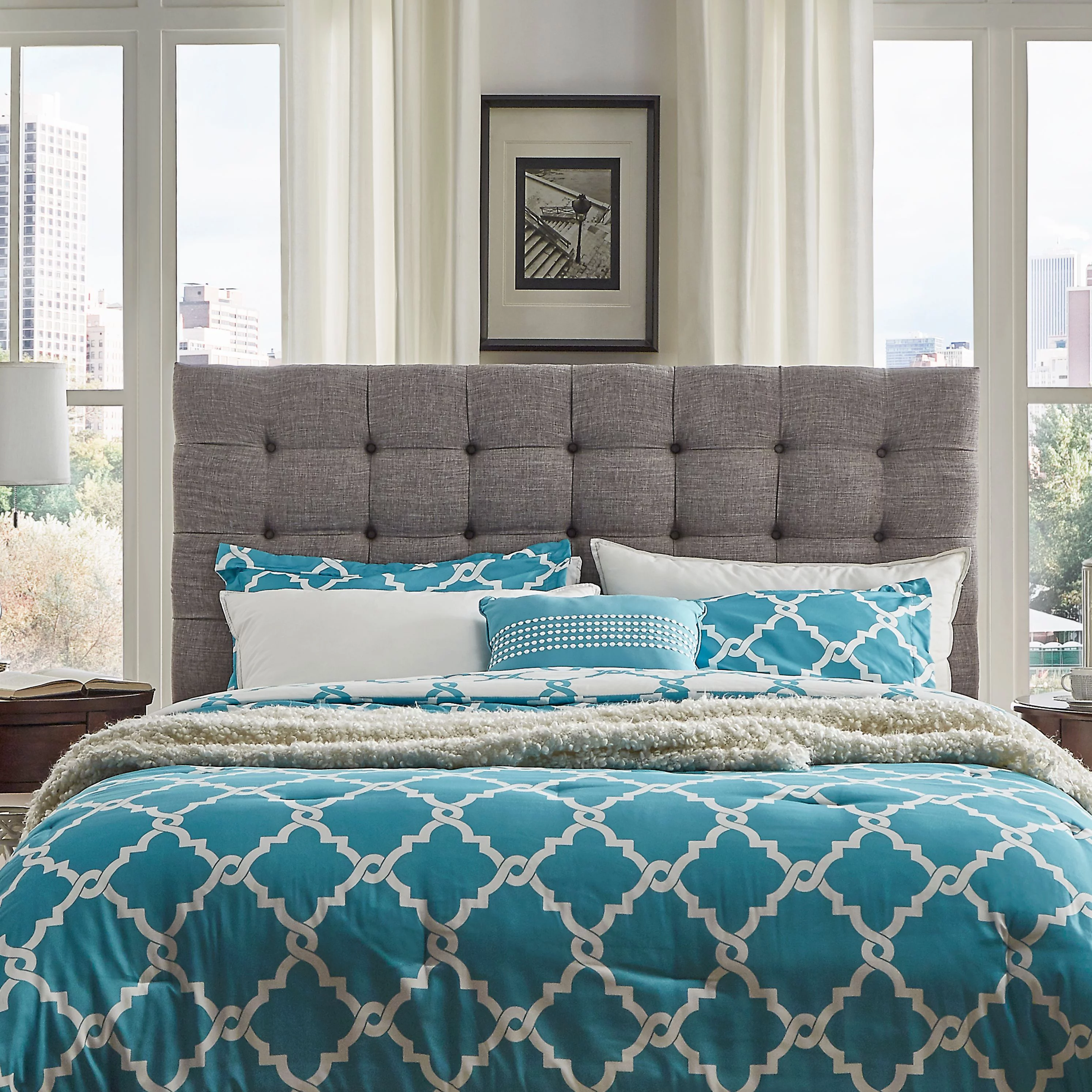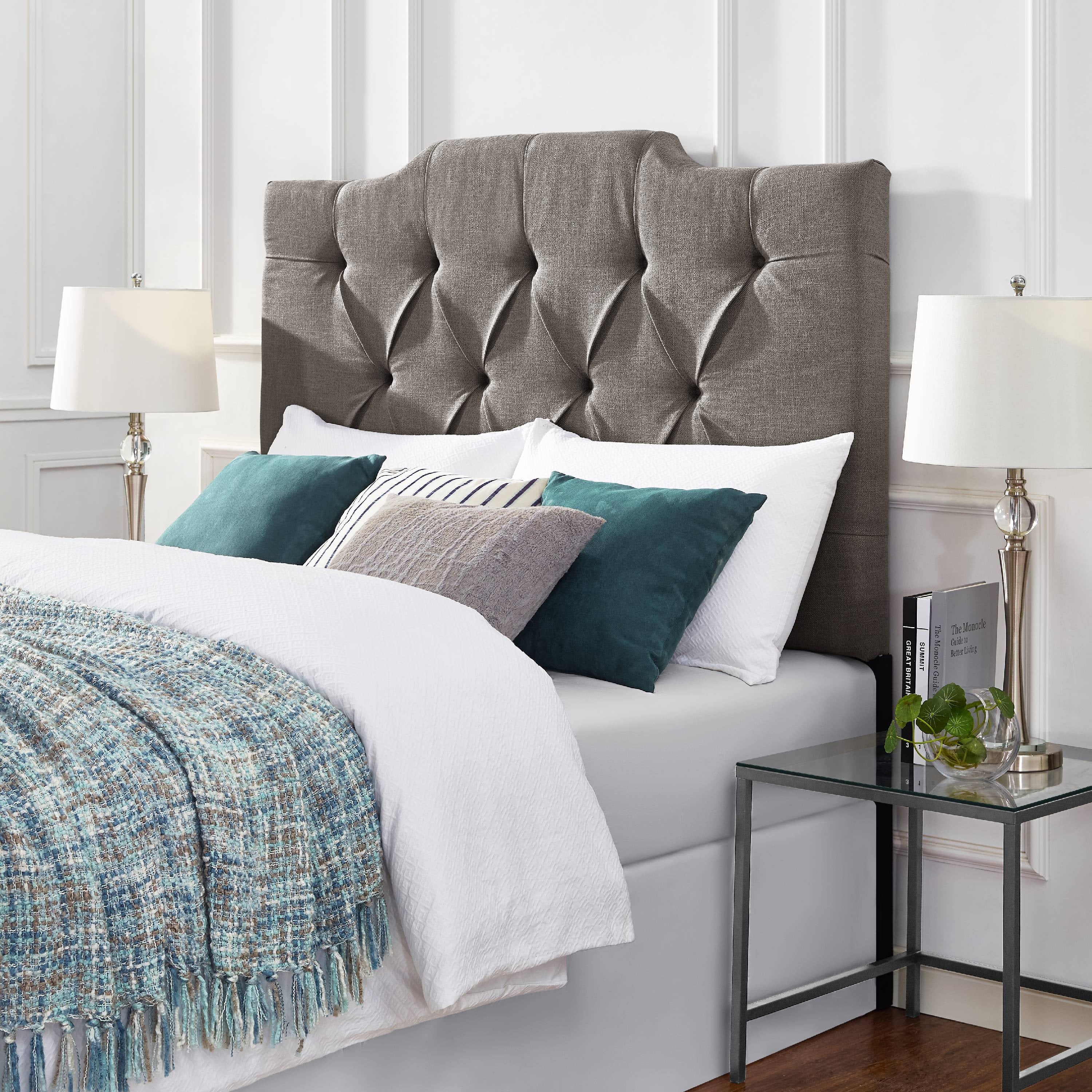 Crosley Grayson Microfiber Panel Tufted Full/Queen Panel Headboard in Granite