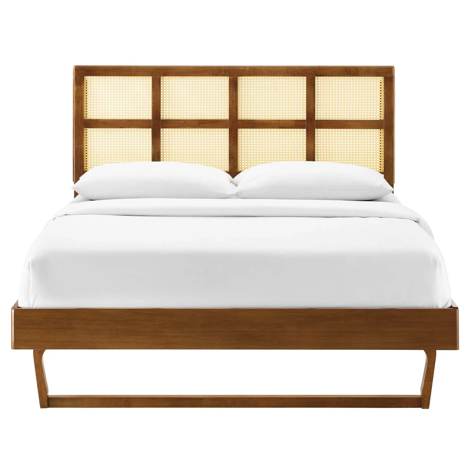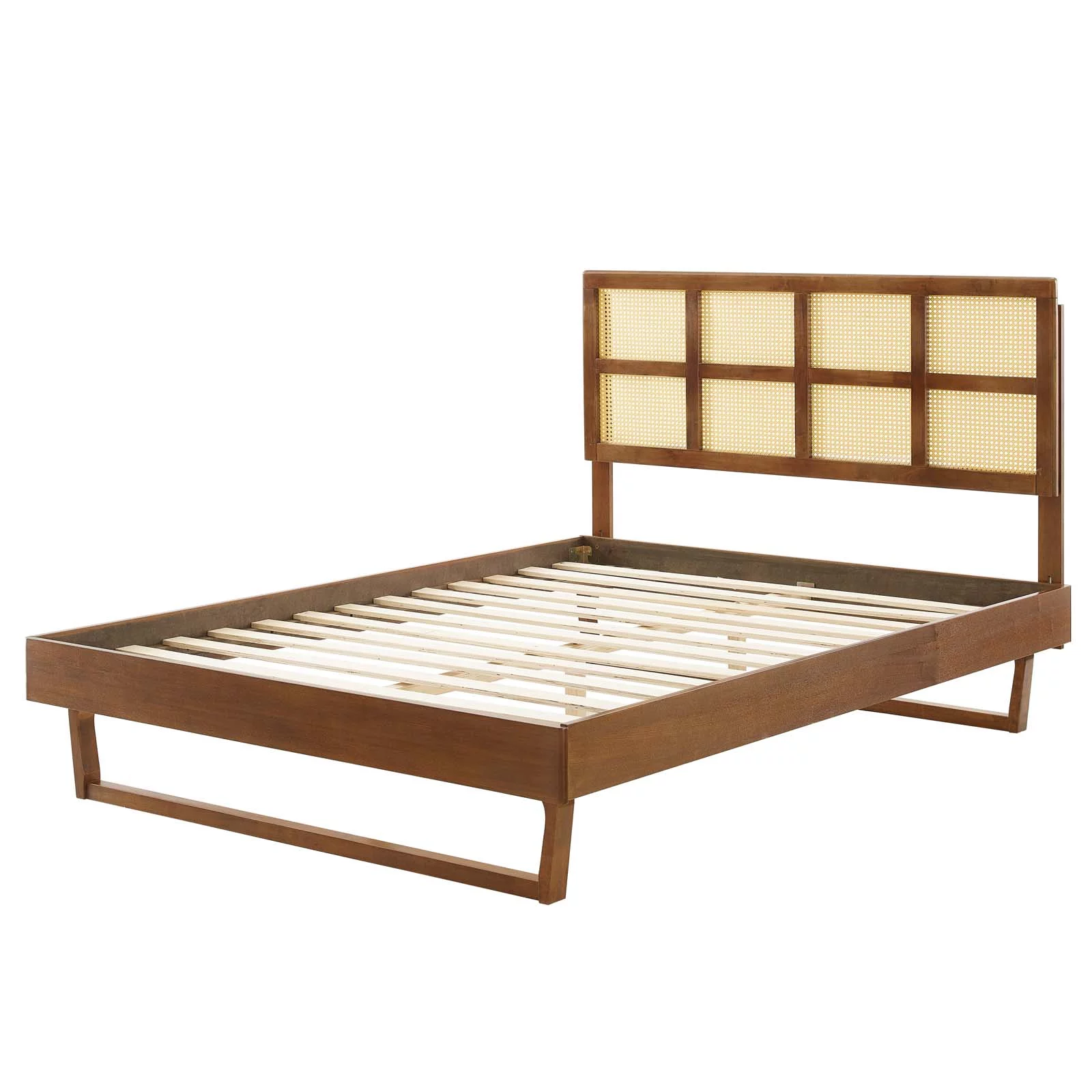 Platform Bed Frame, Full Size, Wood, Brown Walnut, Modern Contemporary Urban Design, Bedroom Master Guest Suite