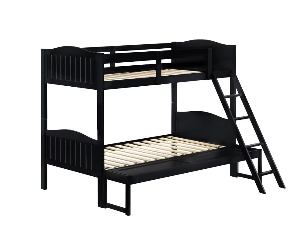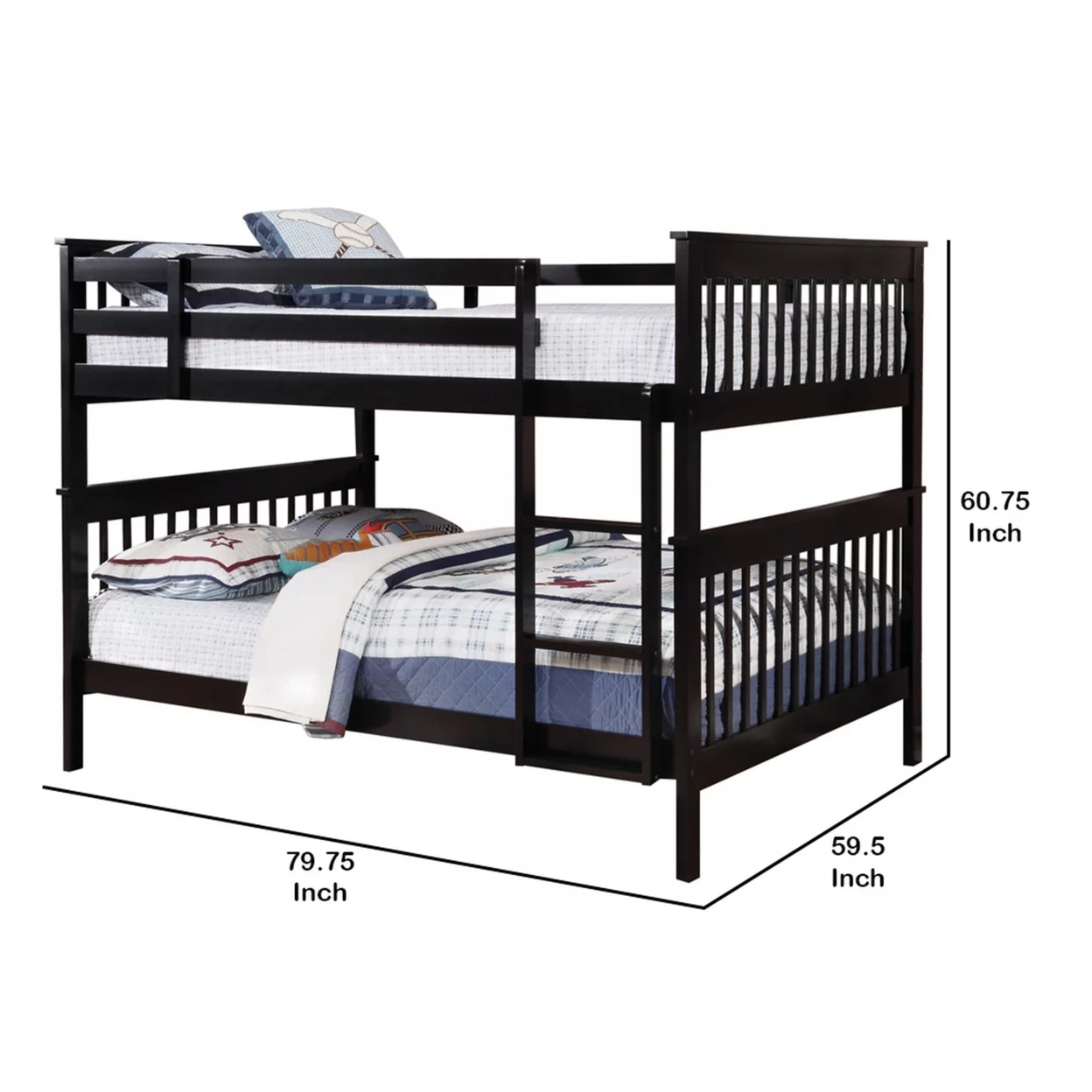 Mission Style Full over Full Bunk Bed with Attached Ladder Black- Saltoro Sherpi