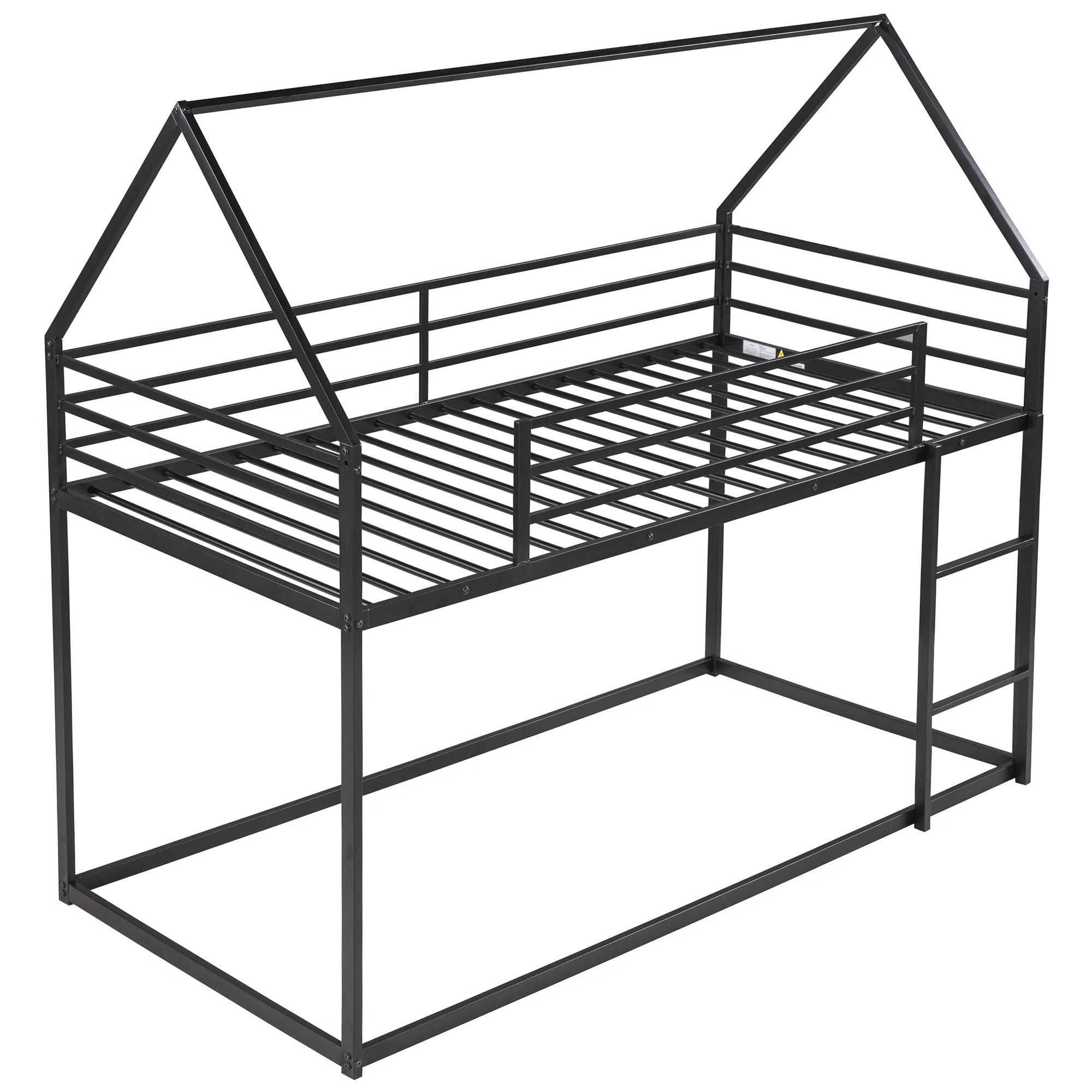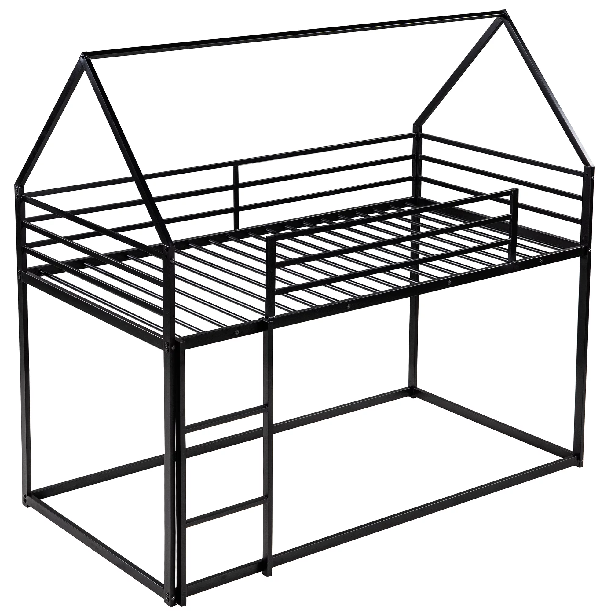 Twin House Bunk Bed with Slide and Secure Ladder Whimsical Bunk Bed- Space-Saving and Fun, Black