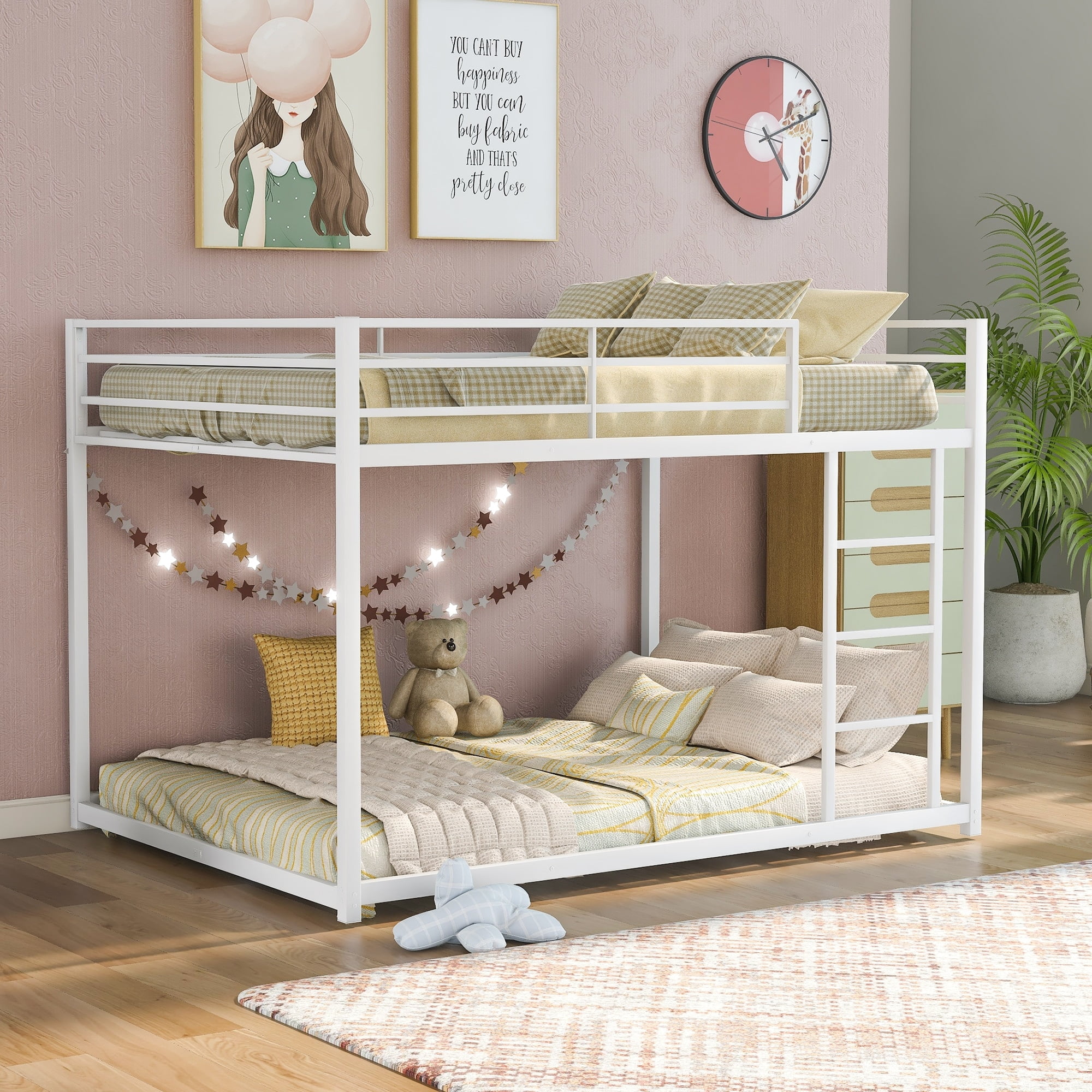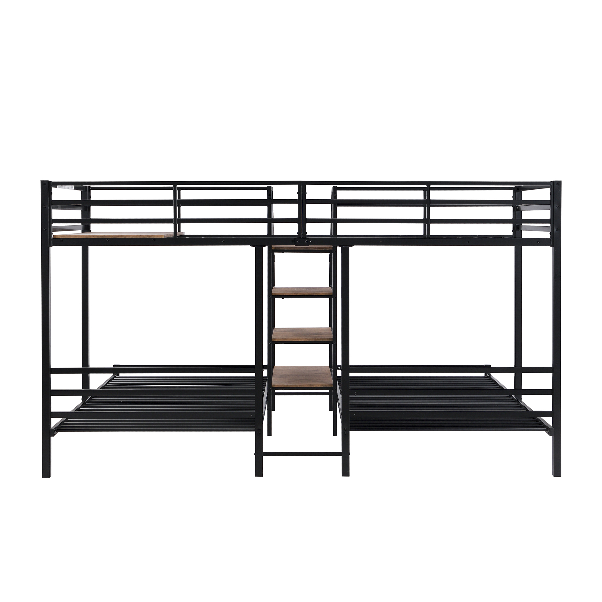 Gewnee Twin Over Twin Full Metal Bunk Bed Frames with Trundle & Two-Side Ladders, Black