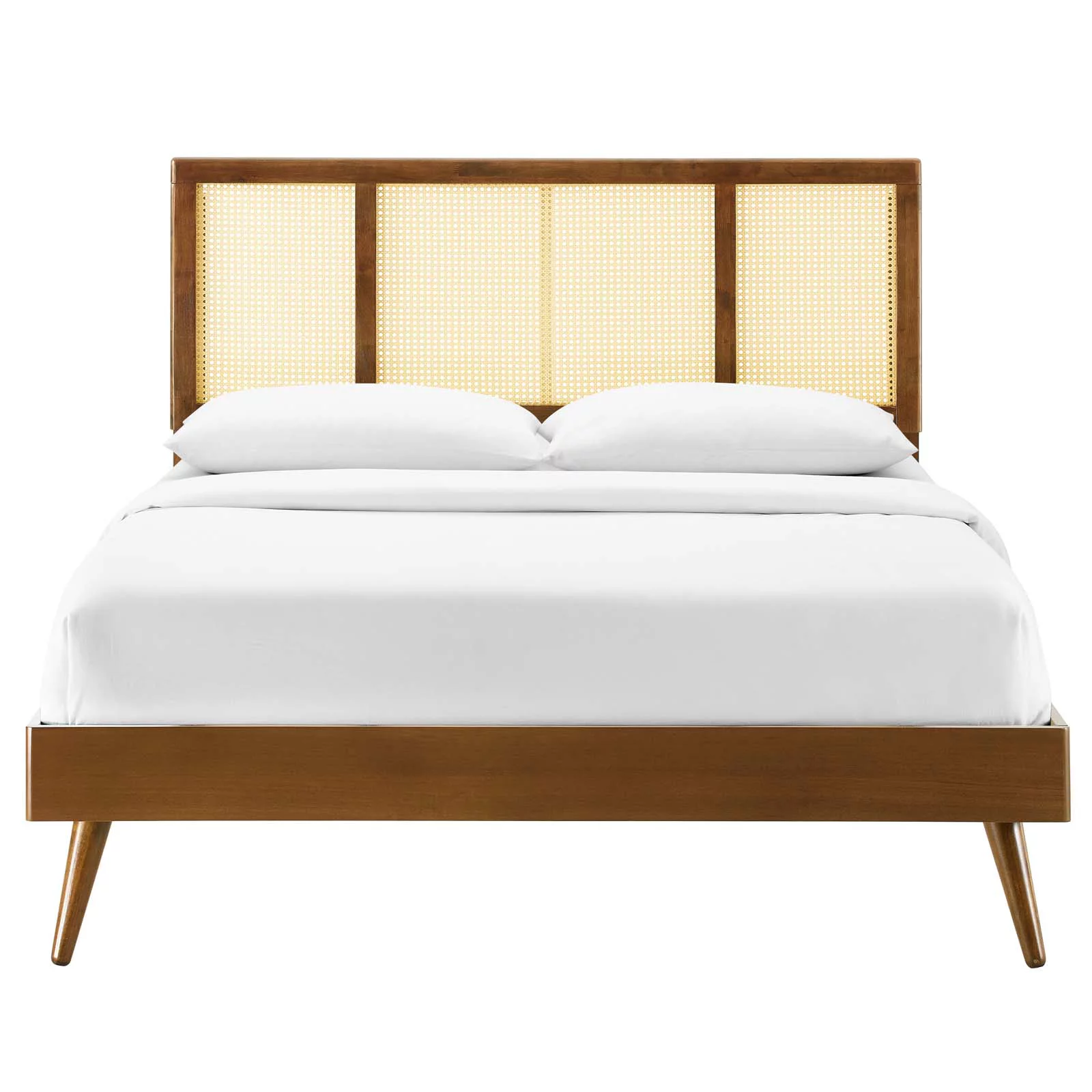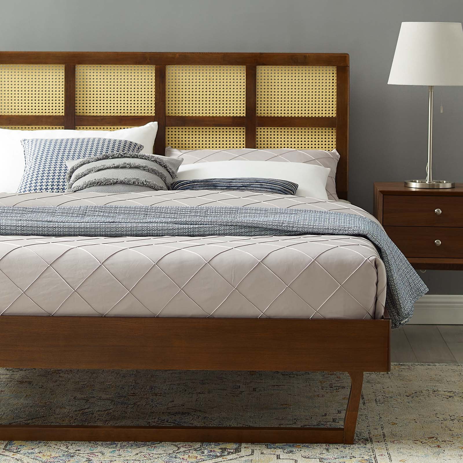 Platform Bed Frame, King Size, Wood, Brown Walnut, Modern Contemporary Urban Design, Bedroom Master Guest Suite