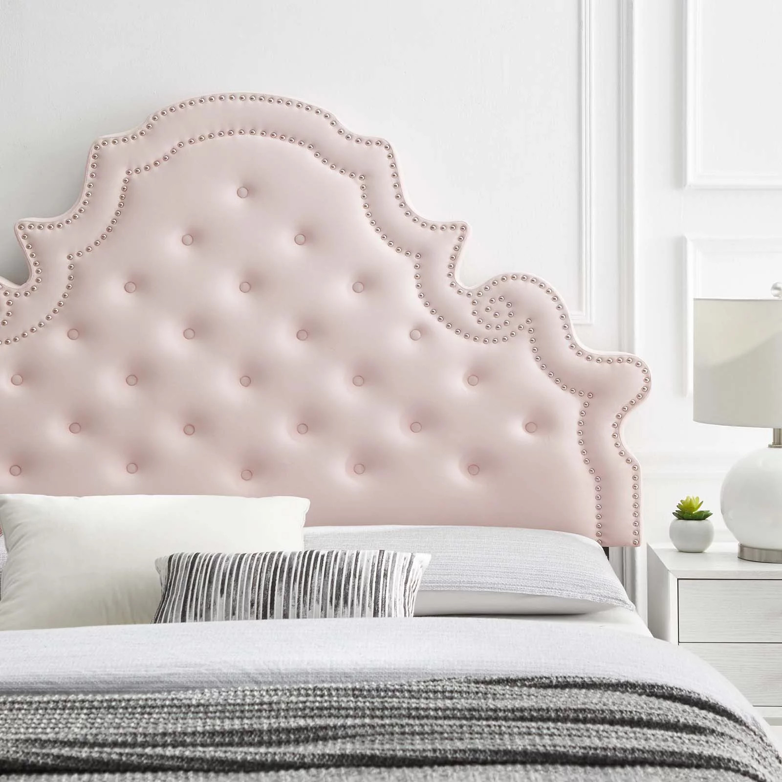 Modway Annabel Queen Diamond Tufted Performance Velvet Headboard in Pink
