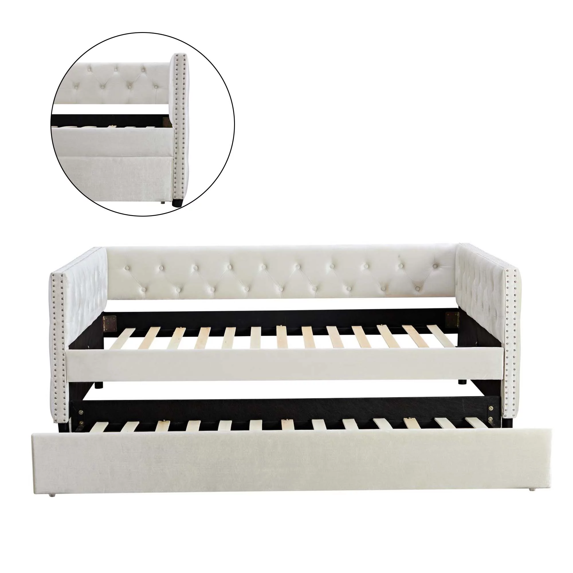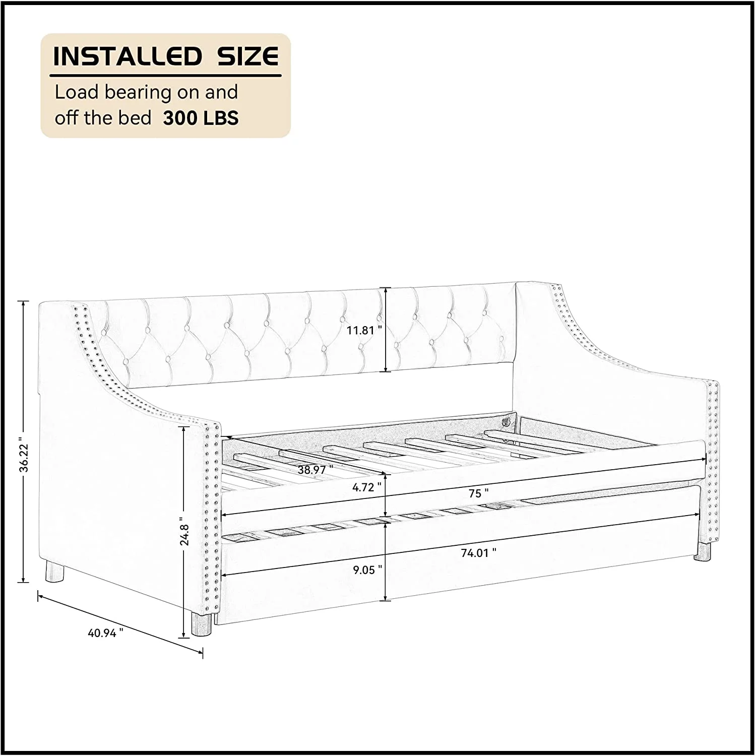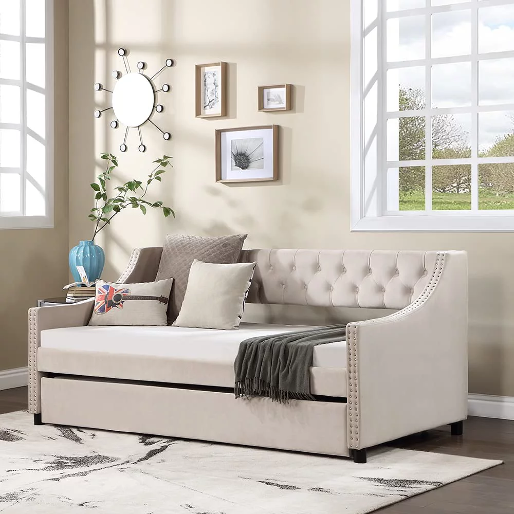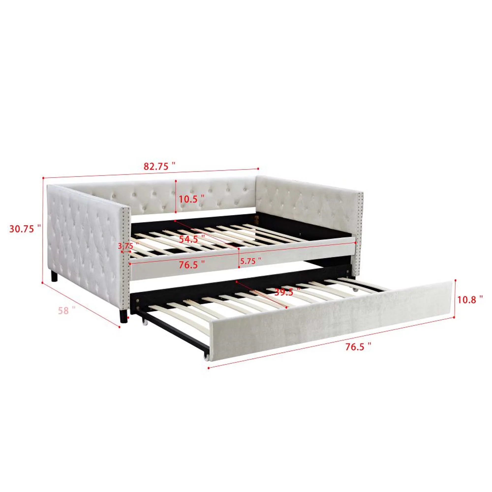 Aukfa Upholstered Daybed with Trundle, Full Size Daybed for Livingroom, Bedroom, Button Tufted - Beige