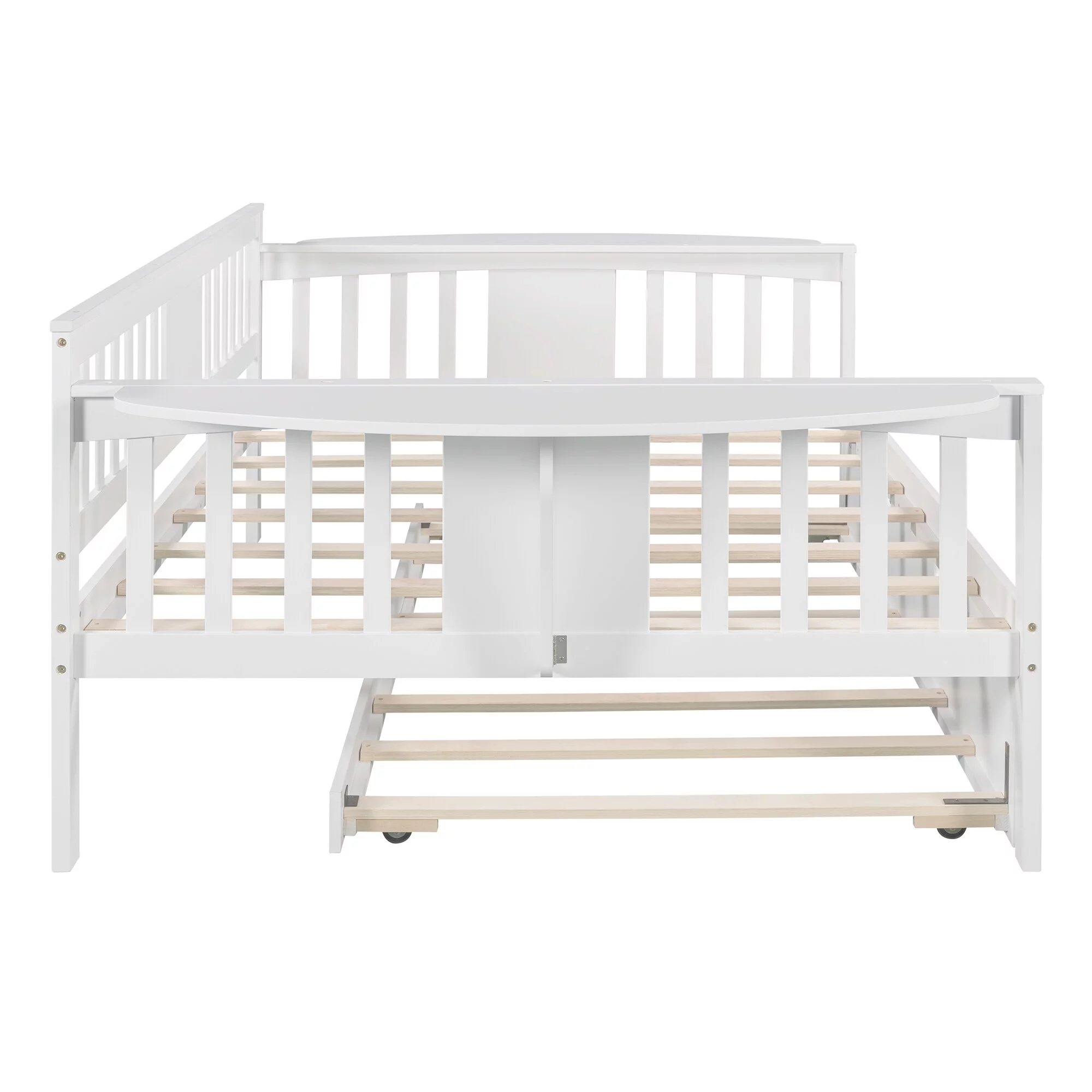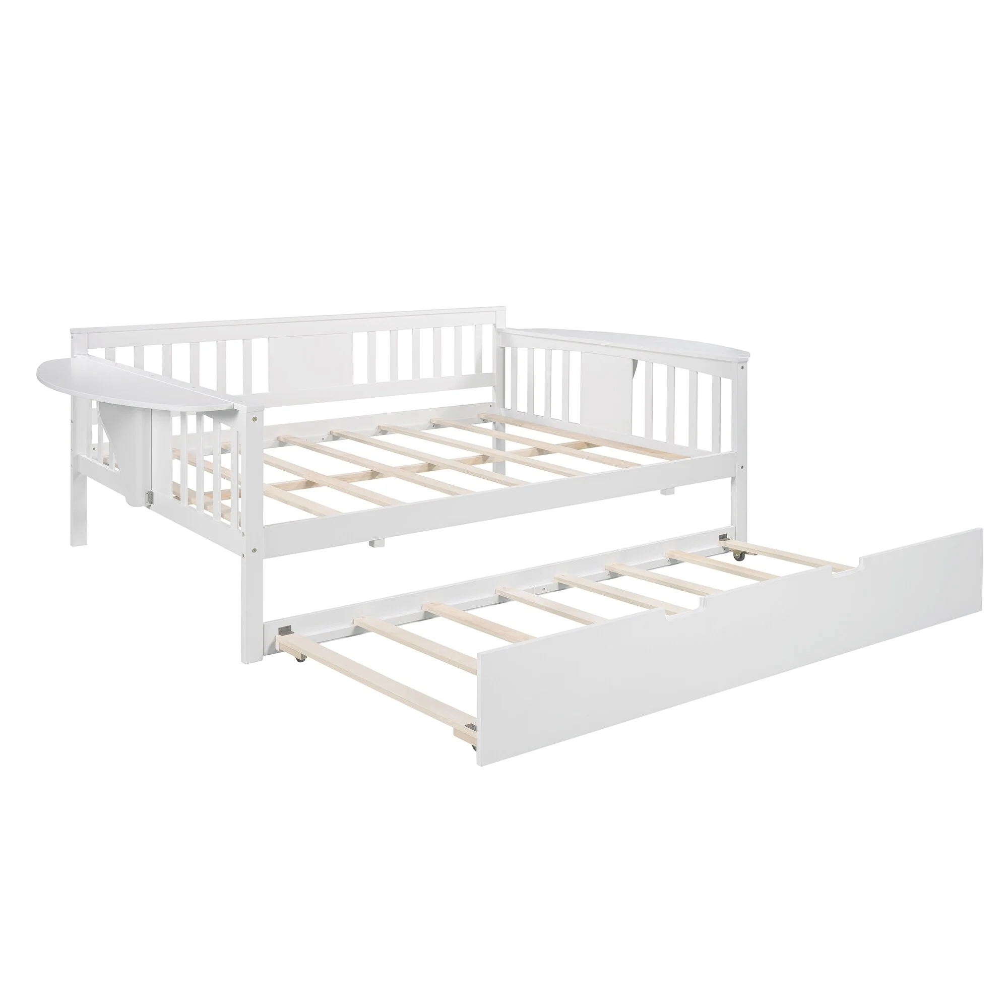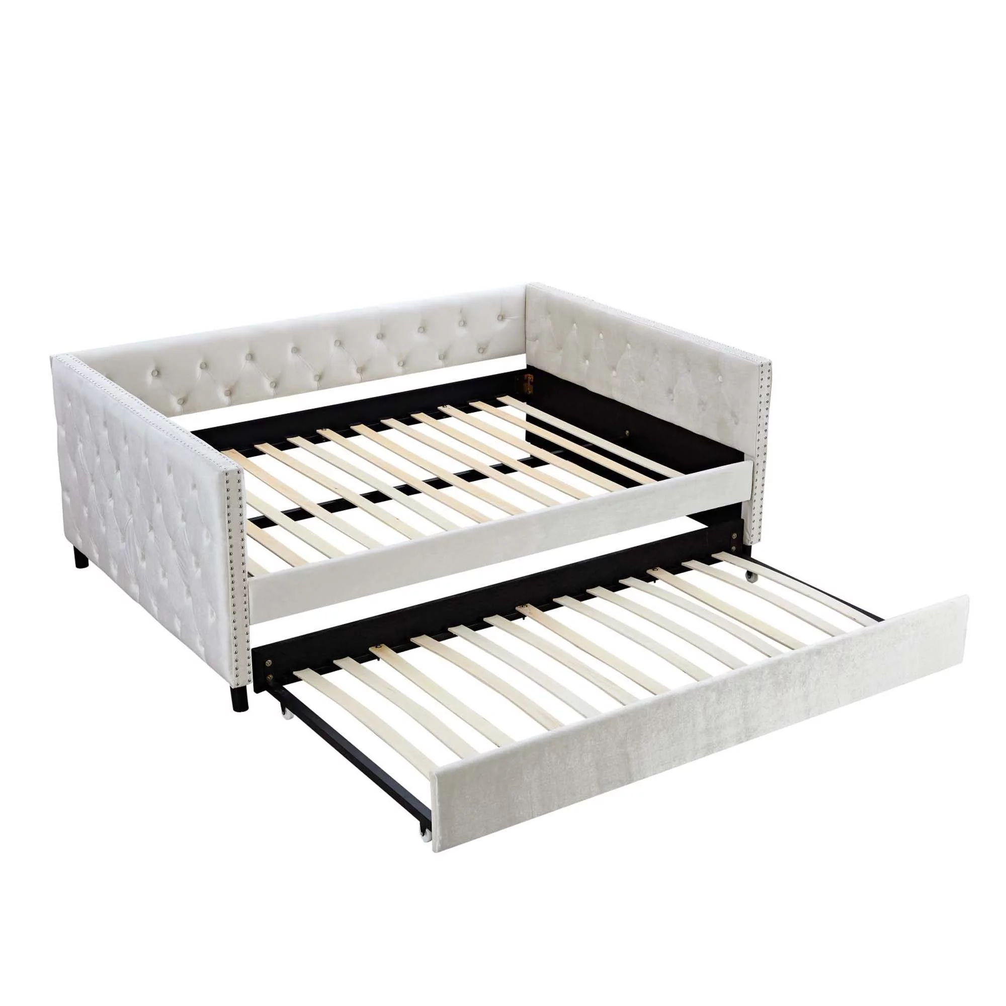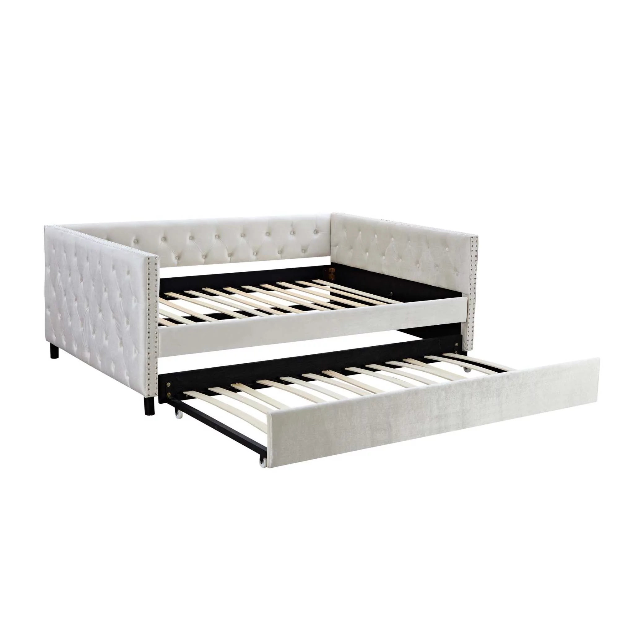Aukfa Upholstered Daybed with Trundle, Full Size Daybed for Livingroom, Bedroom, Button Tufted - Beige