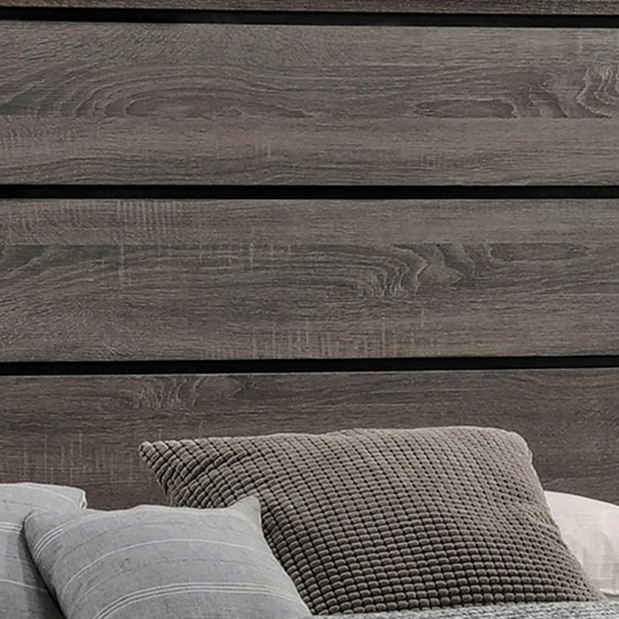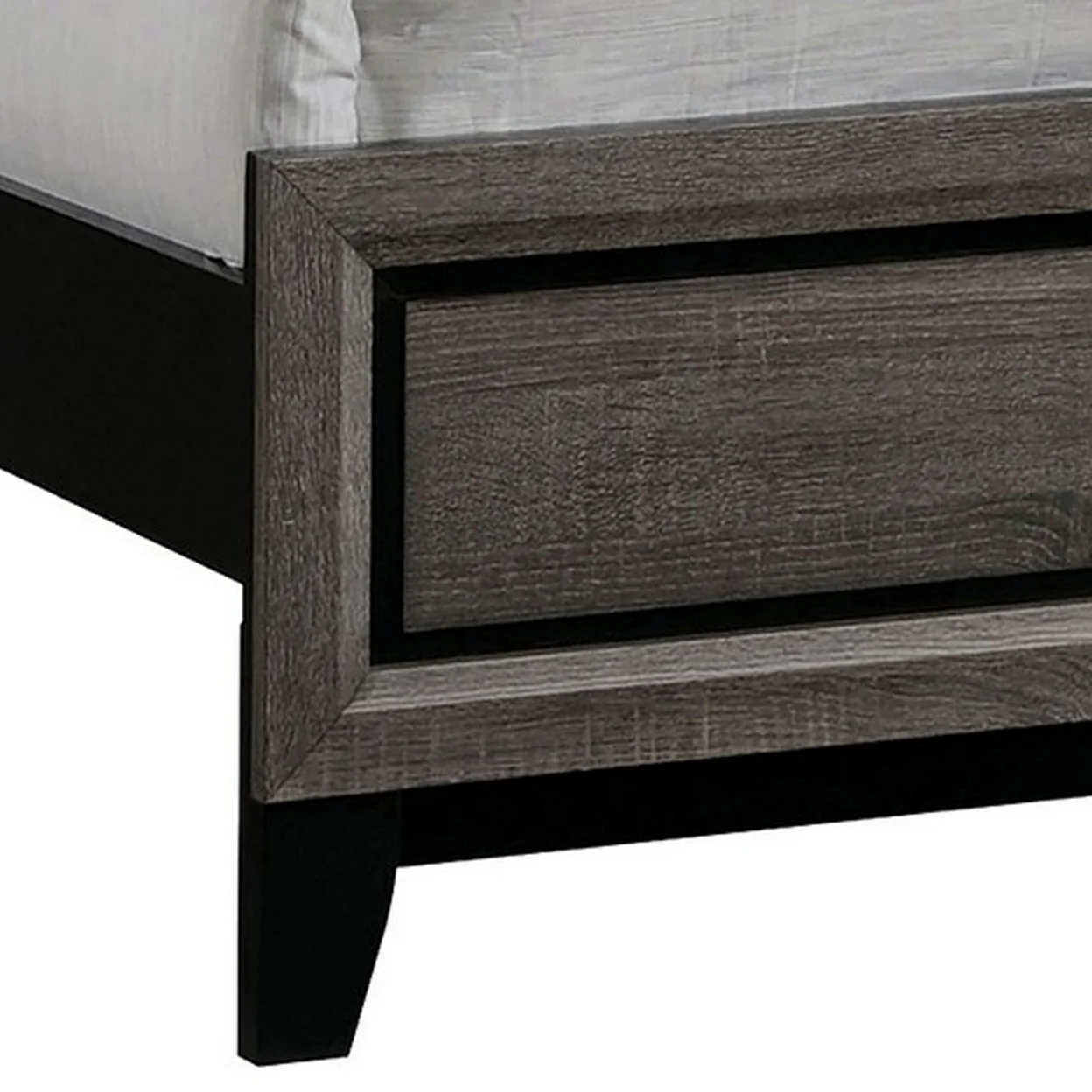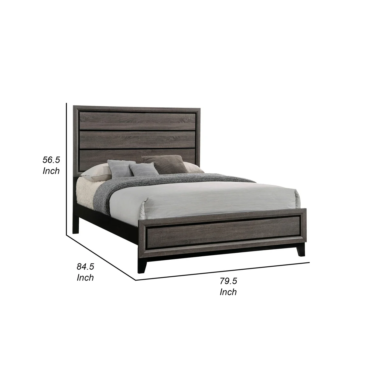 Mela California King Size Panel Bed Grooved Design Gray and Black- Saltoro Sherpi
