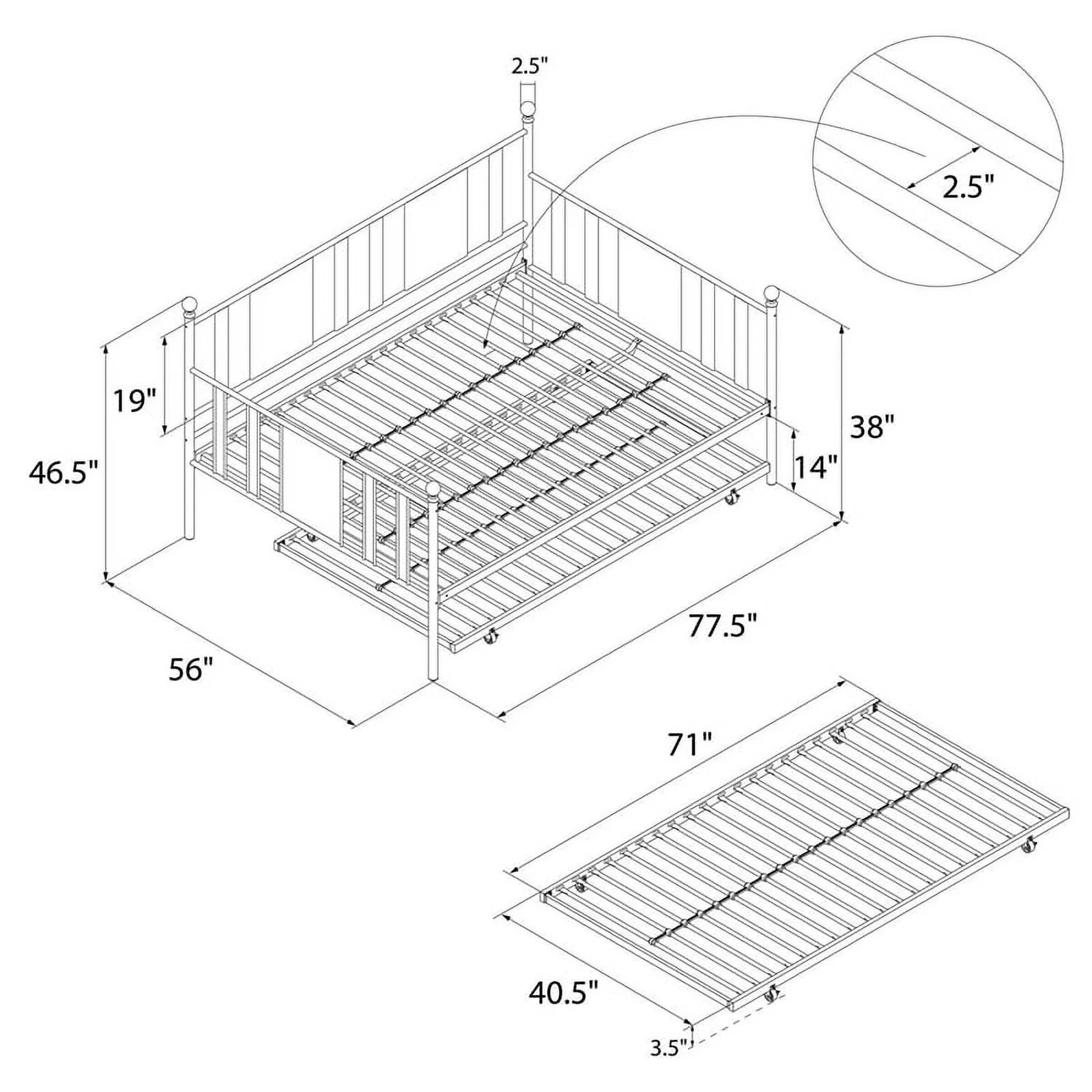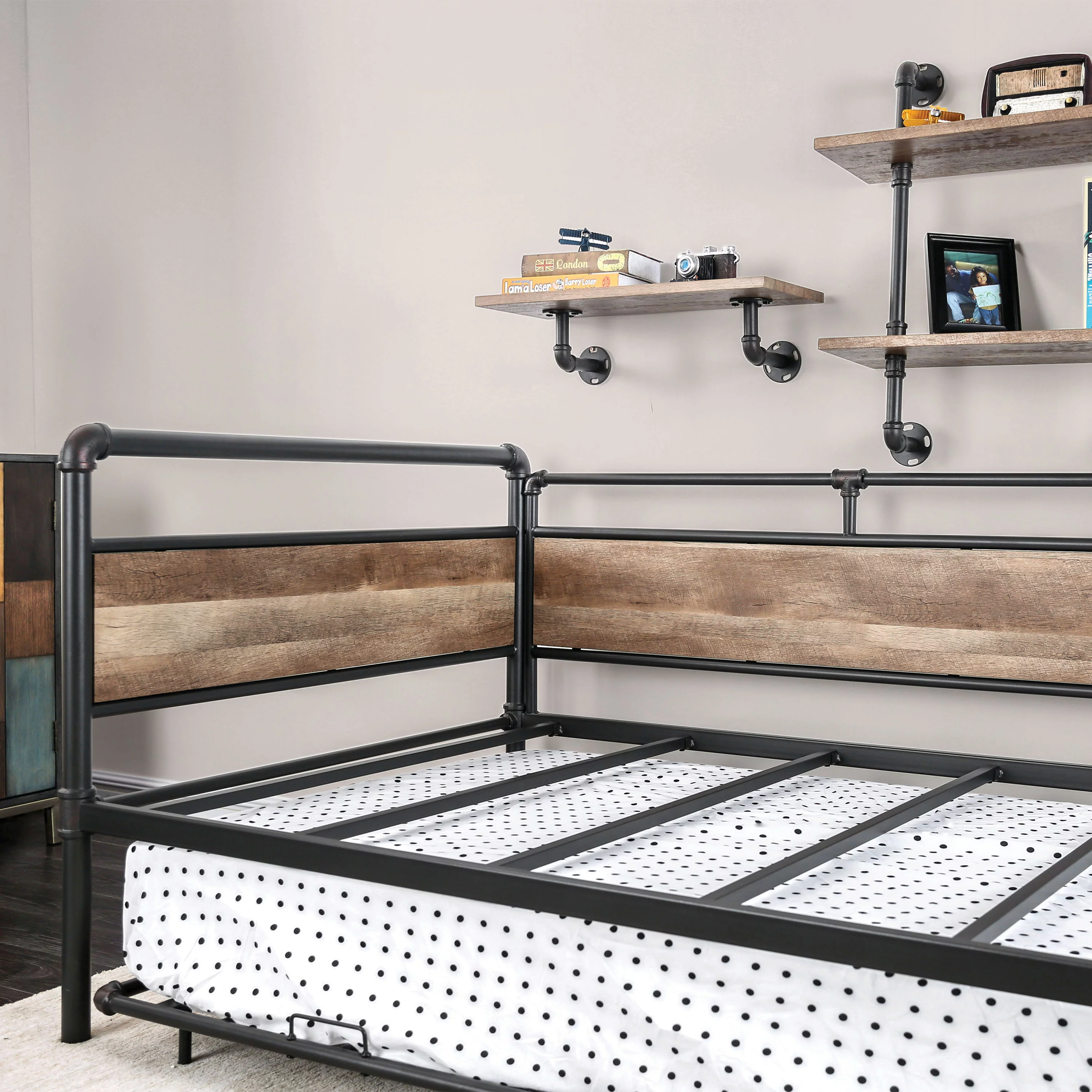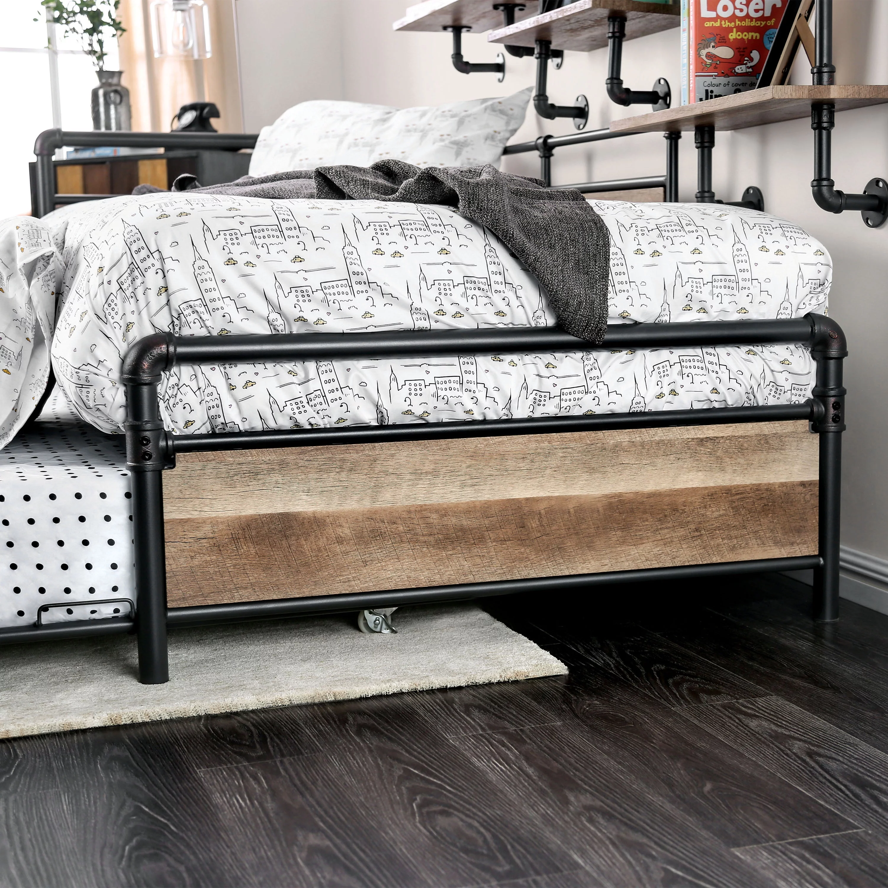 Furniture of America Rolke Industrial Metal Elevated Daybed, Twin, Black