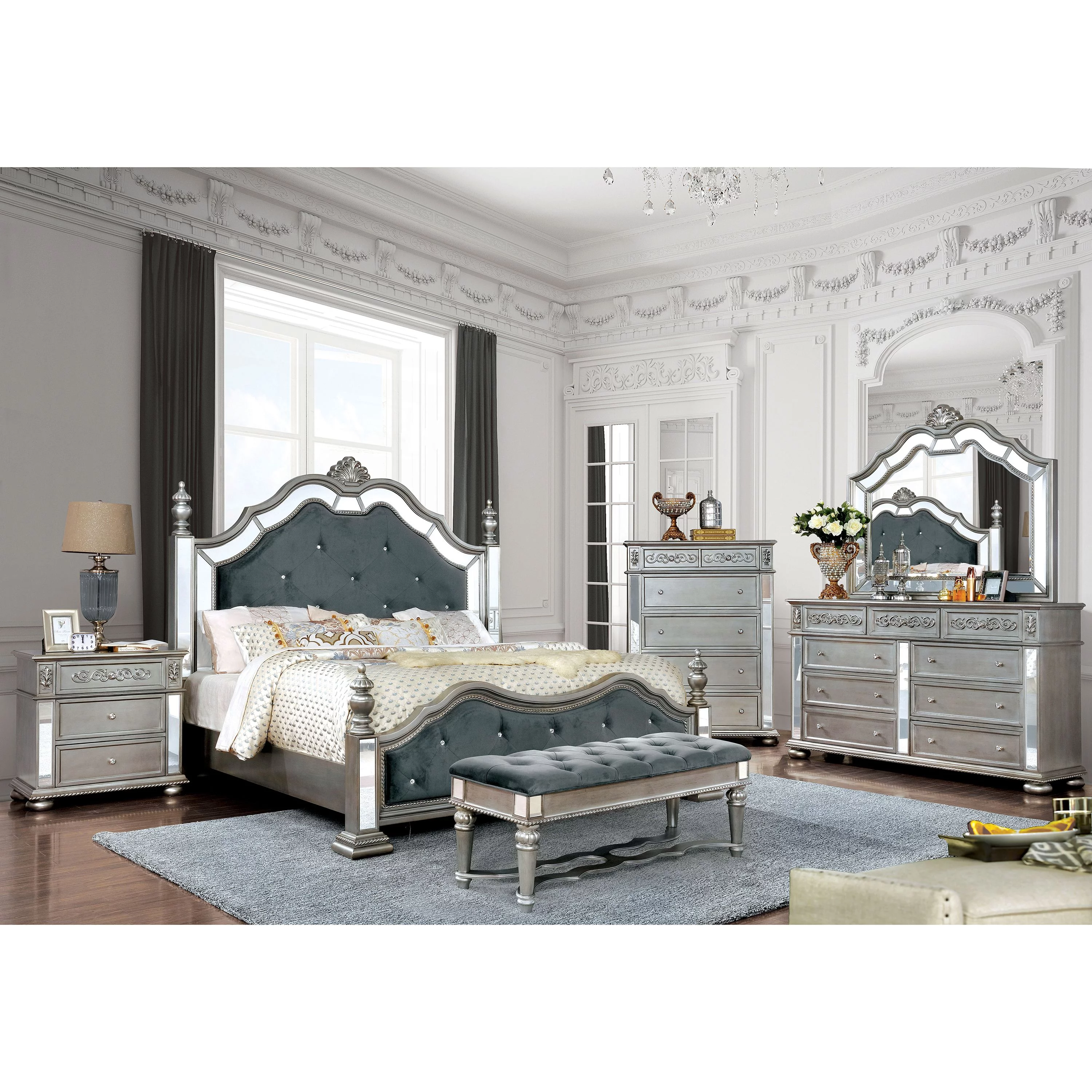 Furniture of America Viktoria Wood Panel Bed, California King, Silver
