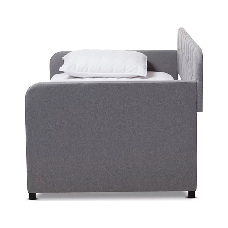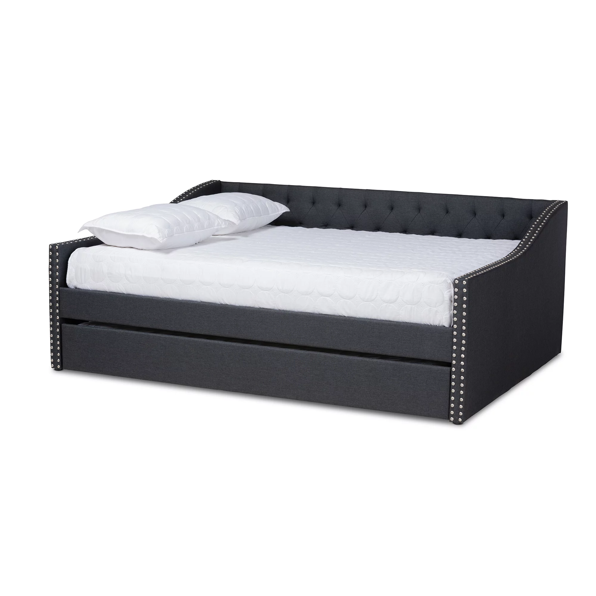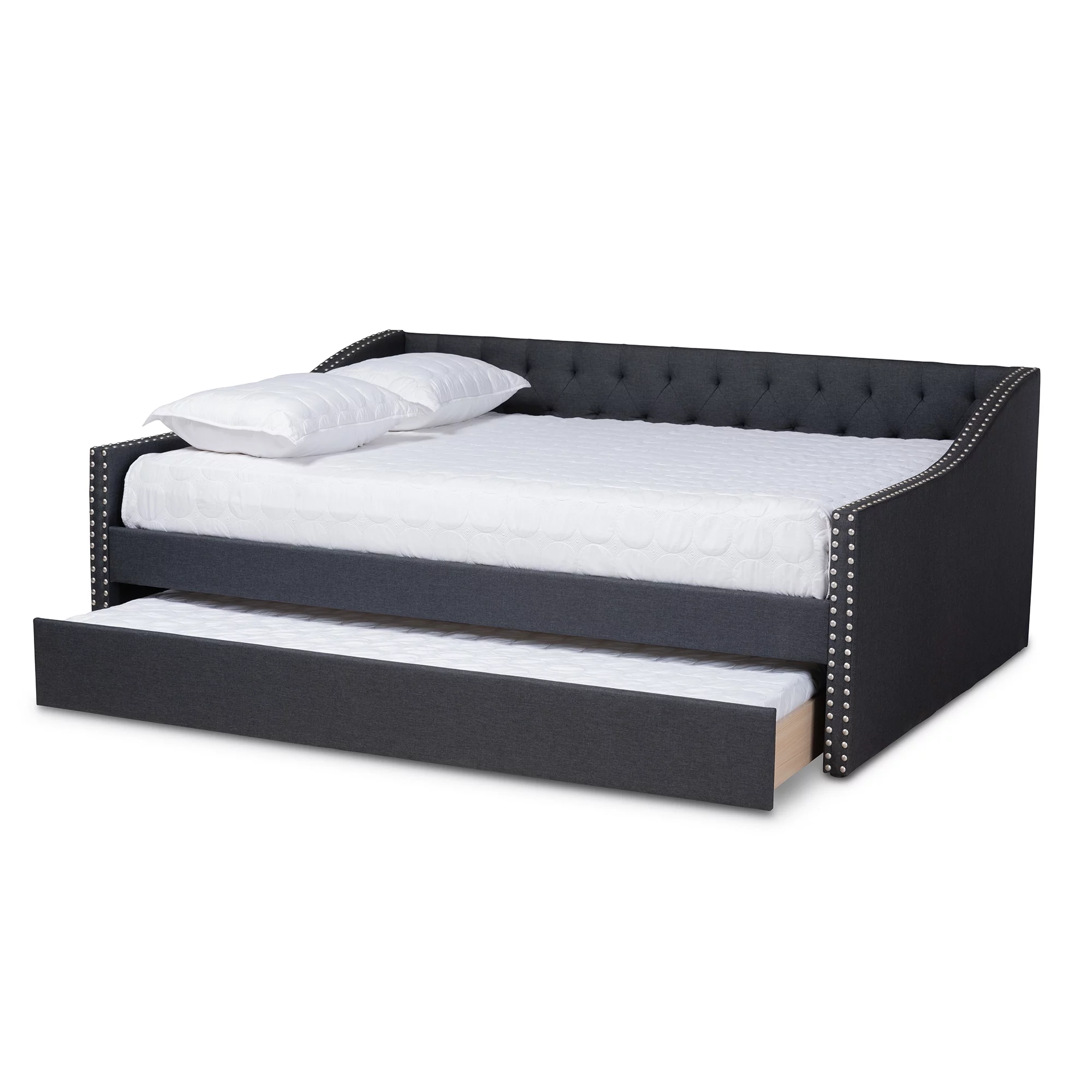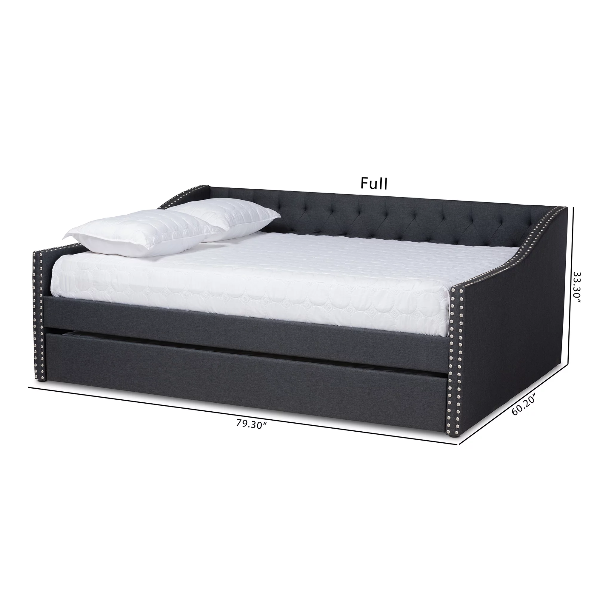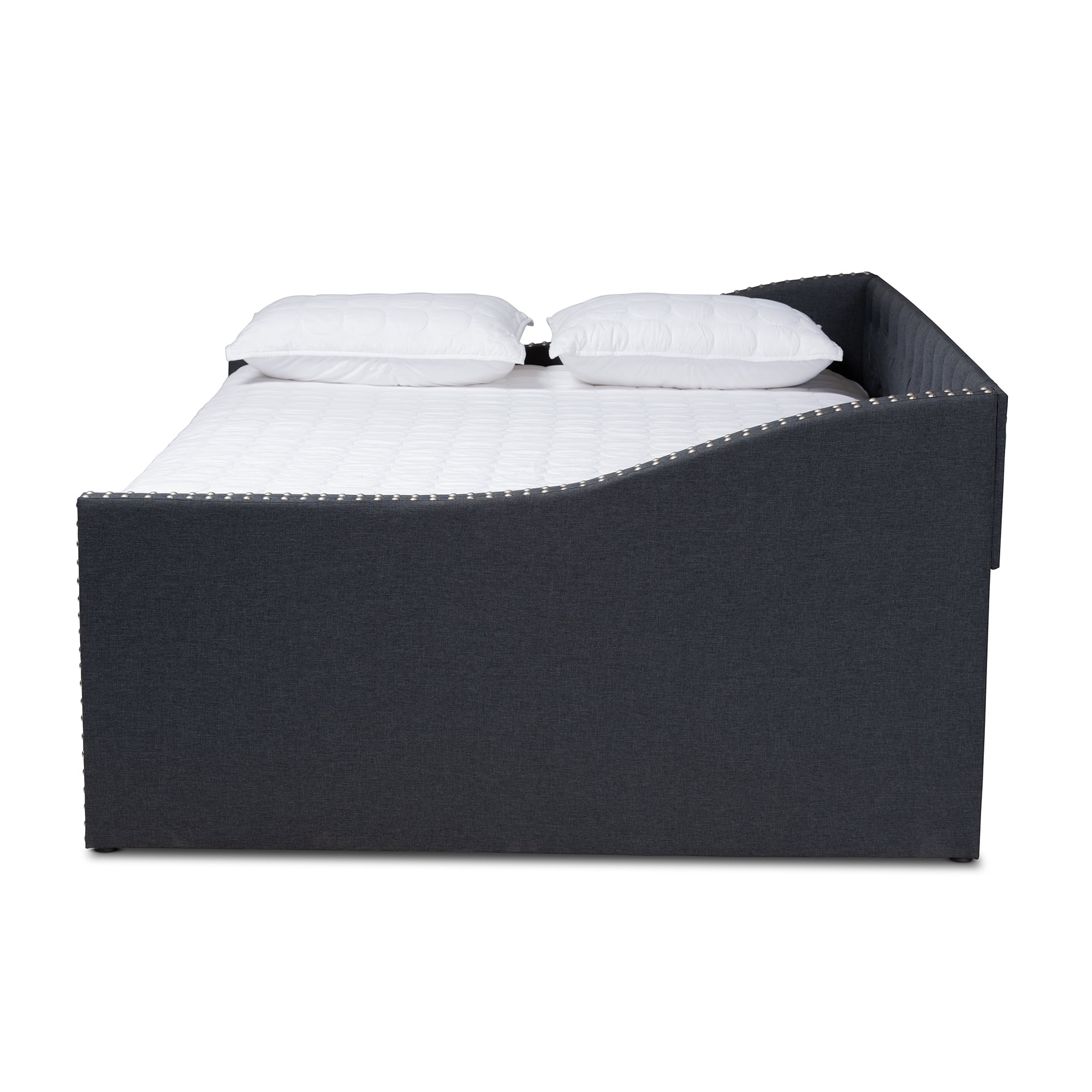 Baxton Studio Haylie Modern and Contemporary Dark Gray Fabric Upholstered Full Size Daybed with Roll-Out Trundle Bed
