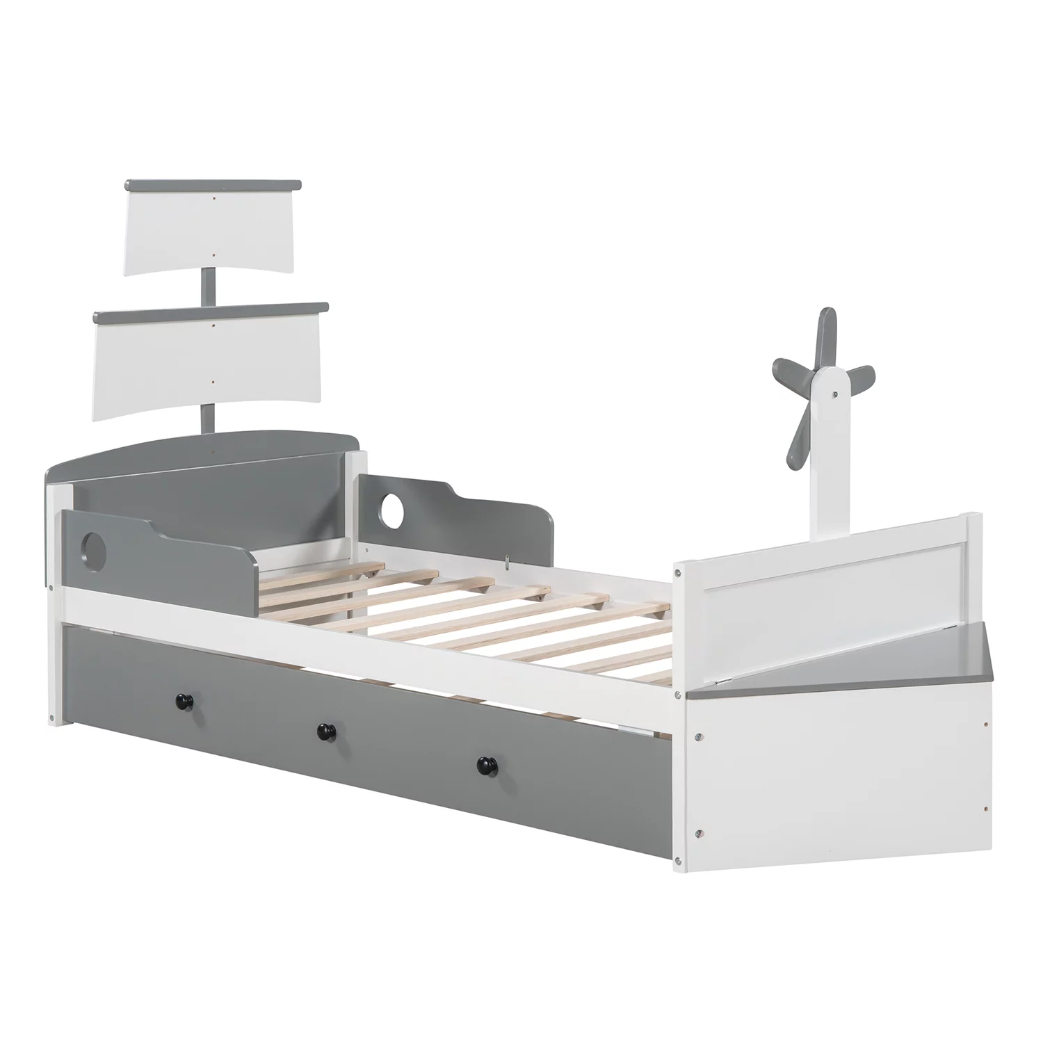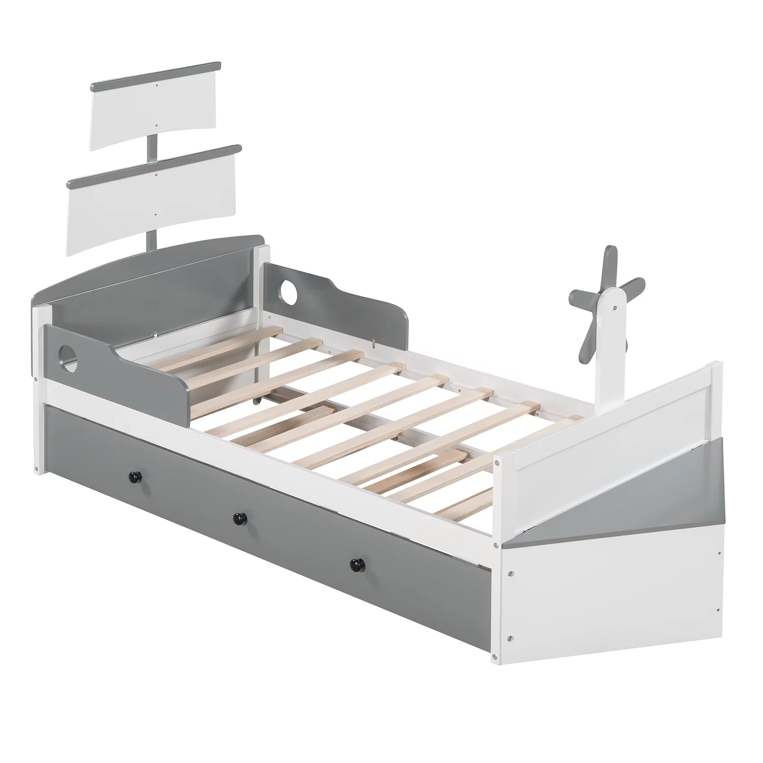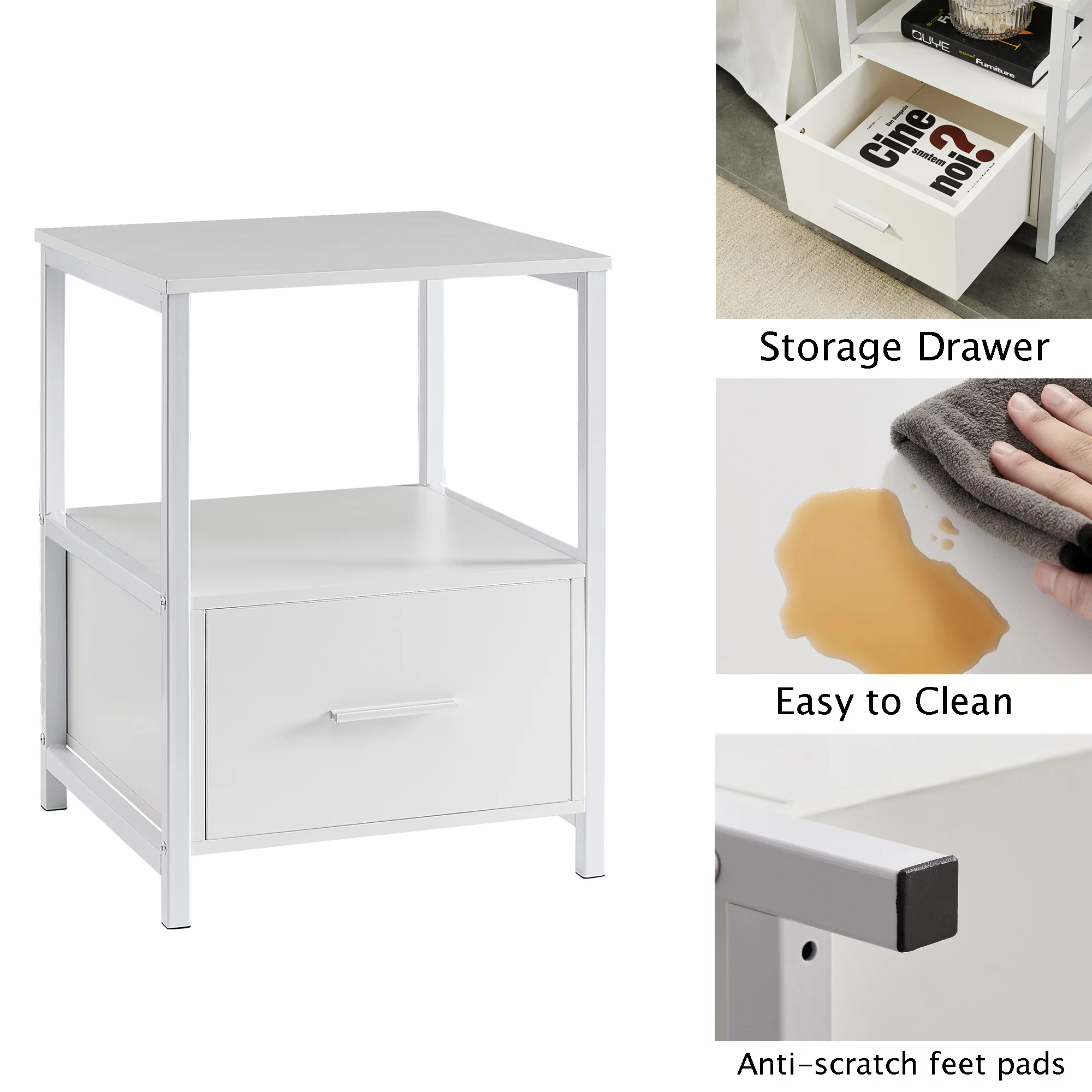 VECELO 3-Piece White Bedroom Sets Include Twin Bed Frame + 2 Nightstands