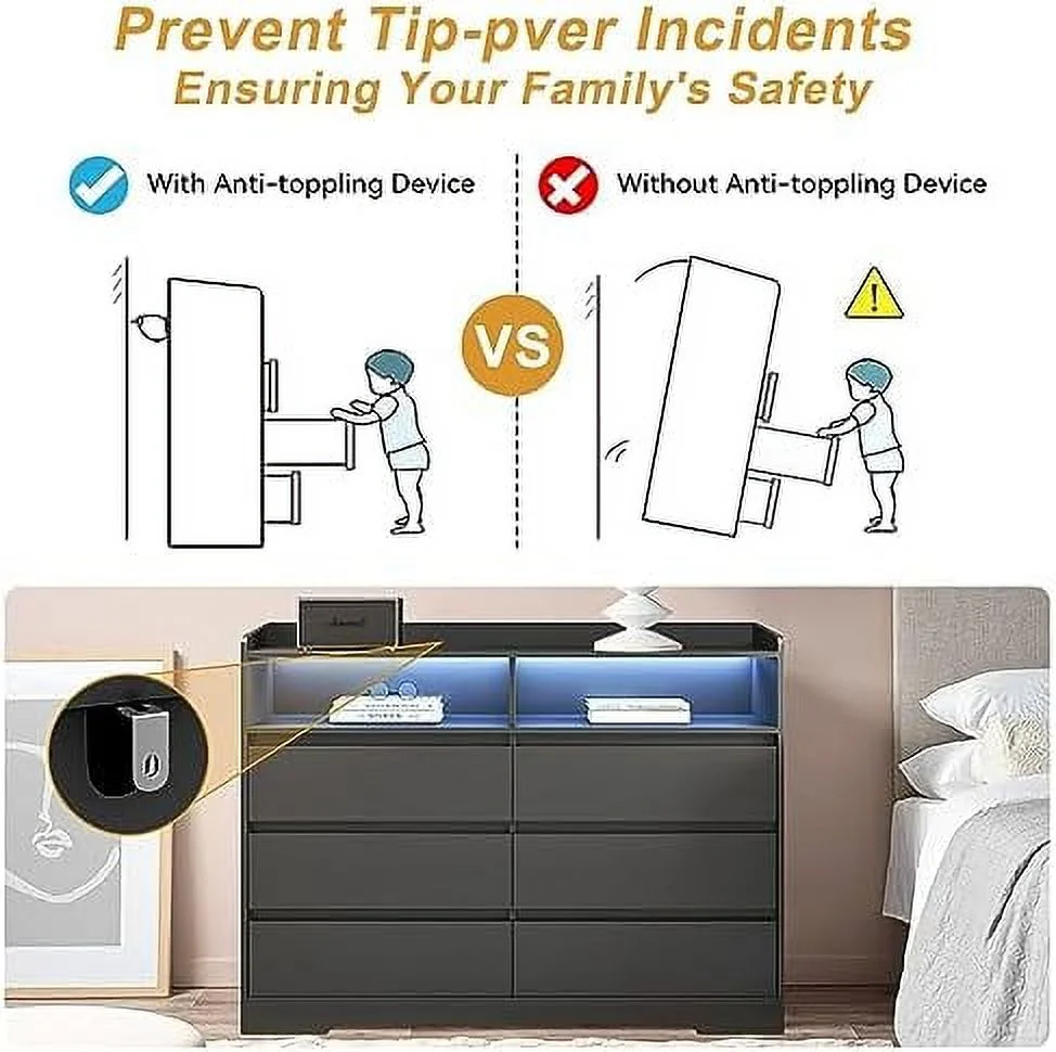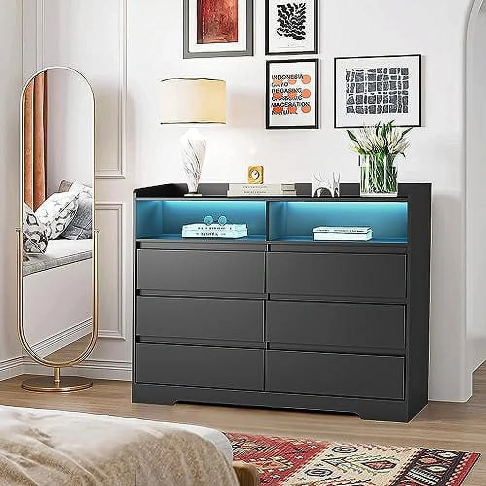D&N Furniture Drawers Dresser Chest of Drawers,Metal Frame and Wood Top,2bc,Gray