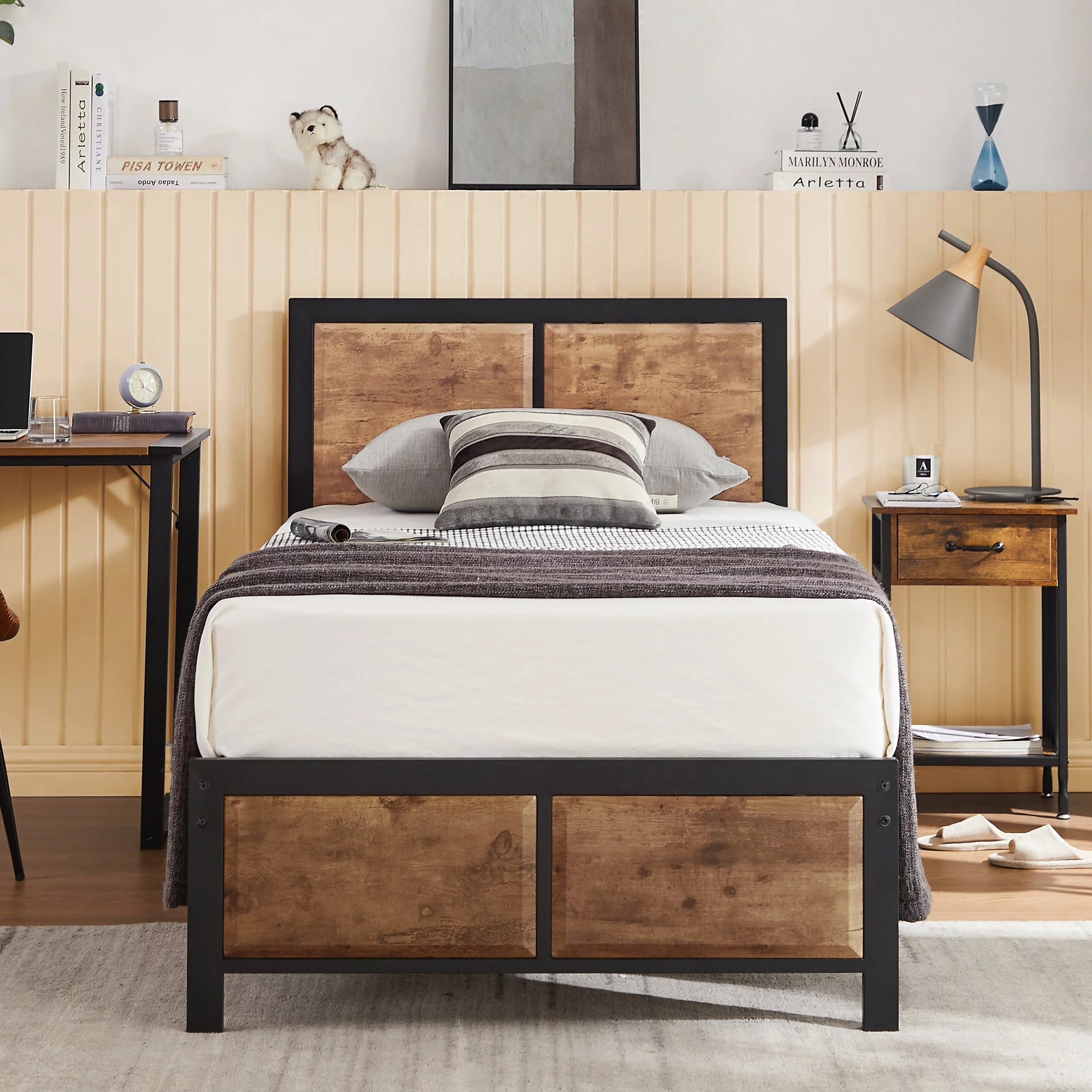 VECELO 4-Piece Bedroom Set Include Twin Size Bed Frame & Dresser & 2 Nightstand, Brown