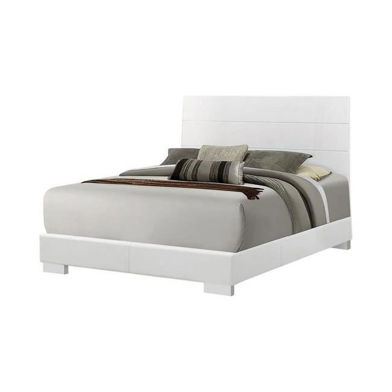 Contemporary Style Low Profile California King Size Bed with Block Feet, White