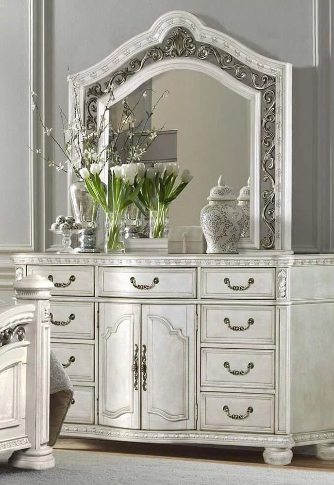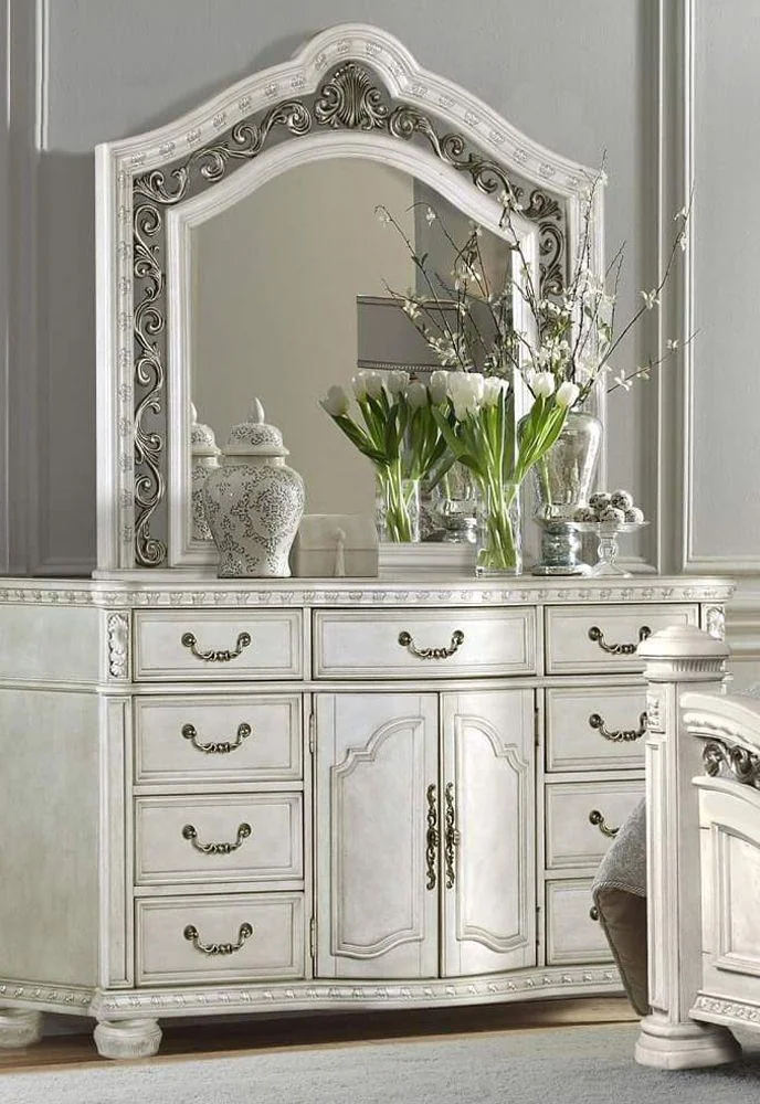 Antique White Wood 9 Drawer Dresser B162 McFerran Classic Traditional