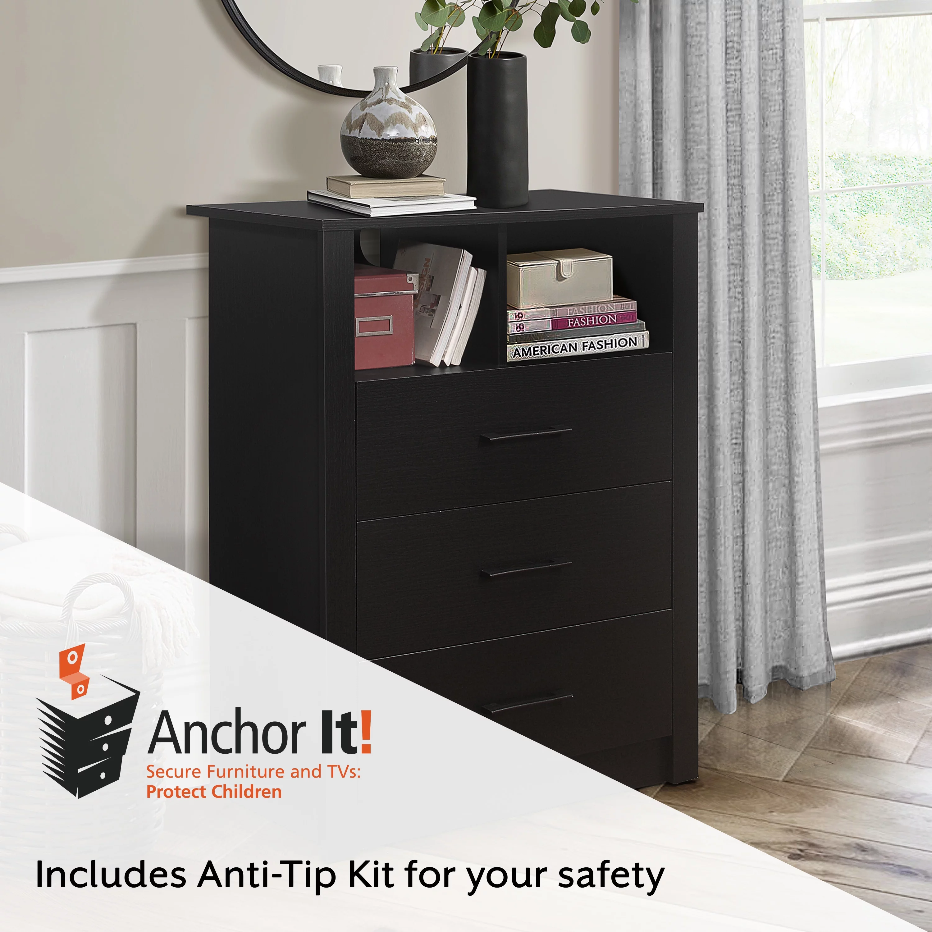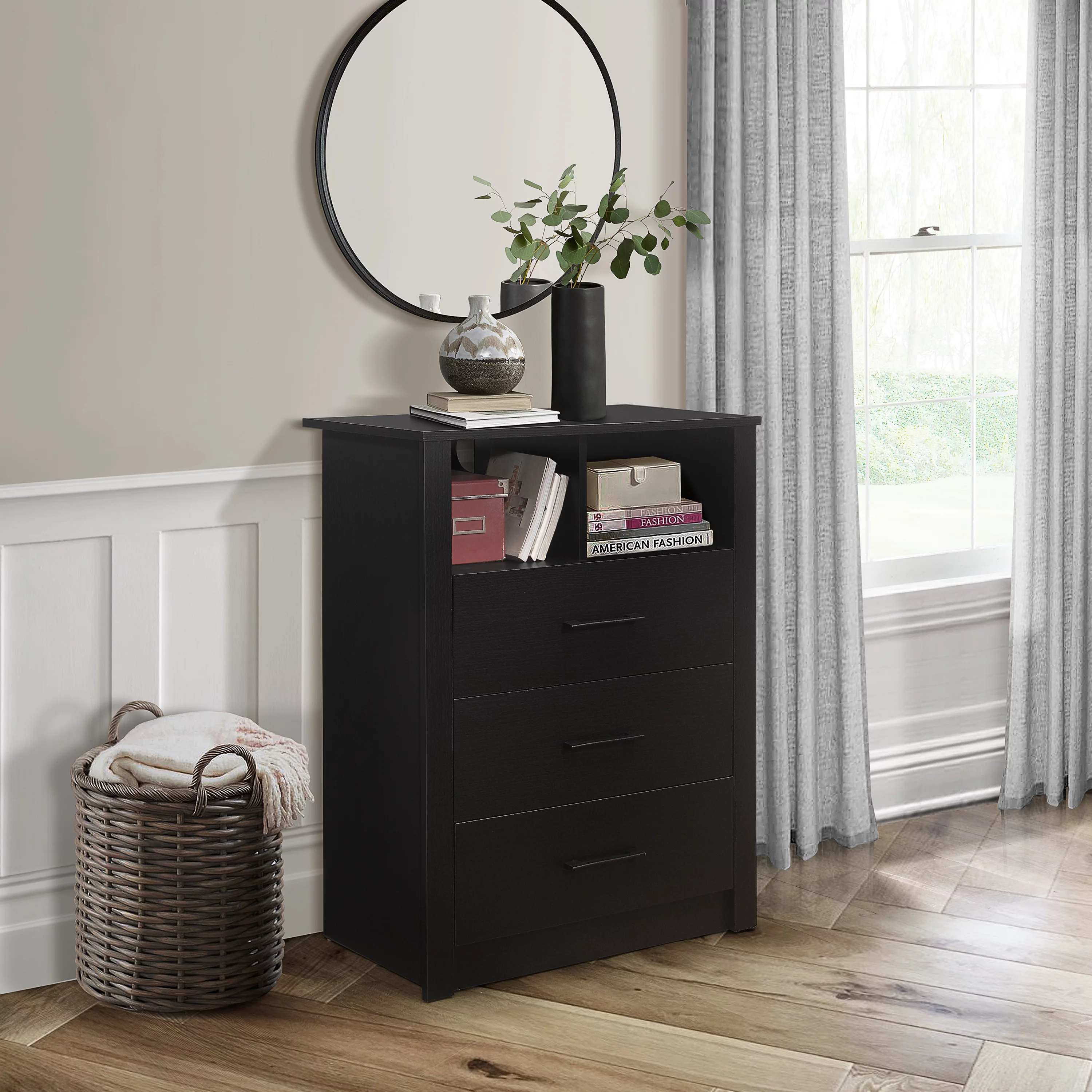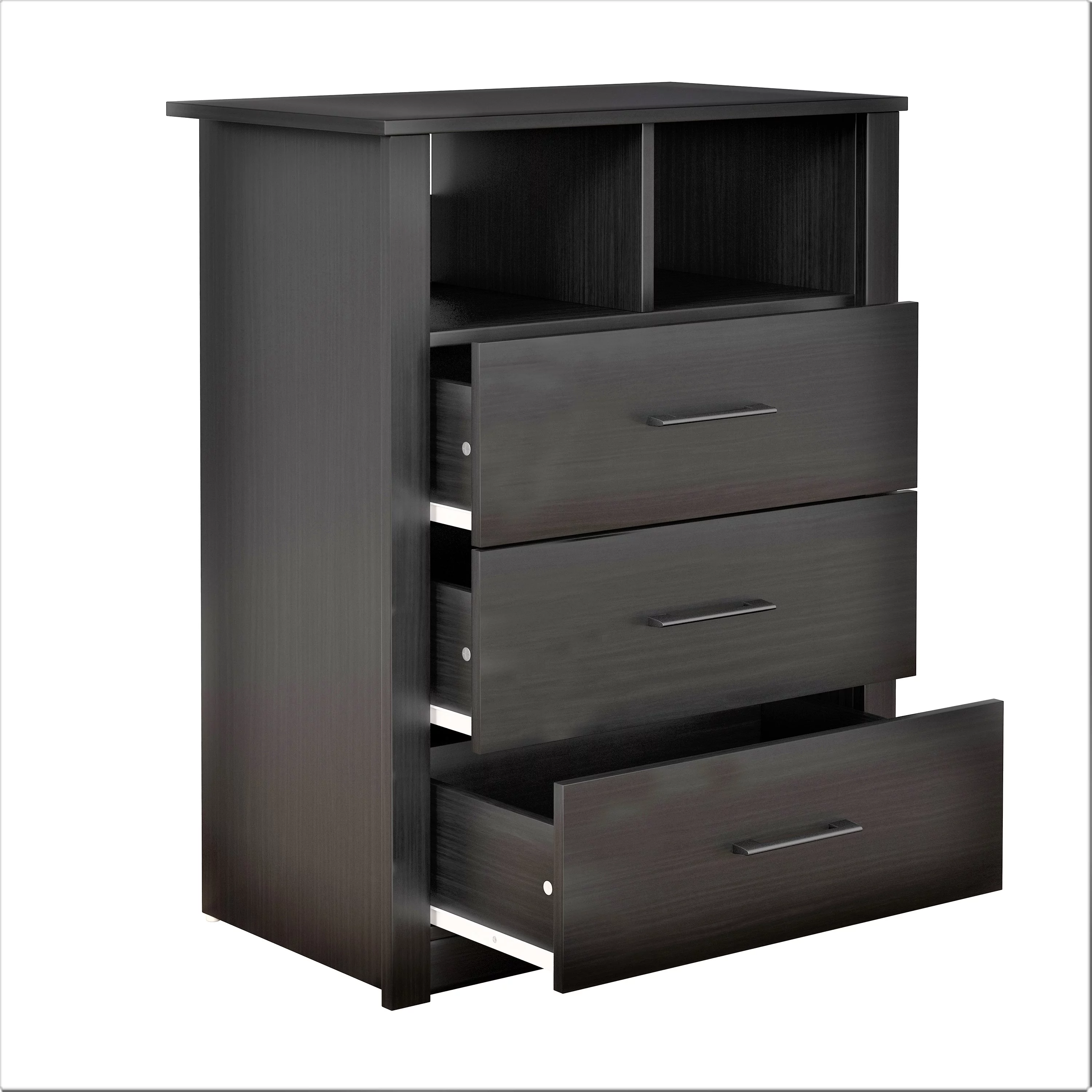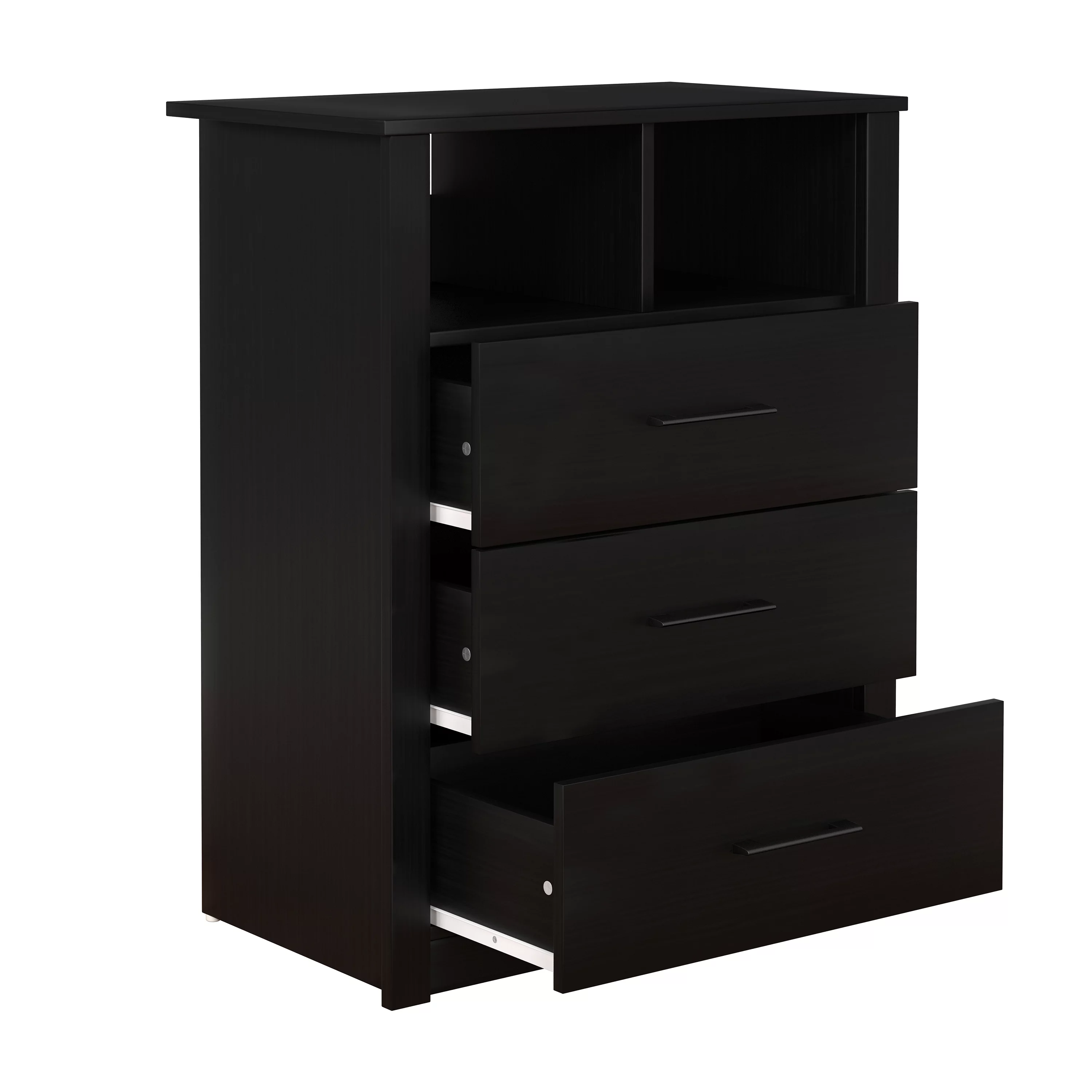 Coby 3-Drawer Dresser with Shelf, Black Oak, by Hillsdale Living Essentials