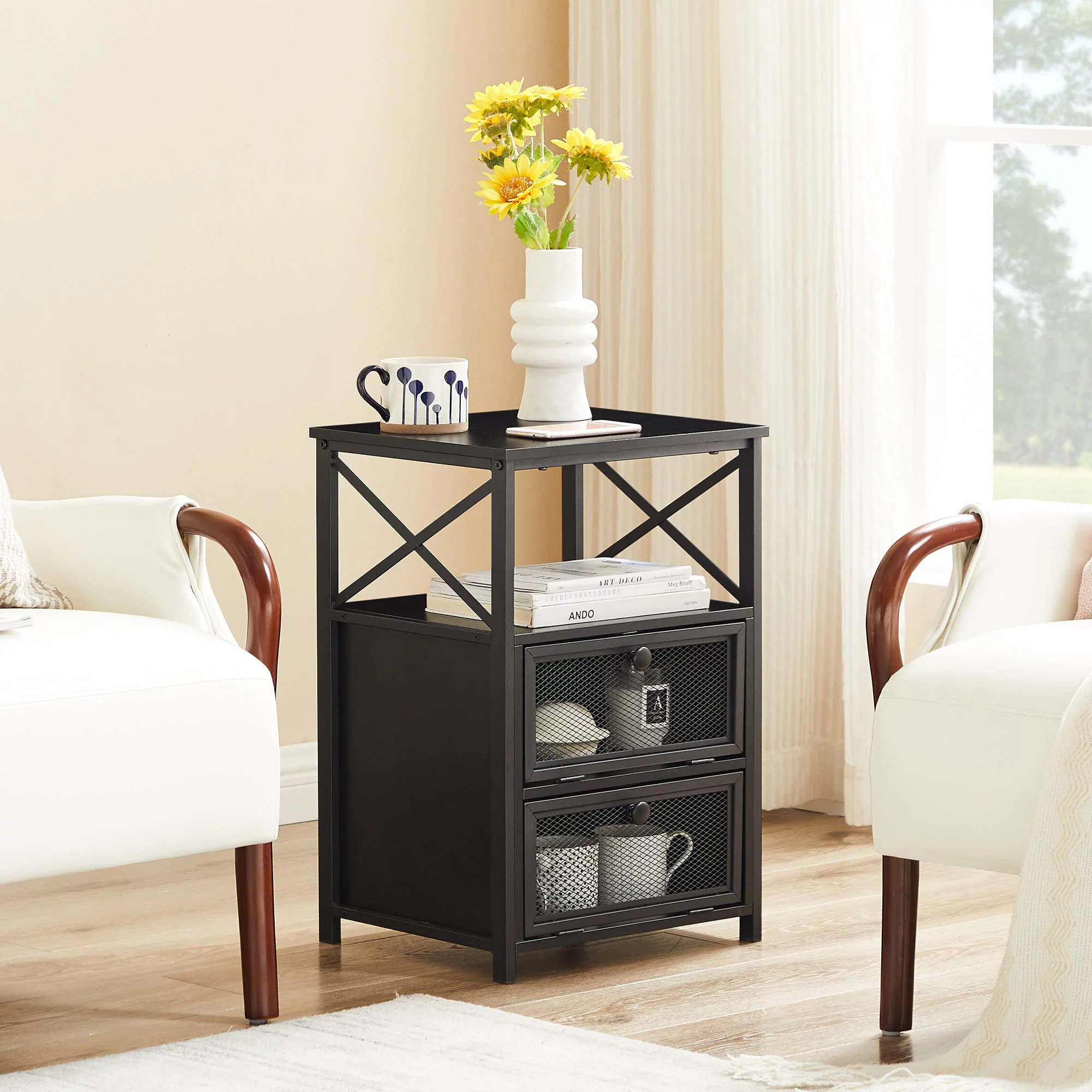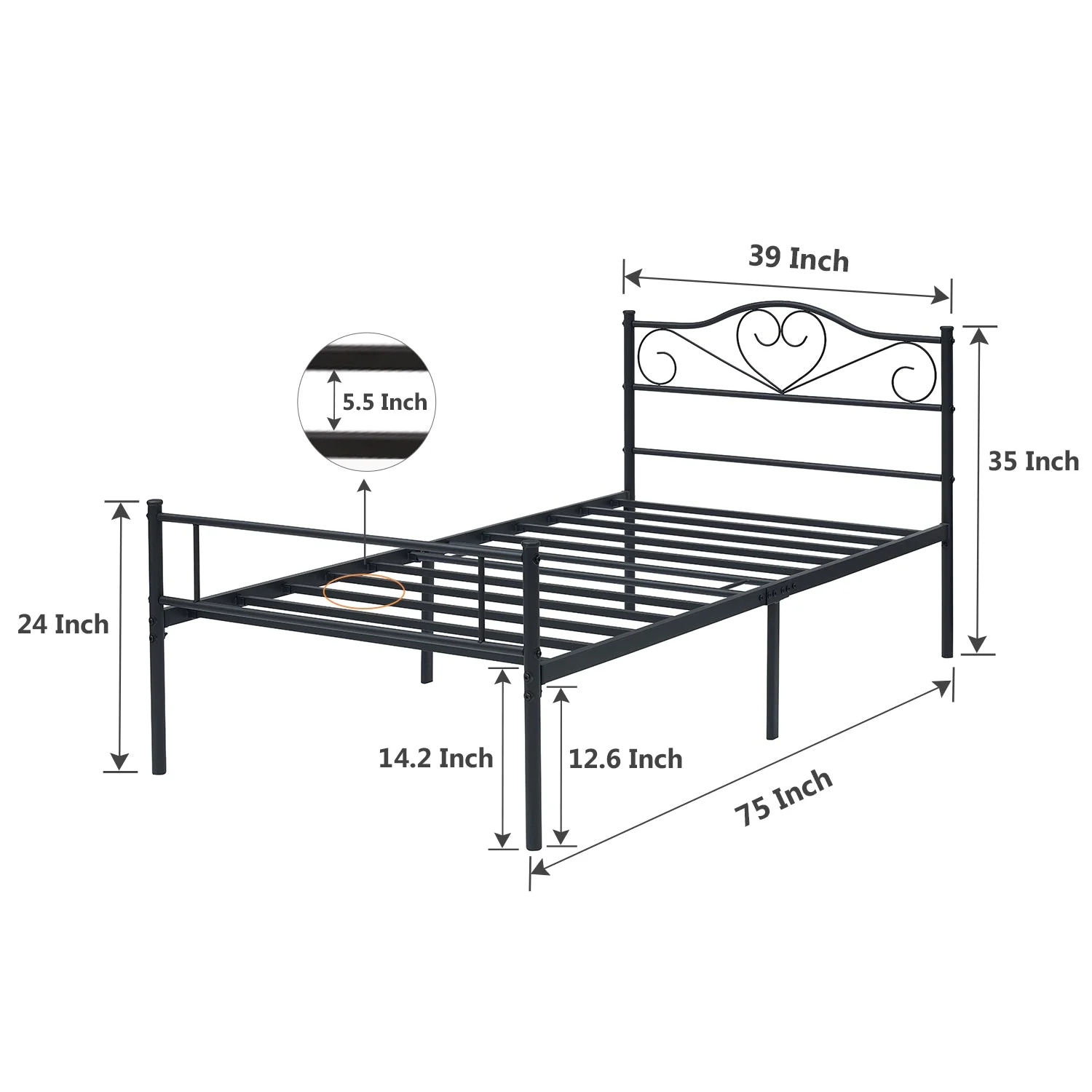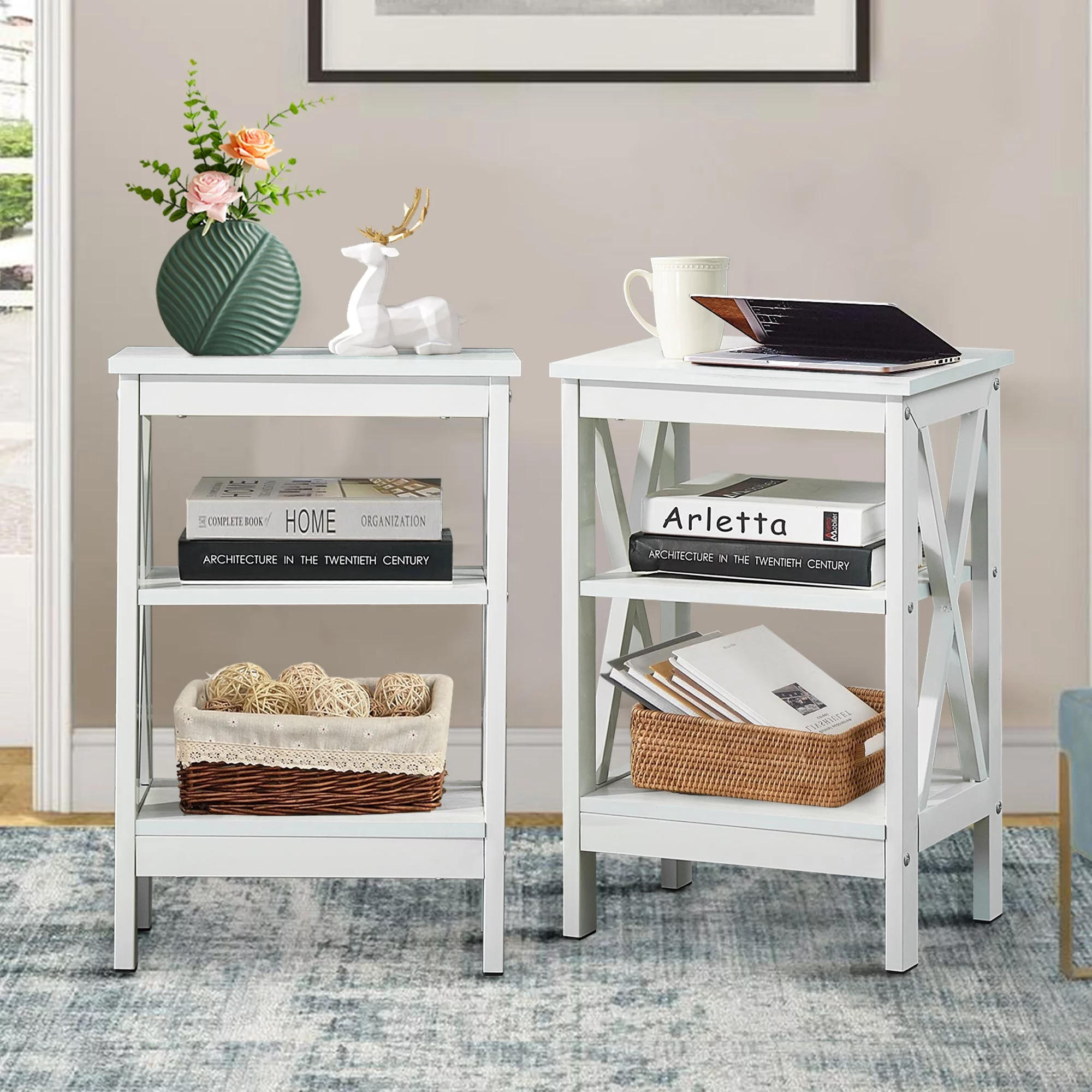 VECELO 3-Piece Bedroom Set Include Twin Metal Bed Frame and 2 White Nightstands (Set of 3)