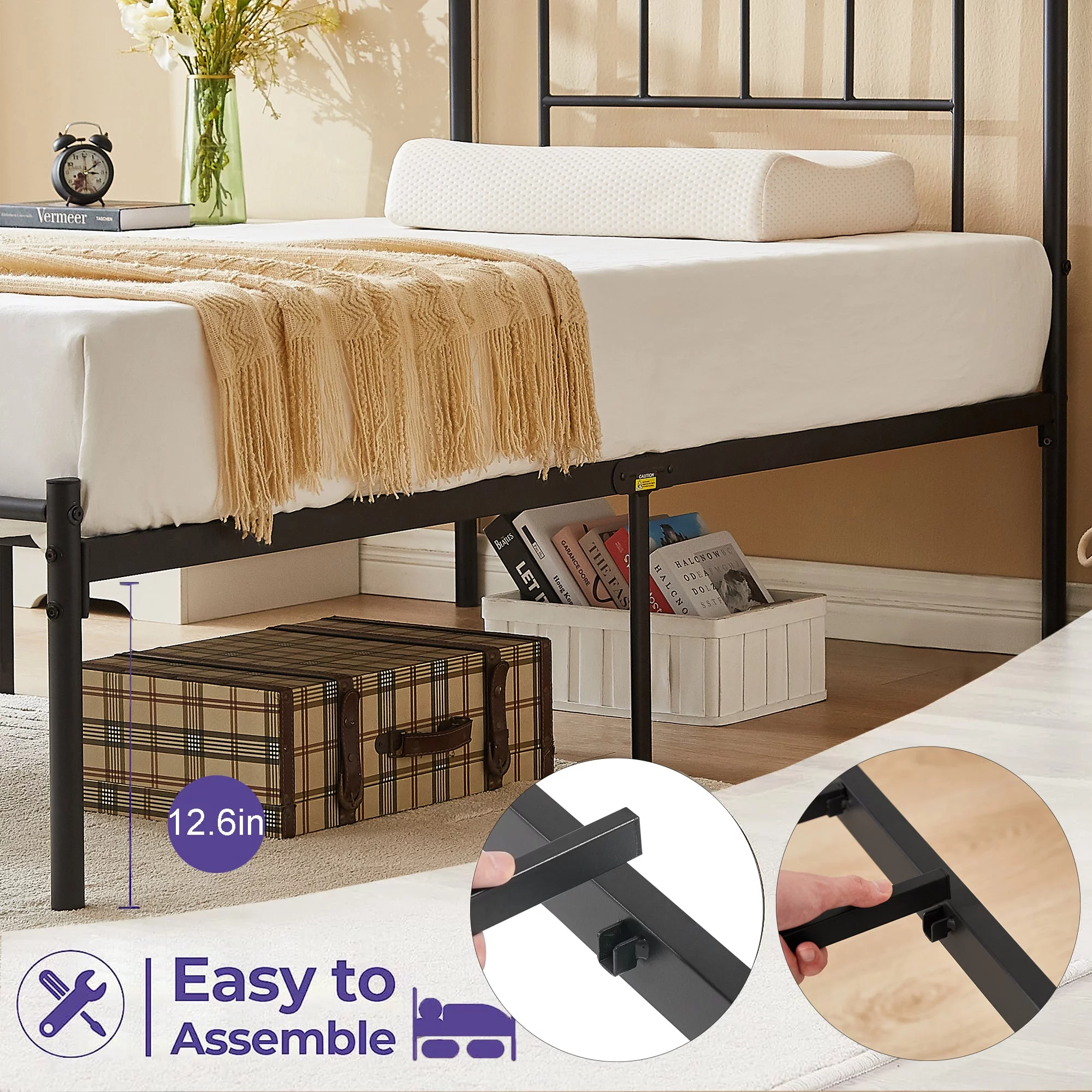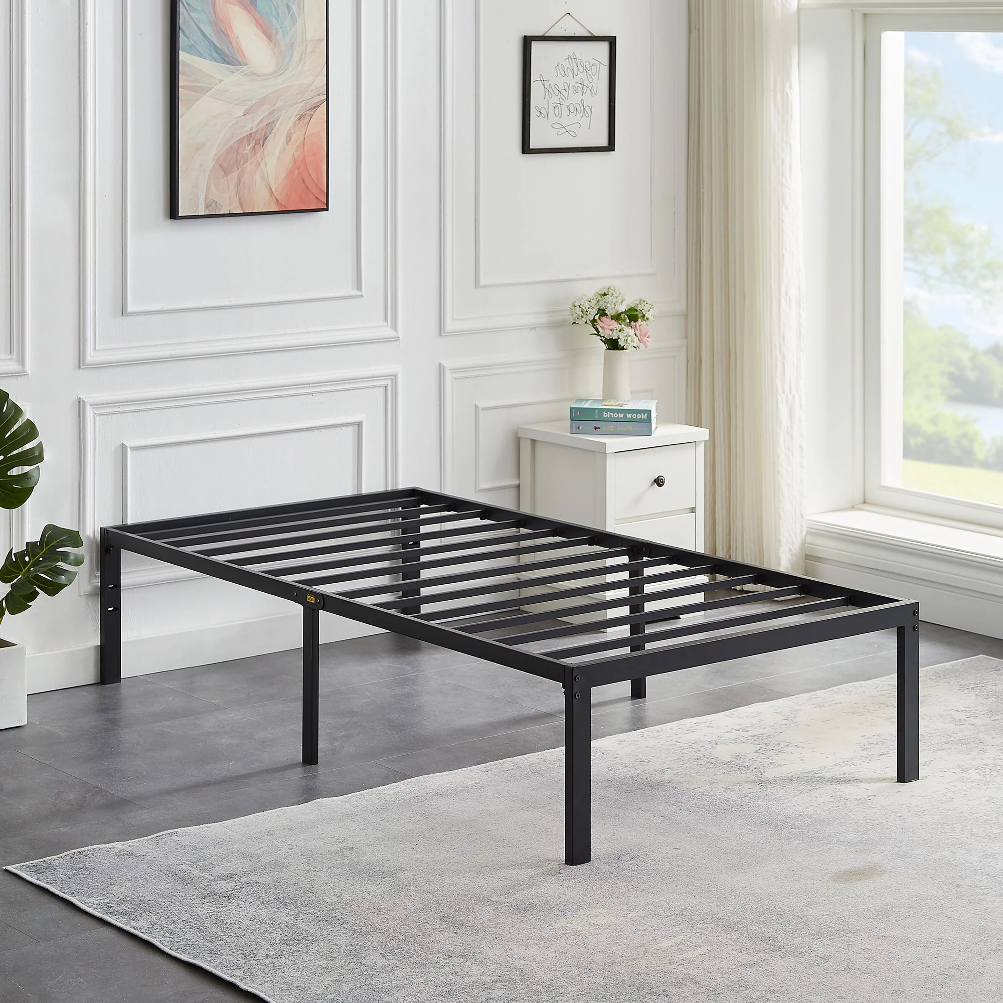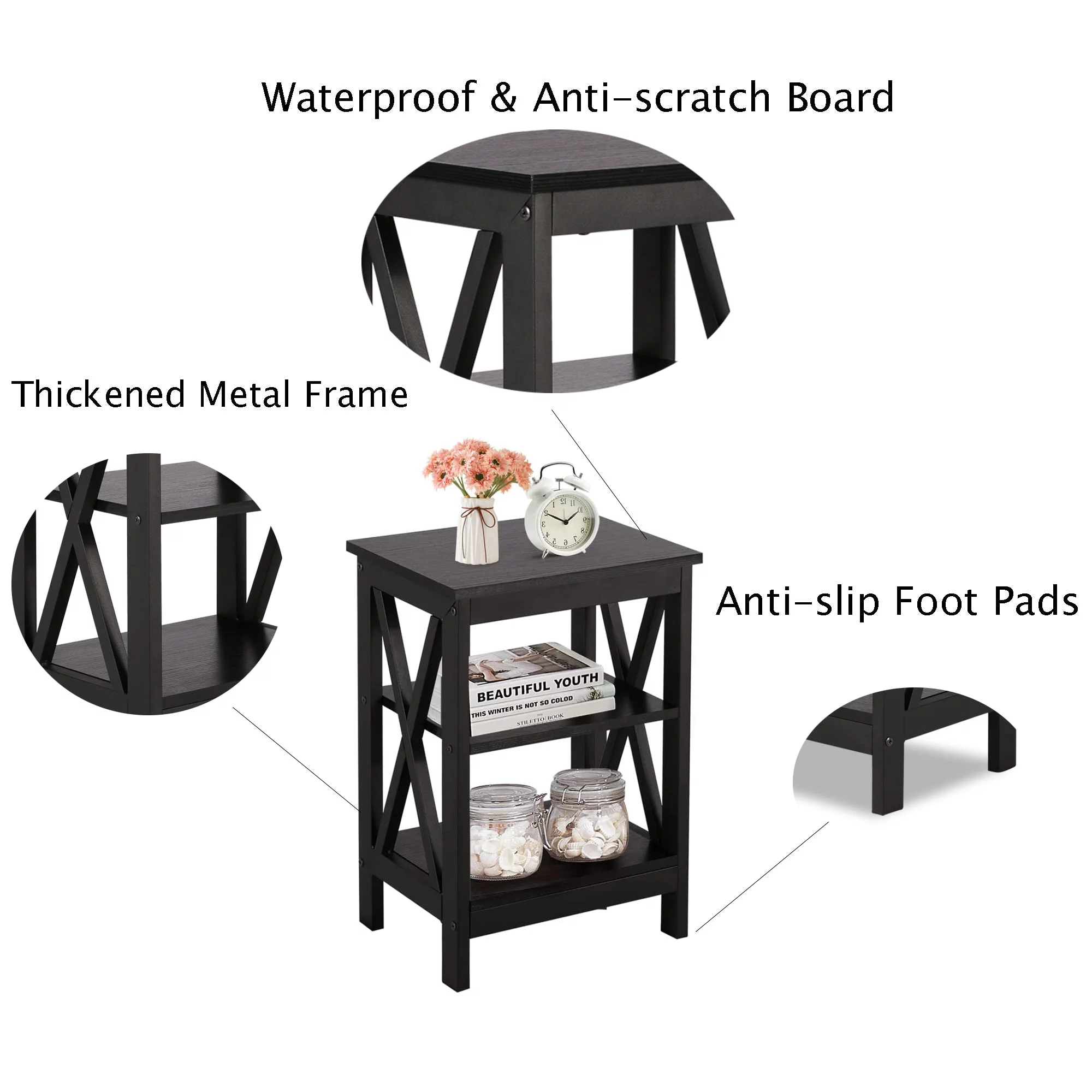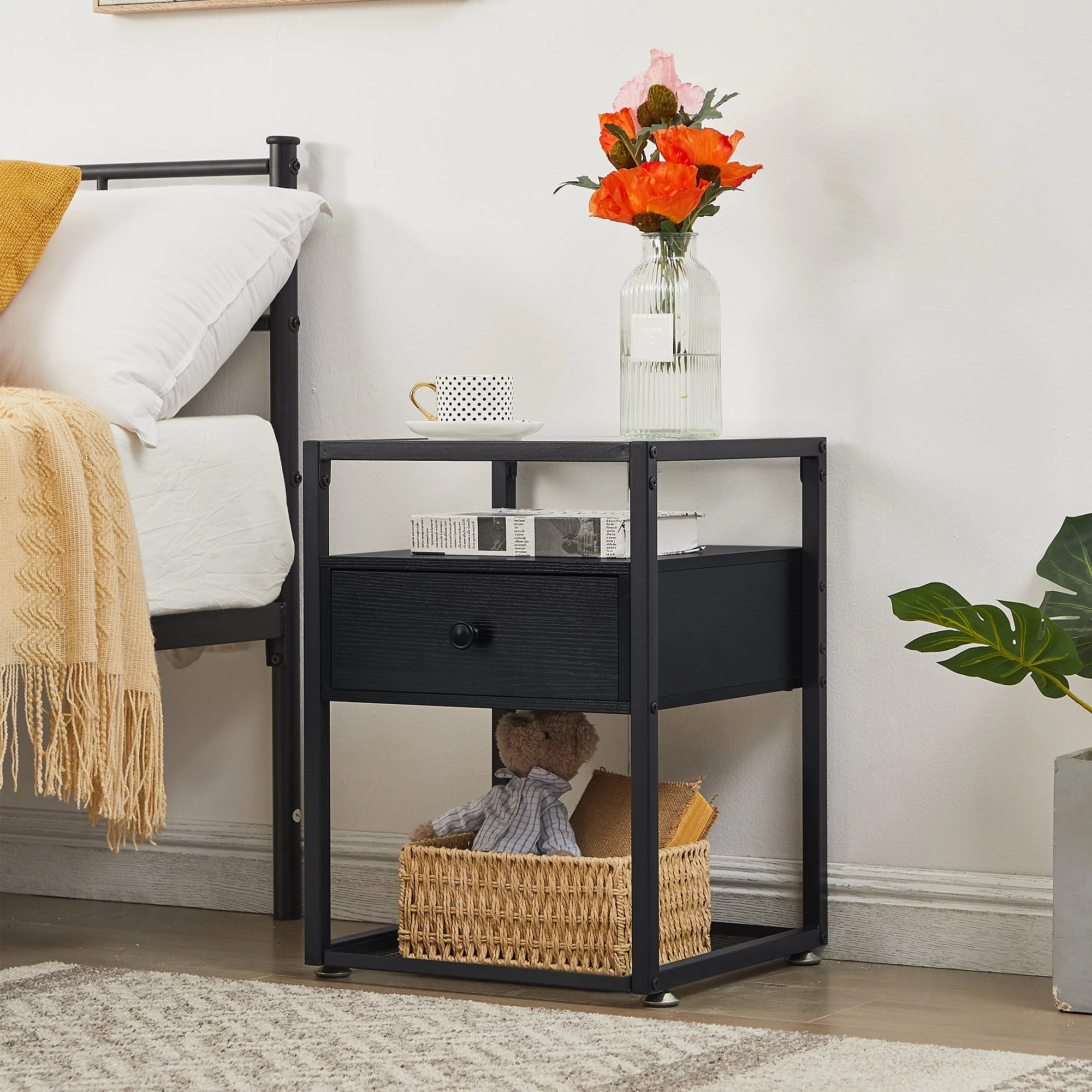 VECELO 3-Piece Twin Bedroom Sets Include Metal Platform Bed Frame and 2 Black Nightstands